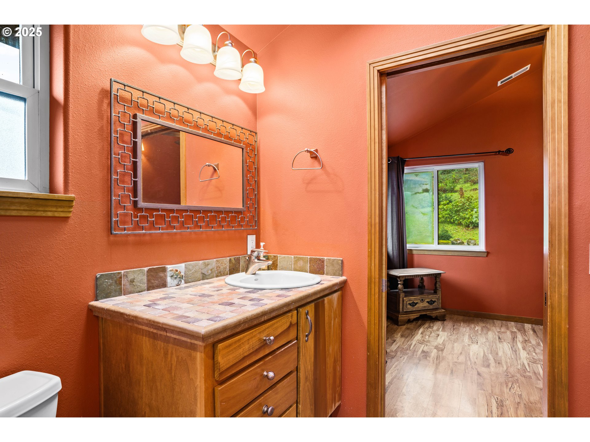 (503) 893-8874This custom built two story home is positioned above the valley with expansive views of the treetops and clear day views of the Three Sisters mountains. Vaulted ceilings and large windows flood the home with natural light and highlight the scenery from nearly every room.The kitchen is designed for both everyday living and entertaining, featuring granite countertops custom cabinets, a massive island ideal for cooking and gathering, and a natural gas fireplace nearby that adds warmth and comfort to the main living space. Upstairs, a unique sky bridge creates visual interest and connects the upper level, while a huge bonus room over the garage offers flexible living options.The office was thoughtfully designed to easily convert into a third bedroom if desired. Additional features include walk-in closets in both bedrooms, natural gas service and a whole home generator with an automatic transfer switch, providing peace of mind year round. A well planned home that blends custom design, flexibility, and unforgettable views.