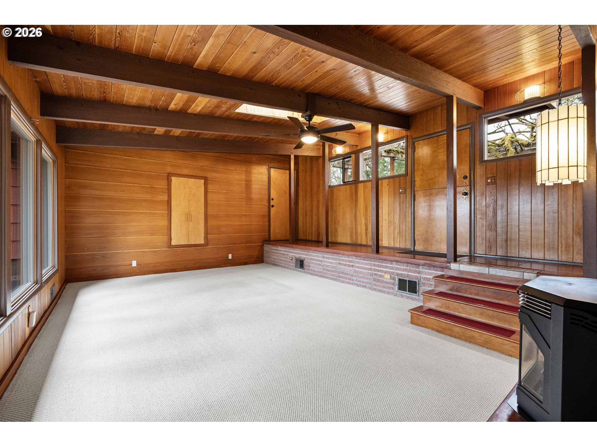 (503) 893-8874Beautiful architecture! This 2465sf mid-century modern home has a well thought out floorplan with three bedrooms, two bathrooms and a large bonus room with double sliders to patio, built ins and a wet bar. Mature landscape created and maintained with much care and with an eye for detail with a natural park like feel. Attached garage. New carpet and interior paint, pellet stove, all appliance stay and an abundance of storage throughout. Two Dutch doors and many original details. New roof in 2025. Detached 224 square foot studio ready for your imagination: use for work, guests, rest or play. A former lumber dealer's own custom built home in 1952, old growth tongue and groove walls and open beam ceilings. Truly a special home in a great location, please preview to fully appreciate all that 75 W 35th Place has to offer.