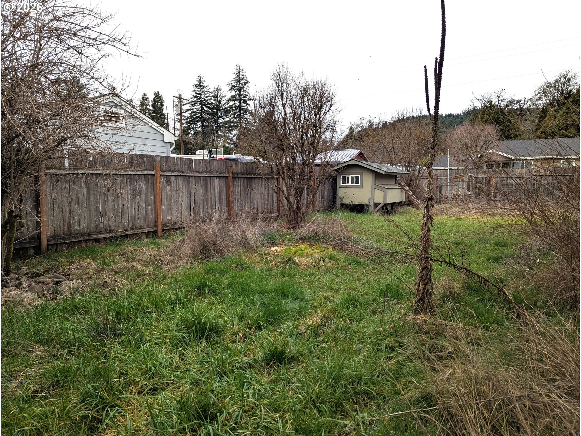 Fantastic location near Salmon Creek Park and Uptown Oakridge. This single level home has a remodeled kitchen with tile floor, solid granite counters, stainless appliances, built-in microwave, garden window and pantry. Dining room with vinyl slider to paved patio and backyard. Updated main bath has custom tile and dresser-style double vanity. Original fir floors and craftsman touches throughout. New roof (DaBella), newer electrical panel, vinyl windows, and a pellet stove for warmth and efficiency. Separate laundry/mud room has second bath (toilet and shower). Covered breezeway (22' x 30') between house and oversized garage has a poured concrete floor with a working hot tub and allows for outdoor living all year round. Generous, level, fenced, corner lot includes a workshop shed, chicken coop, bunny hutch, dog house, wisteria-covered arbor and swing, and raised beds with established berry bushes. Neighborhood access to Salmon Creek levee trail and community garden. Discover the amazing recreational opportunities that the greater Oakridge area has to offer right outside your own front door -- hiking, biking, skiing, fishing, boating, disc golf, ATVing -- it's all here! A great value at this price!