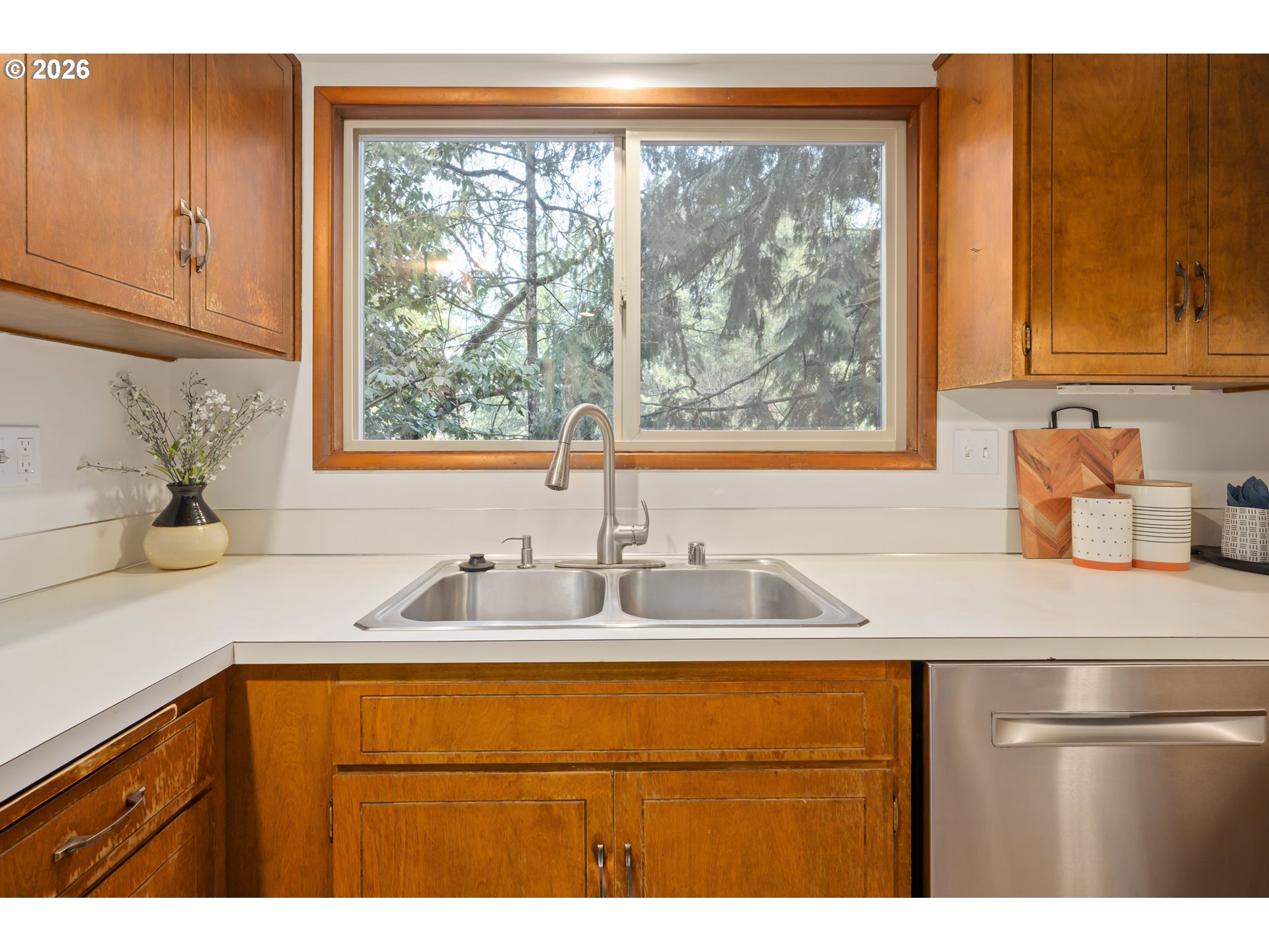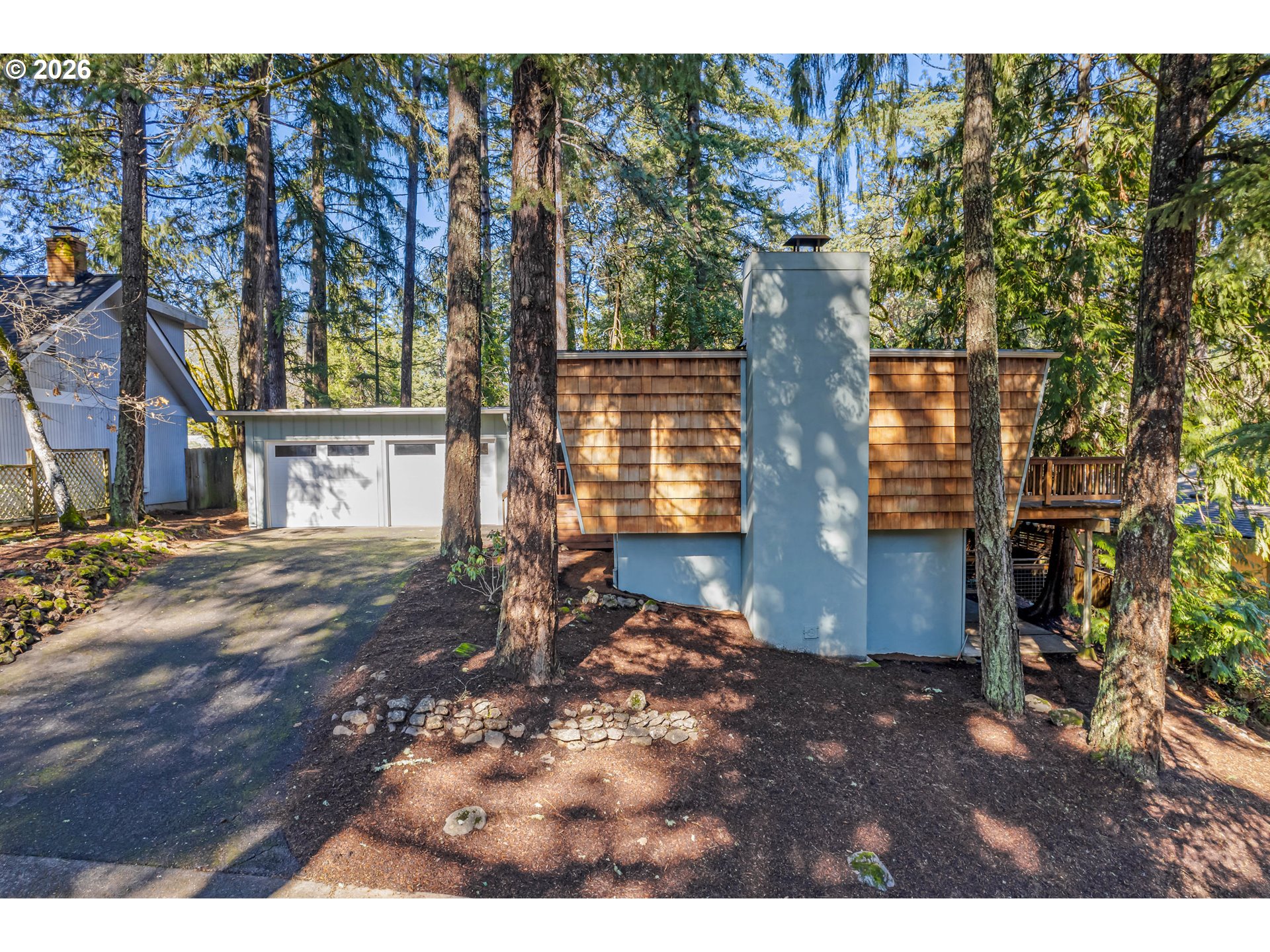 (503) 893-8874Located on a wooded homesite in the SE Hills, this home offers spacious living areas and privacy surrounded by trees. The main level includes a family room with wood stove off the kitchen, a semi-formal dining area, and a living room with fireplace. New carpet, fresh interior paint, vinyl windows, and newer wood laminate flooring provide a refreshed feel.Decks off both the family and living rooms create private outdoor spaces for relaxing or entertaining. All three bedrooms are on the lower level, along with a laundry room with exterior access. The detached two-car garage features flex space with a utility sink, previously used as a darkroom.Close to the Amazon trail system and located within the South Eugene High School district.