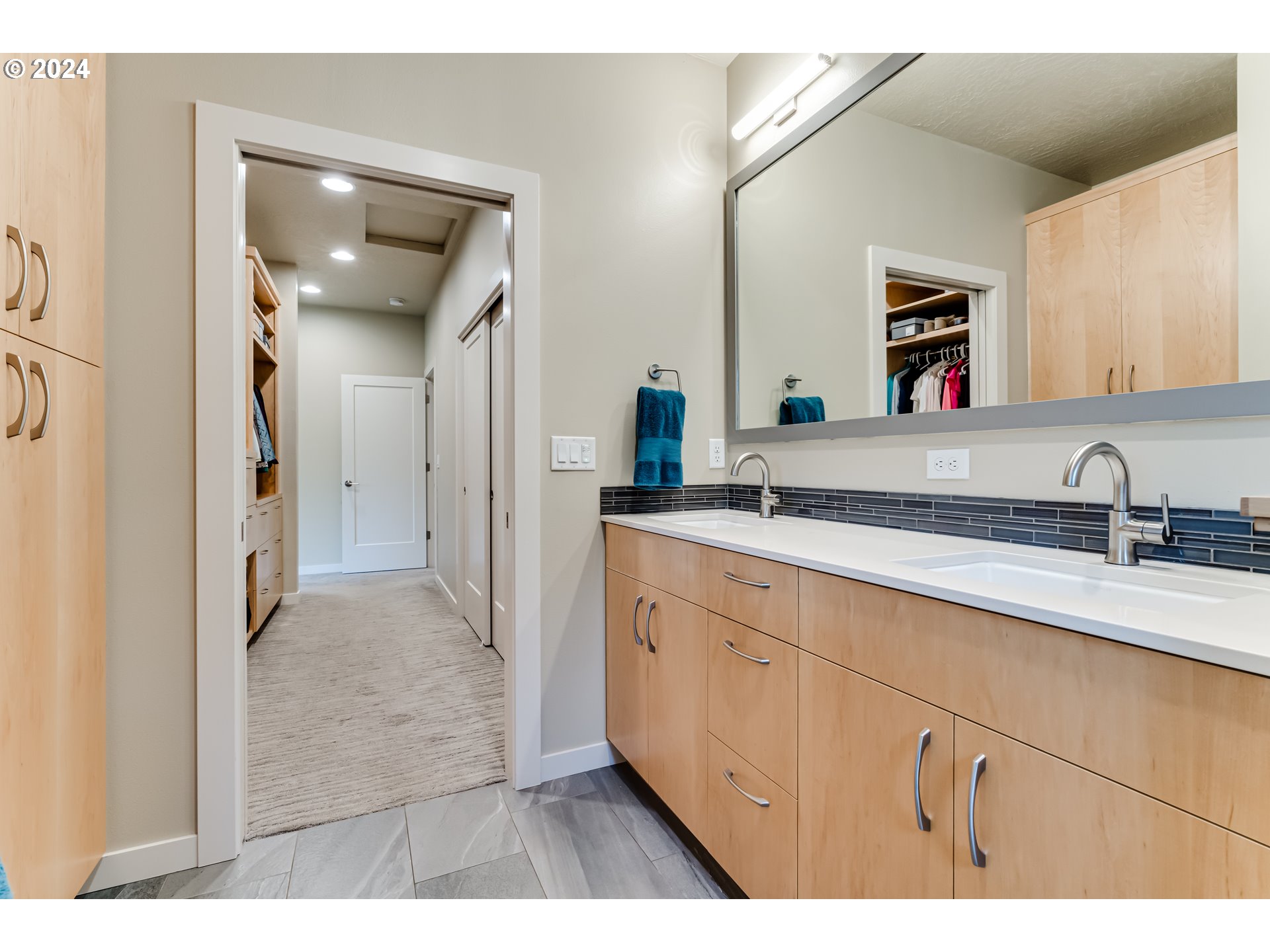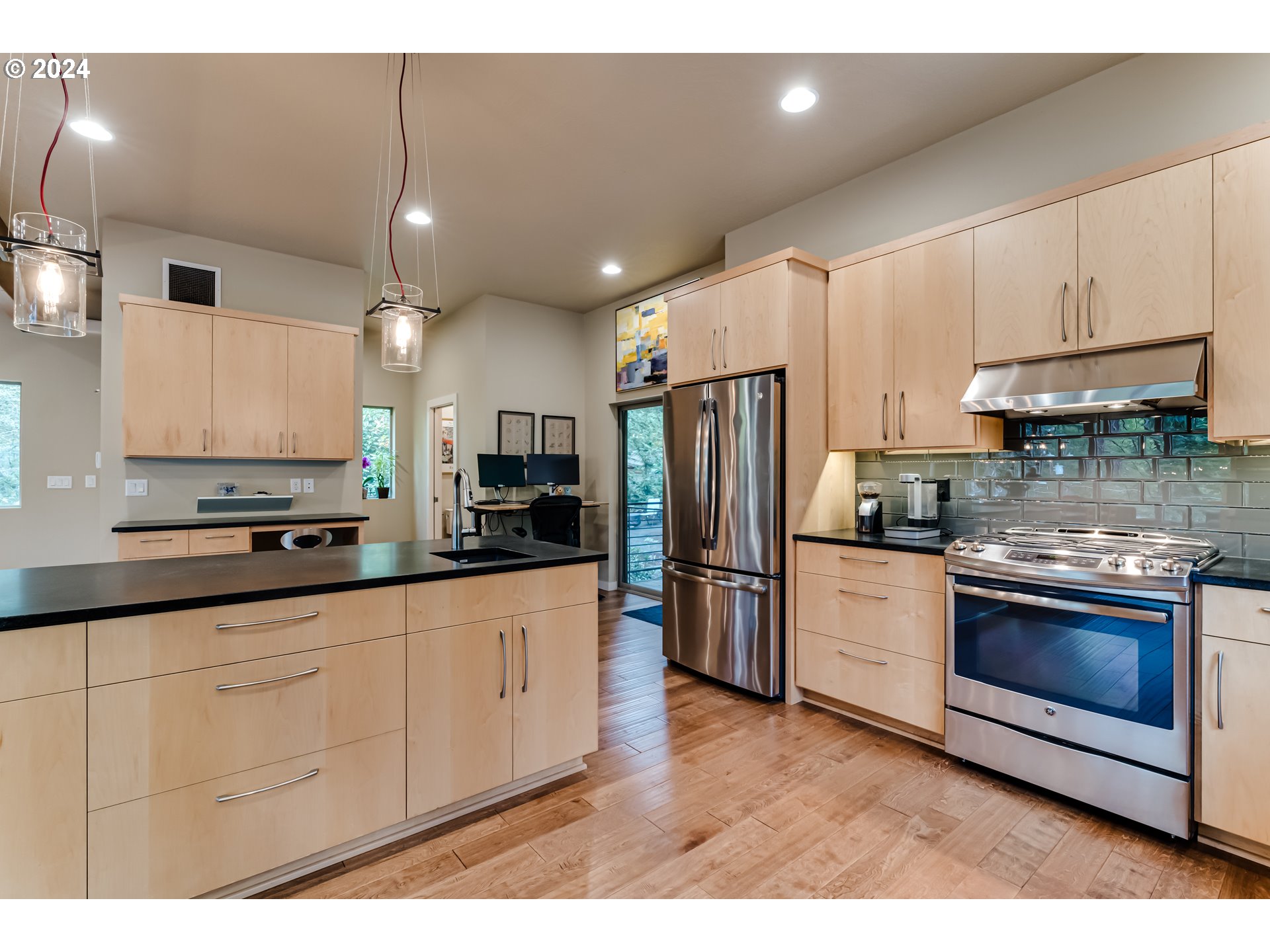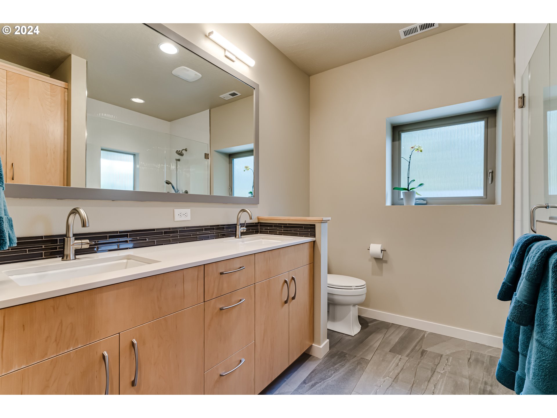 (503) 893-8874New, modern, thoughtful and gorgeous. There are few examples of a home such as this in our community. The main level layout is the open concept that we all yearn for with high, beamed ceilings and light from all four directions. The view from every window is serene. Whether you’re hosting a large family gathering or enjoying a quiet night at home this house will be accommodating. The kitchen is defined by a large eating island with a prep sink, and trimmed out with beautiful wood floors and tile backsplash. Quartz slab counters with undermount sinks make even mundane tasks like cleaning enjoyable. Under-cabinet lighting and a butler pantry with a wine fridge add refinement. The appliances are high end, stainless with a gas range. All of the rooms are ample and the primary bedroom is the crowned jewel. You can't help but feel fortunate waking up here. Take in the morning air on your private balcony. The walk-through closet is designed for every kind of clothes hound. Prepare for your morning or wind down from your day in style in the walk-in, tile shower. The laundry is on the same floor as the bedrooms for your convenience. The lot is private and low maintenance with a fenced back yard and mature landscaping. The oversized garage has room for gym equipment and storage, not to mention the built in dog wash station with hot and cold water. This home is exquisite from top to bottom. Beauty is in the details.