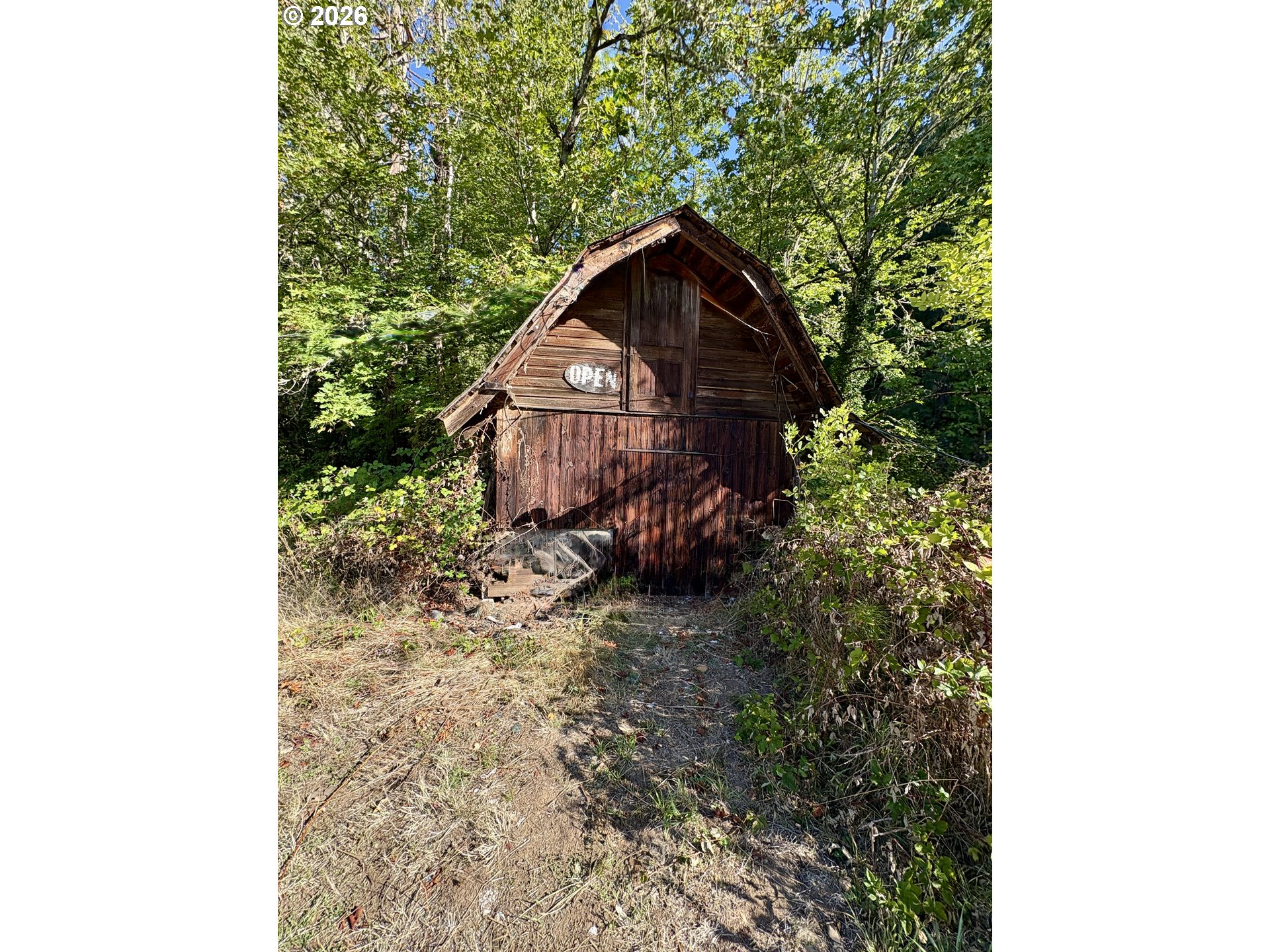 This beautifully maintained single-level home sits on three flat, usable acres with pristine Mosby Creek frontage, backs directly to BLM land, and includes a second residence, perfect for multi-generational living or rental income. The main home features numerous updates, including a 1-year-old heating system with A/C, a 2-year-old metal roof, a newer septic system (4 years old), and a large walk-in shower. The spacious kitchen offers an eating area, while the formal dining room showcases custom French doors that open to the outdoors. A cozy living room with a fireplace, generously sized bedrooms, and large closets complete the home. The second home built in 1978 offers 2 bedrooms, 1 bathroom, and 860 sq ft. While it needs many repairs/remodel, it presents excellent potential as in-law quarters, a guest house, or a rental property. This hobby farm includes mature fruit trees—apple, plum, green and purple grapes, along with ample space for animals. The property also features an old barn w/ stall, a large canning room, ideal for preserving your homegrown fruits and vegetables and multiple outbuilding. Enjoy unforgettable Oregon summers with your own private creek access, perfect for fishing, swimming, sunbathing, or relaxing by the water. With BLM land beside and behind you, privacy and recreation are unmatched. A truly special creek front property offering space, freedom, and endless possibilities.
