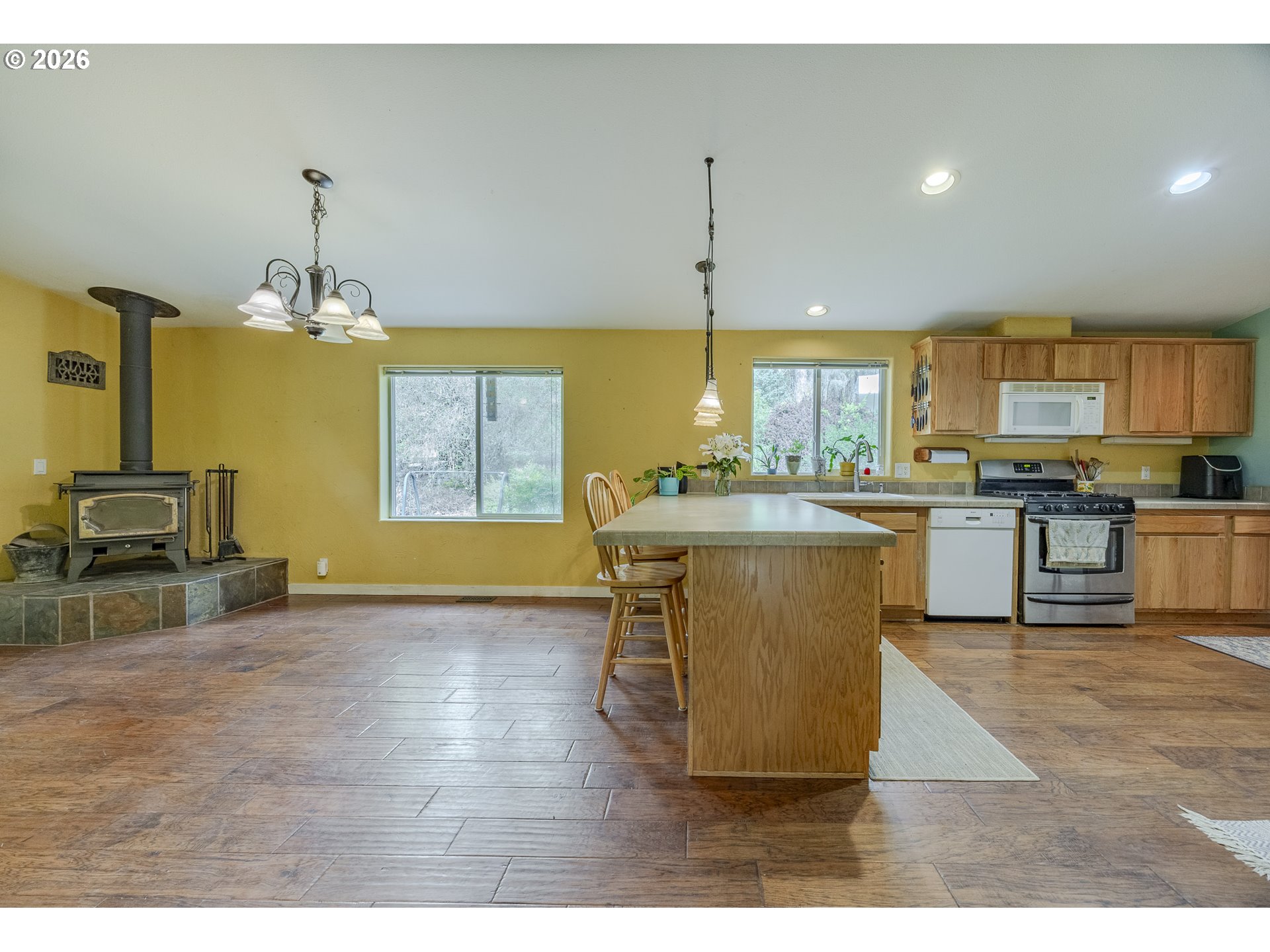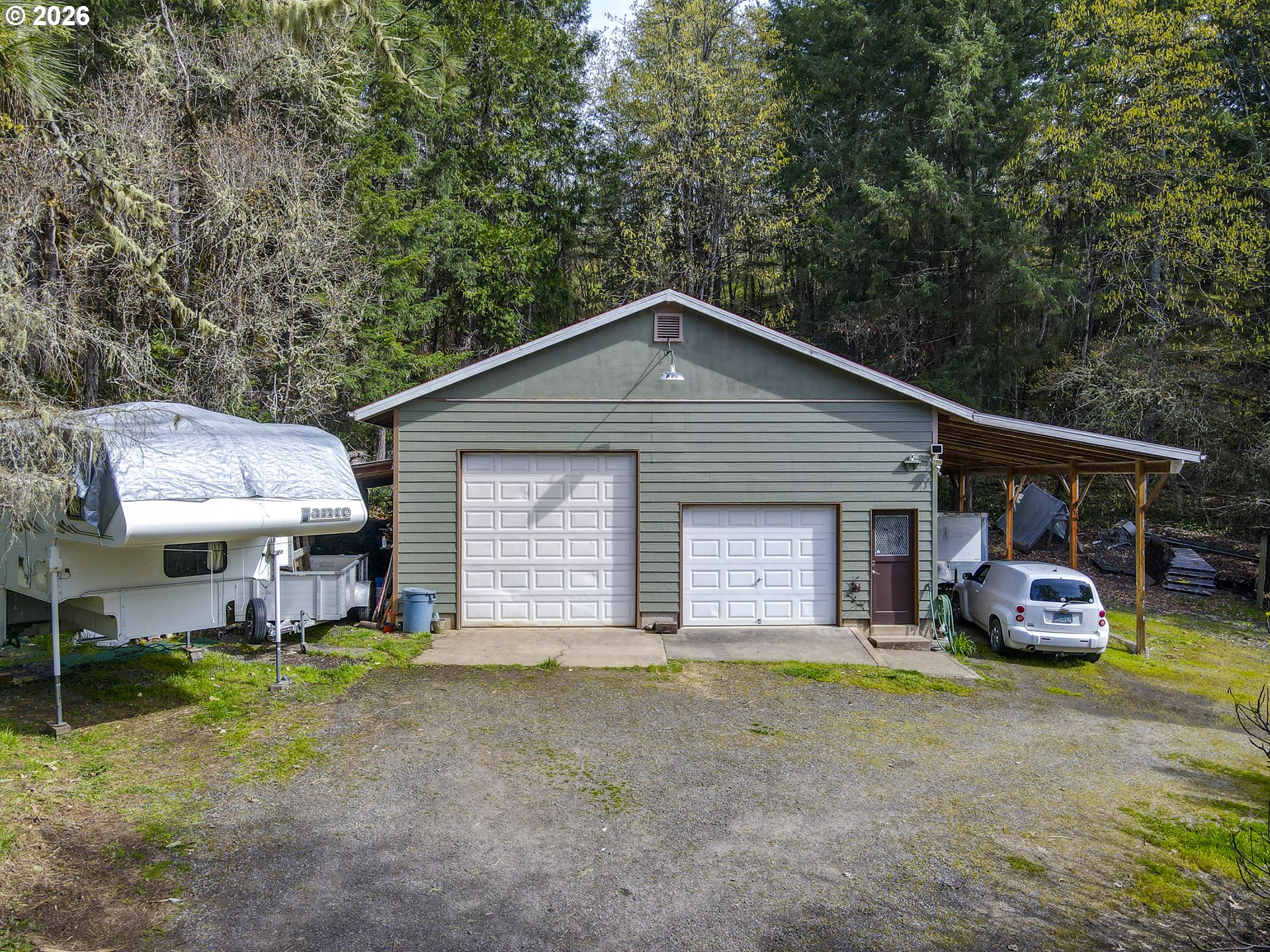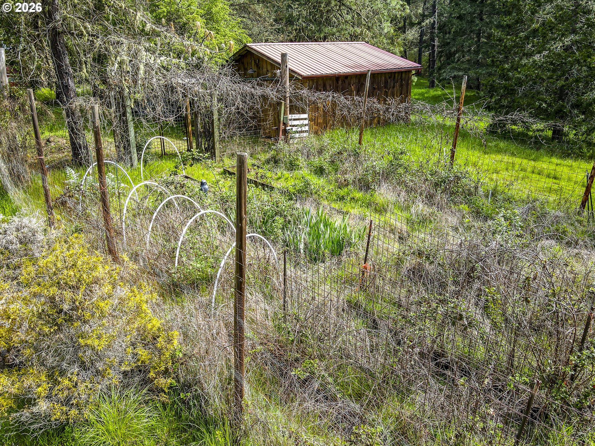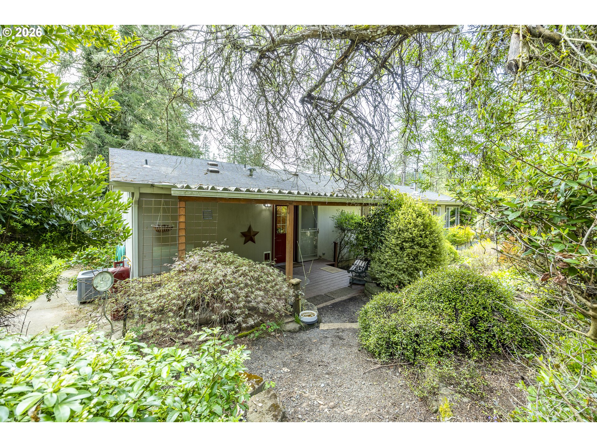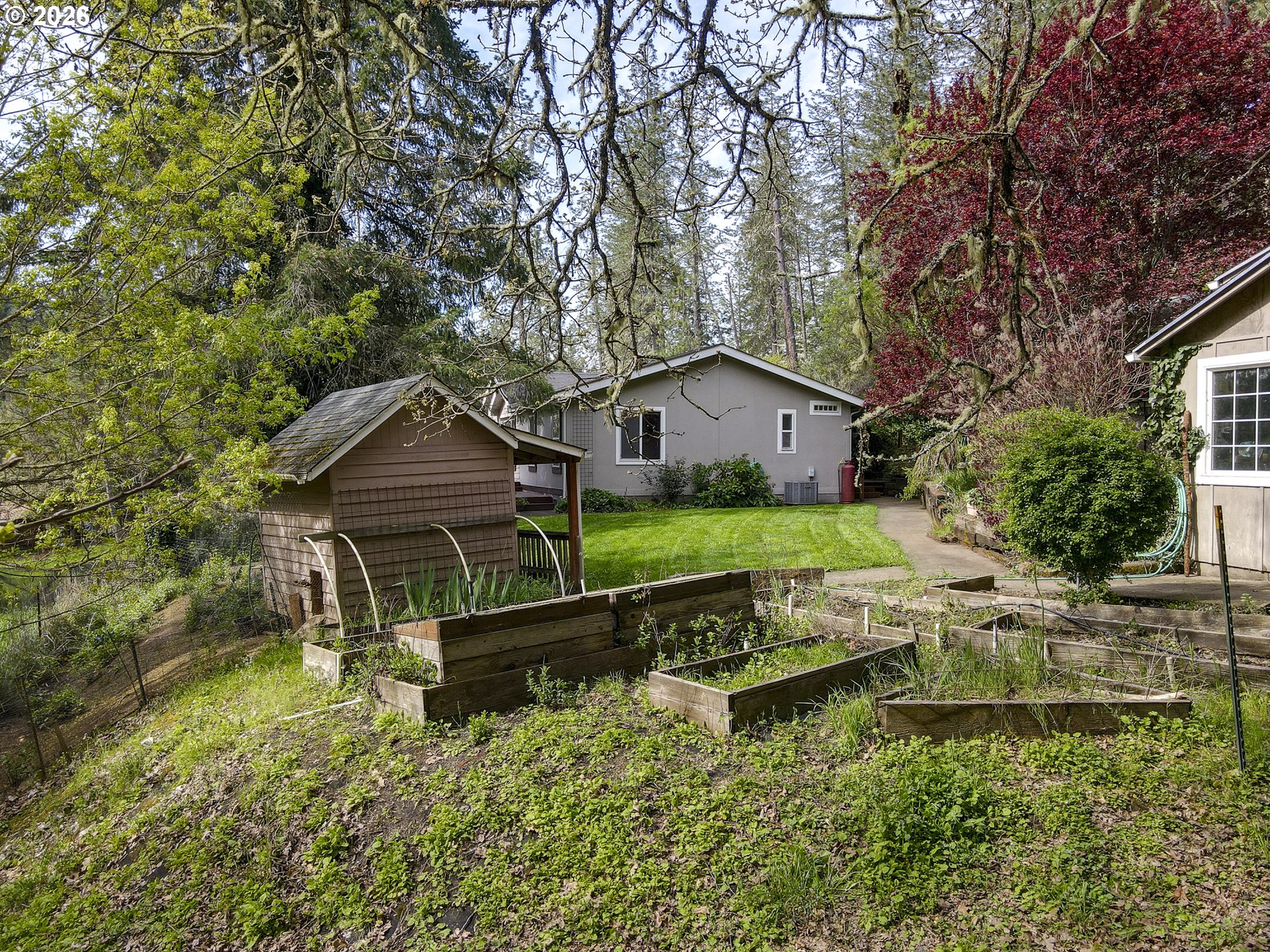 Acreage on a Private Country Haven. This stunning 3-bedroom, 2-bath dual-living manufactured home sits on 5.01 peaceful acres. Designed for comfort, functionality, and outdoor living, this property offers space, privacy, and endless possibilities for a self-sufficient or active lifestyle. The home features a gas stove for cooking, a certified wood stove, A/C heat pump, and generator backup, providing year-round comfort and reliability. A large deck overlooks the open pasture and seasonal creek, creating the perfect place to relax and enjoy the surrounding wildlife and natural beauty. The property is fully equipped for work, hobbies, and outdoor living, including a massive shop with attic storage and a separate workspace for hand tools and woodworking, a powered and plumbed barn, a cottage ready for your personal touch, and a garden shop/wood storage building. Three established irrigated gardens with power make growing your own food easy and efficient. Additional features include: Hot tub. Two RV hookup areas with power, water, and dump. A 1,200-gallon water backup tank. Two covered dog kennels. Chicken coop with run. Seasonal creek and wildlife. Hiking access to a ridgeline directly from the property. Located just a few miles from the Row River Trail, outdoor enthusiasts will enjoy easy access to running, walking, and biking through incredible scenery. The area is rich in local history and offers two nearby lakes for fishing, kayaking, and relaxation, along with two beautiful 18-hole golf courses. Built on acreage in a scenic and peaceful setting, this property is a true haven for nature lovers, hobby farmers, and those seeking a quiet rural lifestyle with modern conveniences. Don’t miss this extraordinary opportunity — schedule your private showing today!