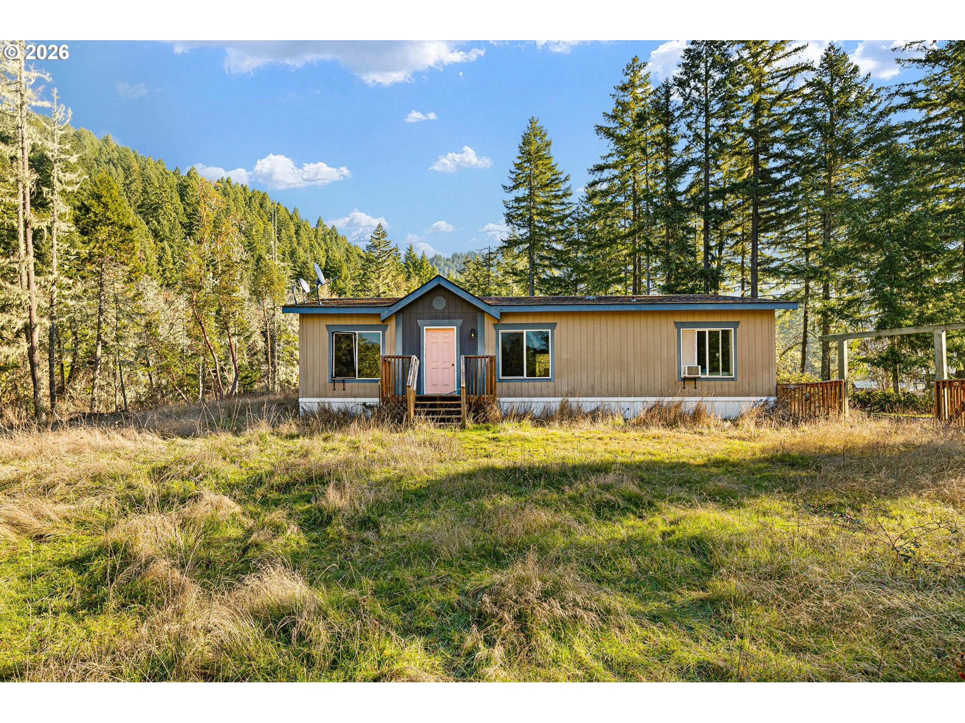 You could go completely off grid or just disappear from society on this secluded 80 acres with 2 houses. The main house is stick built on 78 acres and a manufactured home on another 2 acres. Being almost 2 miles past the closest home these homes are a perfect preppers paradise. A hunting guide could live in one home and rent the other to hunters, Air b&b or just have a good ol family compound. The main house is a custom built 3 bed, 2 bath with a huge upstairs office and tons of character! The MH is a 3/2 that was placed in 2015. The two share a well and each have their own septic. At an elevation of 1720' both homes are nestled just under Eagles Rest, which is an owl preserve. Eagle creek flows year round cutting through the back of the property. There is another seasonal creek or two as well as a couple ponds. In addition there is a large shop with a couple rooms in it, a small barn, an old chicken coup and a huge old garden. The driveway is maintained by BLM. Timber was harvested in 1993 only taking timber more than 6" at 30'. It was reseeded then and has plenty of merchantable timber. Come get lost in reality at the end of Lost Creek rd! The homes show some deferred maintenance but with a little love this will be a dream come true property. Gate is locked 24/7, no drive by’s. Please schedule all viewings. Buyer to do their own due diligence.