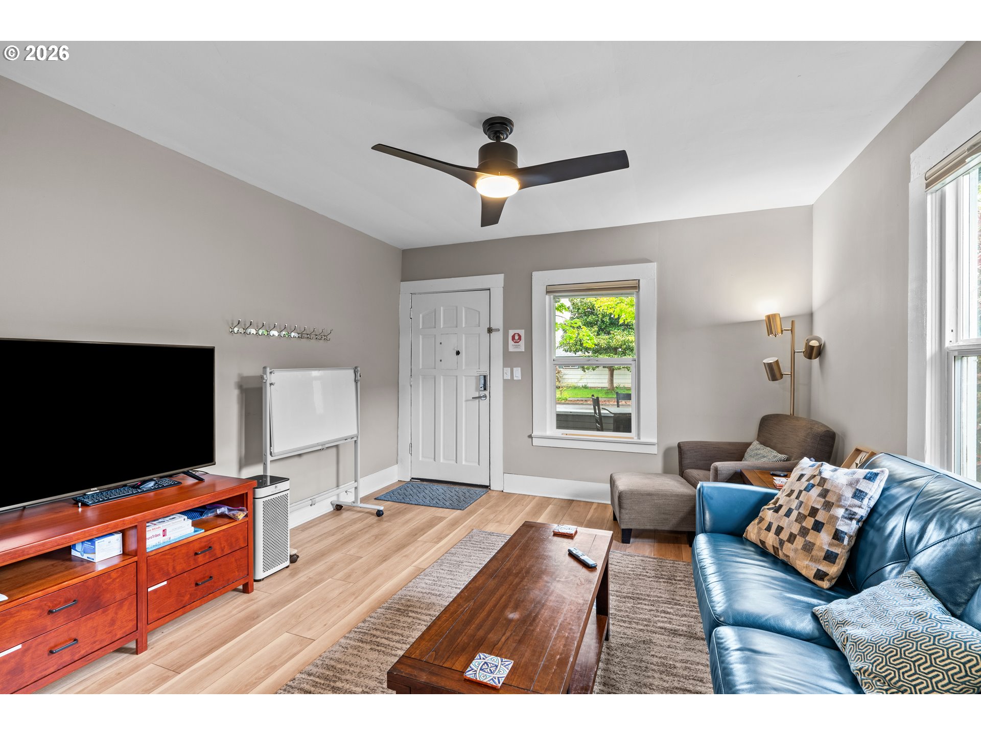 Two turn-key homes with separate addresses on one tax lot in the highly desirable Washburn neighborhood! Situated on a quiet corner and surrounded by beautiful historic homes, this property blends thoughtful updates with the charm and character of the area. Not on the historic register, but located within the Washburn Historic District. The main home has been tastefully updated for functionality while maintaining its original appeal, 8.5 ft ceilings and updated bathroom and kitchen. Outside, enjoy a private, hardscaped patio—perfect for entertaining or relaxing—along with a low-maintenance yard, mature trees, raised garden beds, a storage shed, and ample space for storing your toys.The detached one-bedroom home is incredibly charming, featuring robin’s egg blue kitchen cabinetry, a French door leading to the bedroom, and a fully renovated bathroom. With alley access and a separate entrance, it offers excellent privacy from the main home. A rare opportunity for multi-generational living, owner-occupancy with rental income, or potential short-term rental. Current lease in place through the end of July. Back house address is 553 8th St. Springfield OR 97477. Open house on Sunday 3-5pm. Please do not disturb tenants.