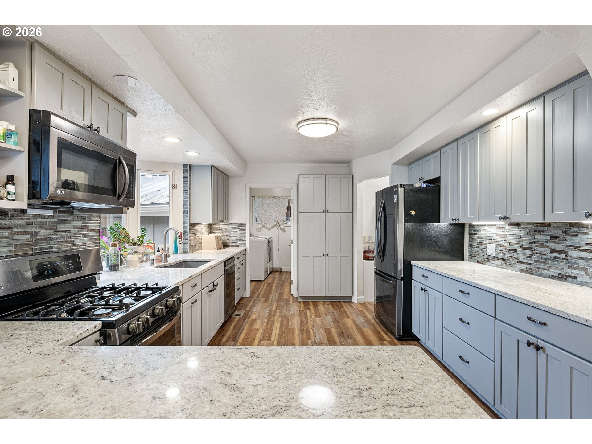 (503) 893-8874PRICED TO SELL. Almost an acre near city center with a HUGE shop.Discover the possibilities with this charming home and adjoining vacant lot. Zoned for both residential and commercial use, this property offers exceptional flexibility—whether you want a large yard or want to take advantage of its income-generating potential.A white picket fence and covered front porch welcome you into an inviting home that blends farmhouse charm with updated Craftsman details. The interior has an open, warm feel with beautiful built-ins and thoughtful touches that create a timeless look.The home offers four bedrooms plus an optional fifth bedroom (without a closet), 2.5 bathrooms, and abundant storage, making it ideal for a family or multi-generational living. The fourth bedroom and bonus room feature separate private entrances, adding versatility for extended living, guests, or work-from-home options.The remodeled kitchen includes stainless steel appliances, granite countertops, a glass backsplash, a large bay window, and a generously sized pantry. Bamboo floors flow into the dining room, which opens through French doors to a deck and fully fenced yard. The main-floor primary bedroom includes an updated bathroom and a large walk-in closet.An expansive bonus room offers multiple uses, including a game room, craft or sewing room, or additional office space for a home-based business. Outside, a separate gated and paved driveway leads to an oversized 44’ x 38’ shop wired with 220 volts—ready to support a commercial venture or expansion. Additional features include RV parking with hookup, a greenhouse, fruit trees, and grapevines, offering excellent potential for gardening enthusiasts.The property is well positioned for both residential living and business use, with easy access to Highway 99 and strong visibility