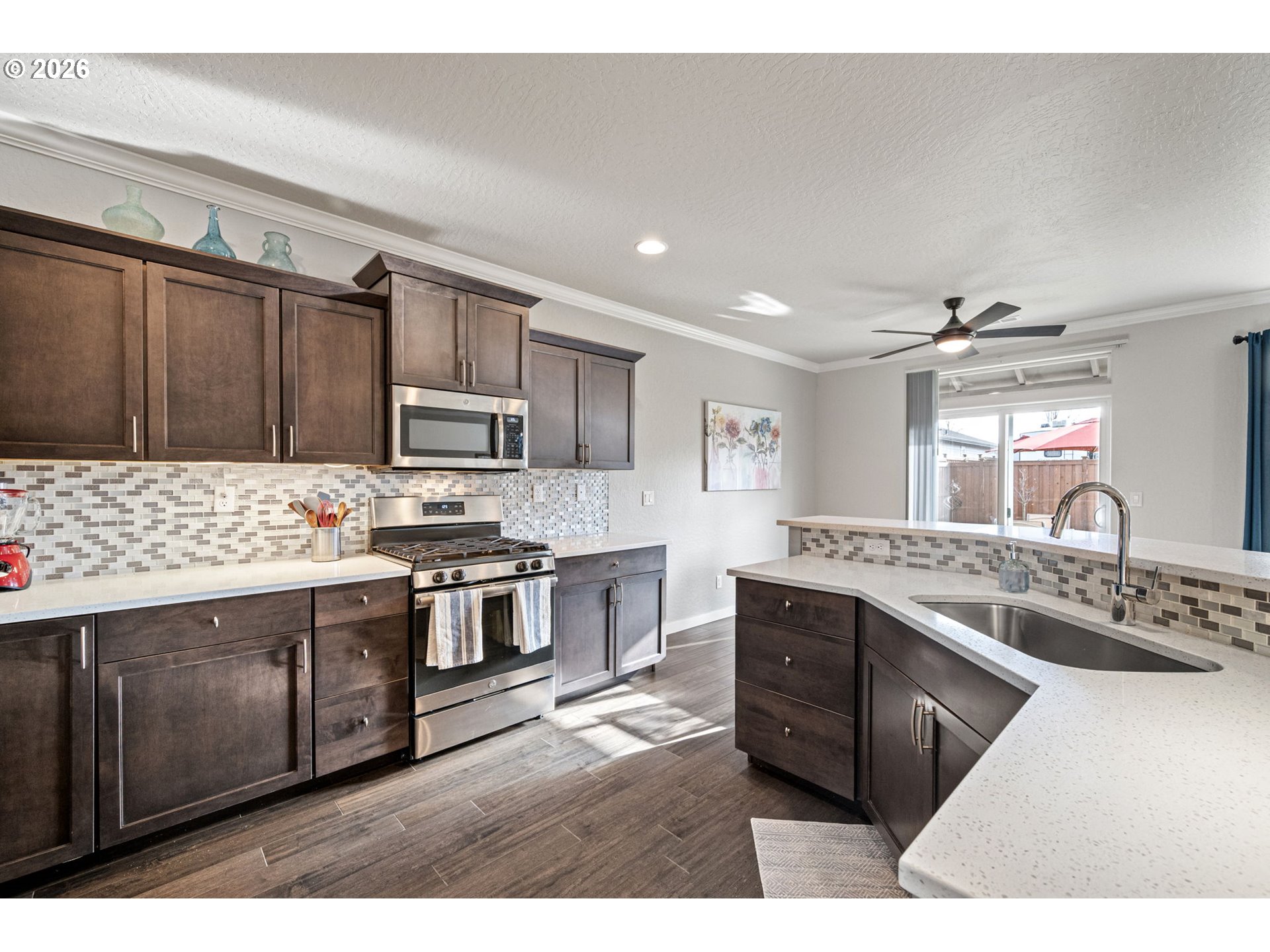 (503) 893-8874Stunning 2019 built, single level home offers modern finishes and a desirable open floor plan designed for comfort and style. Kitchen features quartz countertops, stainless steel appliances, built-in microwave, 1 yr old dishwasher w/extended warranty, spacious pantry, eating bar and opens to greatroom and dining. Fabulous engineered wood flooring flows throughout, complemented by tile floors in the bathrooms and utility room. Primary bedroom boasts an oversized gorgeous tile shower, dual sinks, solortube and large walk-in closet. Fully finished and insulated garage & garage door, 10 ft ceiling and 8 ft door with opener. Step outside to the oversized patio perfect for entertaing complete with two, 11 ft offset canteliver umbrella's. Fully fenced yard boasts raised garden beds, sprinklers, lush grass, with plenty of room for all your outdoor activities and room for furry friends to play. Located just a half-block from Filbert Meadows Park. Don't miss! Open Sat. 1/10 from 10 1-3pm