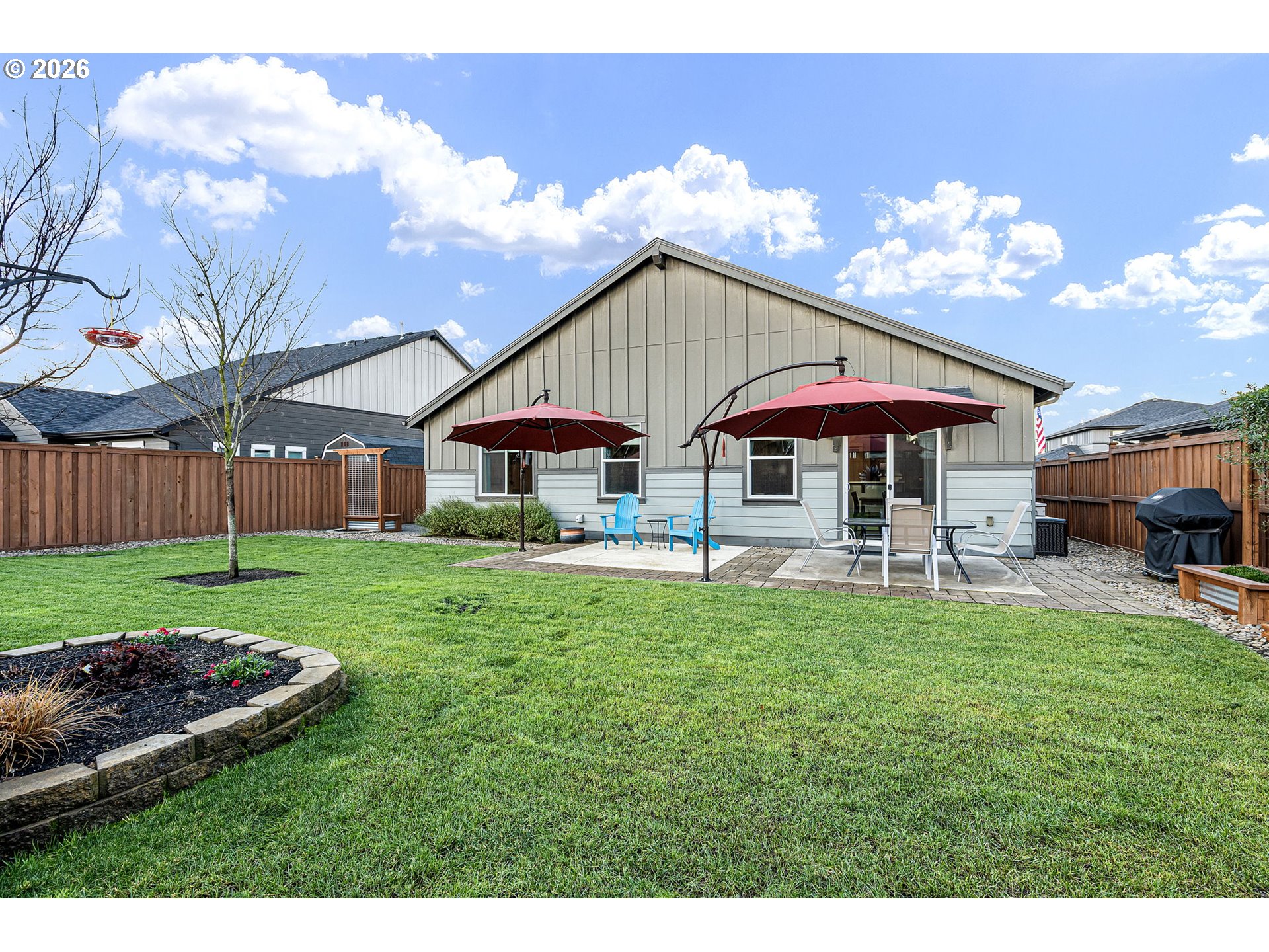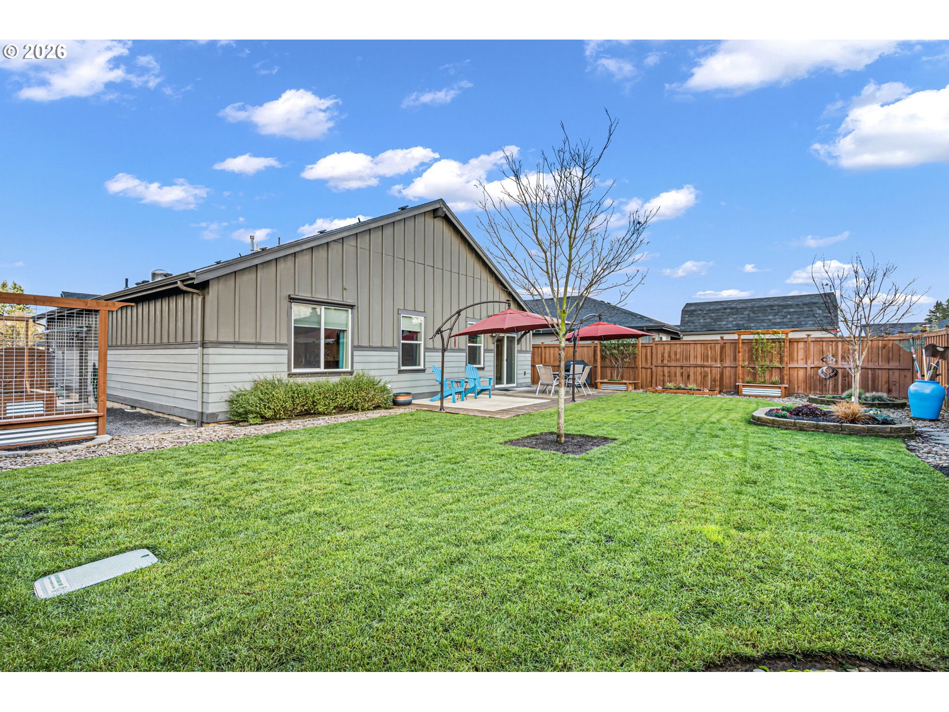 Fenced, Patio, RaisedBeds, Sprinkler, Yard
