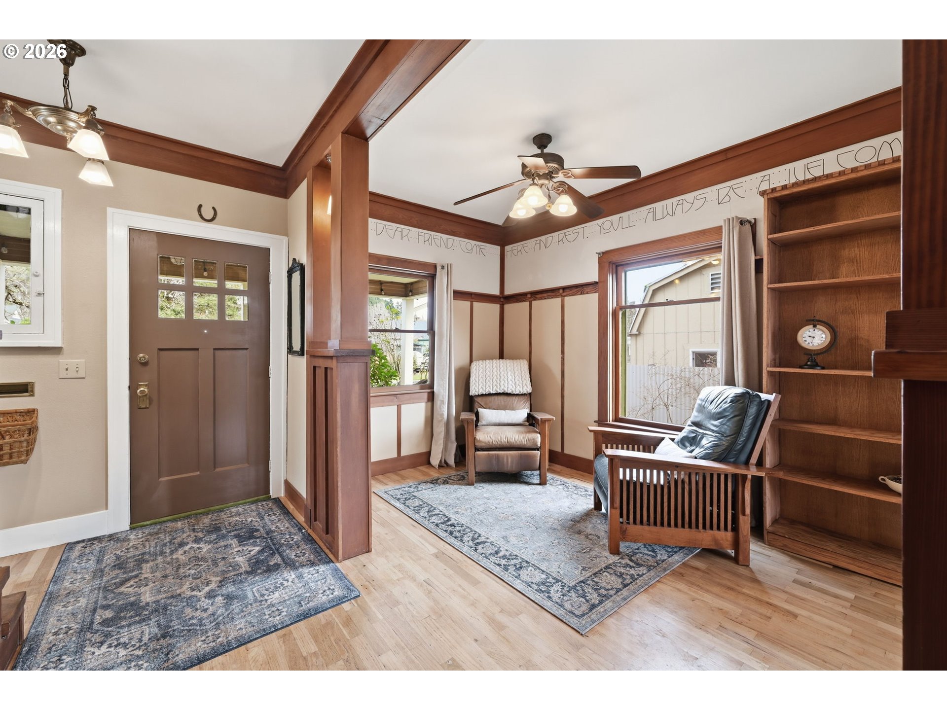 (503) 893-8874This home has so much to offer! Charming and spacious, this classic beauty blends historic character with functional living space. The home's Arts and Crafts style is complemented by updates and a layout that balances comfort with practicality. The main home features 3 bedrooms and 2 bathrooms, with a floor plan that offers flexible living options—bedrooms, bathrooms, and living spaces in both the downstairs and upstairs areas. With a separate converted garage apartment featuring 1 bedroom and 1 bathroom, a separate office or studio, a basement workshop, RV parking in an extra-long driveway, a private fenced backyard, a fire pit, fruit trees, landscaping, sprinkler system, and a raised garden; all of these features are ideal for today’s lifestyle needs. Inside the home, you will appreciate high ceilings and newly refinished wood floors downstairs, stained glass and leaded windows, updated electrical and plumbing, built-in bookcases, quartz counters in the kitchen, and a brand new stainless steel refrigerator and stove. All of this is within walking distance from historic downtown coffee shops, restaurants, and a variety of shops.