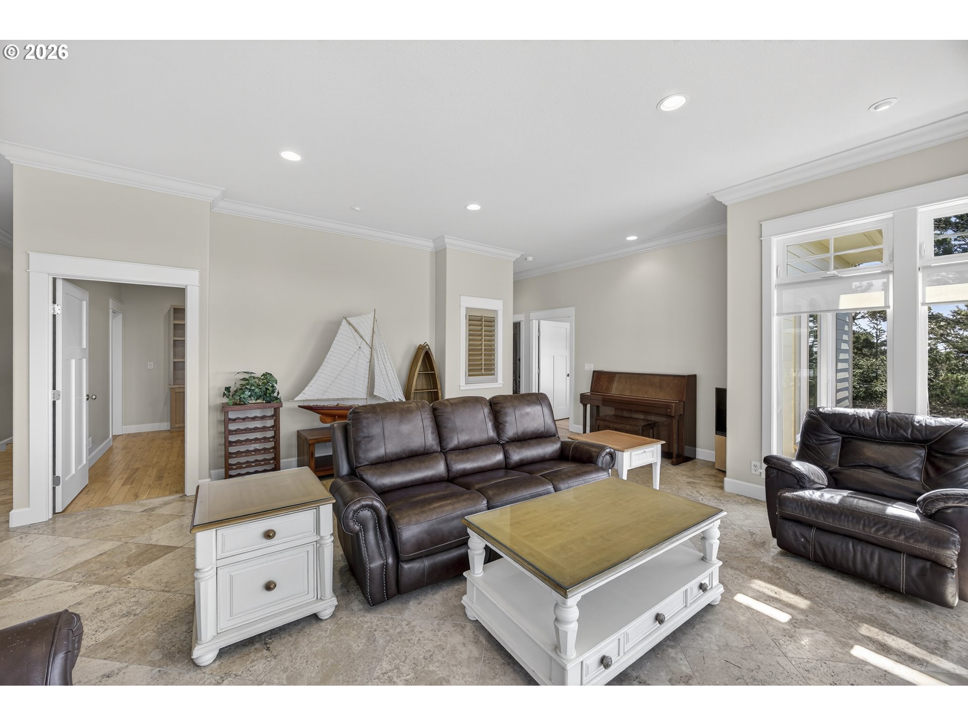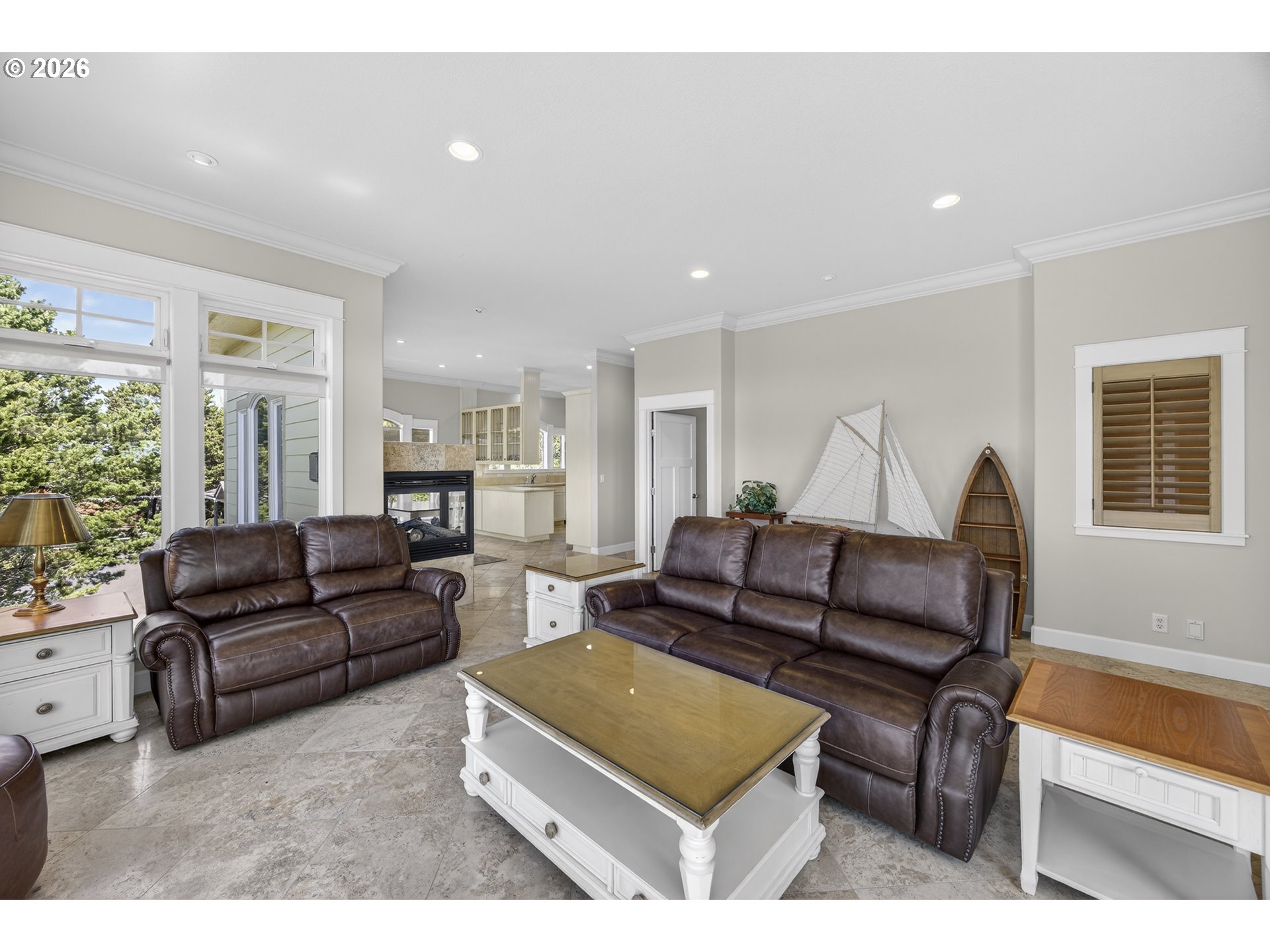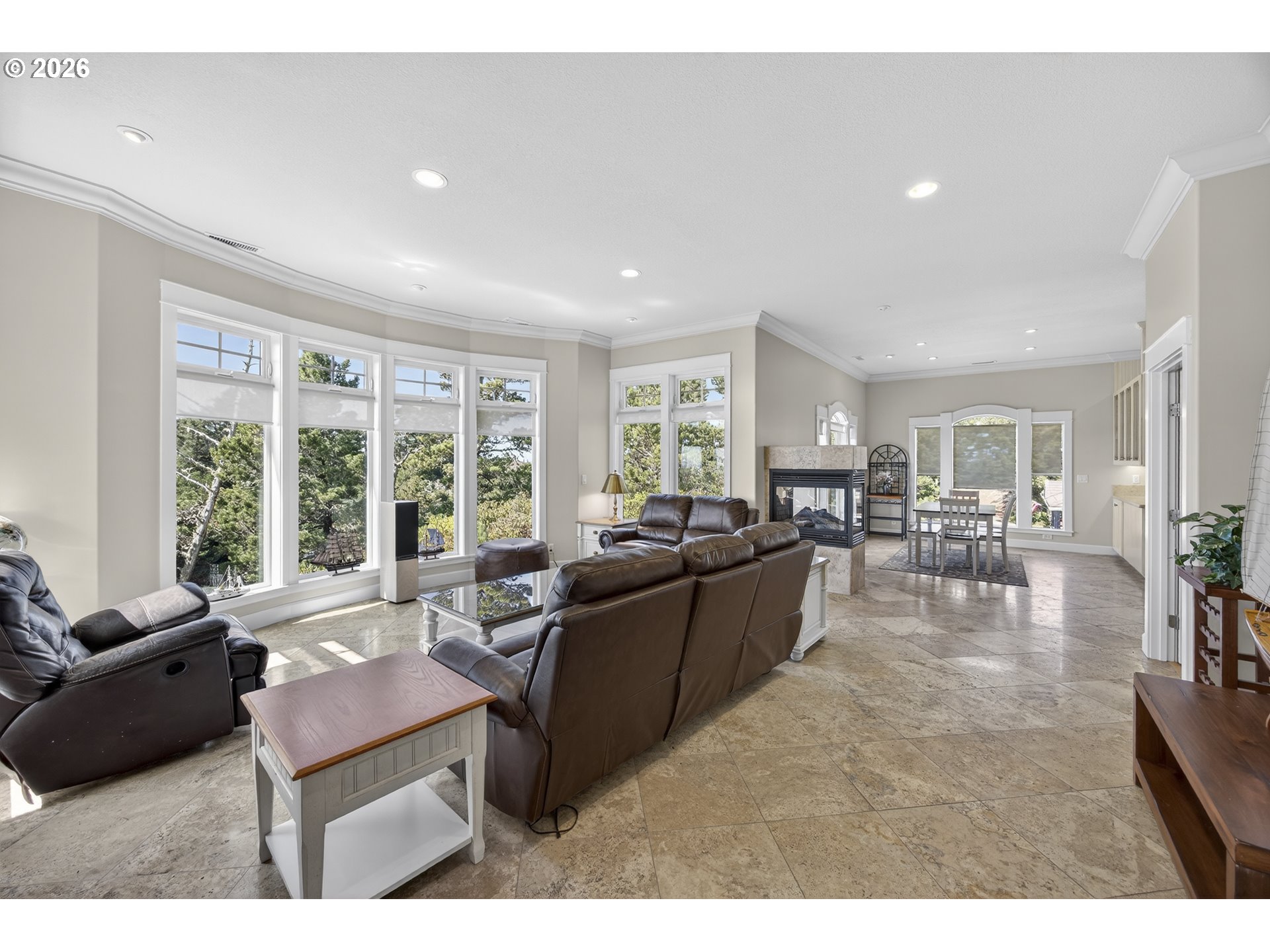 (503) 893-8874An exquisite retreat in the prestigious gated community of Shelter Cove, this 2,904 sq ft residence rises gracefully above the Siuslaw River, offering refined living and breathtaking views of the ocean and river. Recently painted inside and out, the home blends custom craftsmanship with modern comfort, beginning with an open-top elevator lift that welcomes you into a world of understated luxury. The gourmet kitchen is a chef’s delight, featuring limestone counters, Italian travertine, and a charming breakfast nook with its own fireplace—an intimate spot to savor morning light. The living and dining rooms capture sweeping vistas through expansive windows and are anchored by a striking three-sided glass fireplace, creating a warm, dramatic focal point. The primary suite is a sanctuary of elegance, showcasing a travertine walk-in shower, dual vanities, and his-and-hers closets. A versatile den/office includes a custom French wall bed, offering flexibility for guests. Oak and travertine floors flow throughout, enhancing the home’s natural beauty.Downstairs, a spacious family room/ home gym/studio, with a half bath and second laundry adds convenience and comfort and an abundance of storage. Every detail has been thoughtfully curated, from the architectural lines to the elevated setting that frames the river and surrounding landscape. A truly stunning home—crafted for those who appreciate luxury, privacy, and the serene coastal lifestyle.