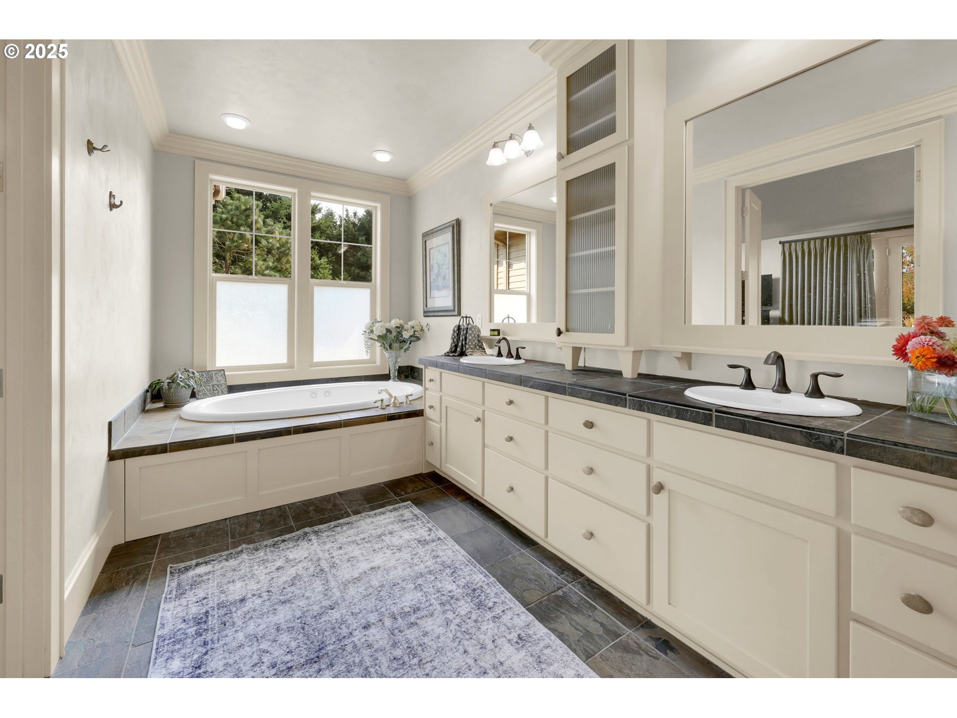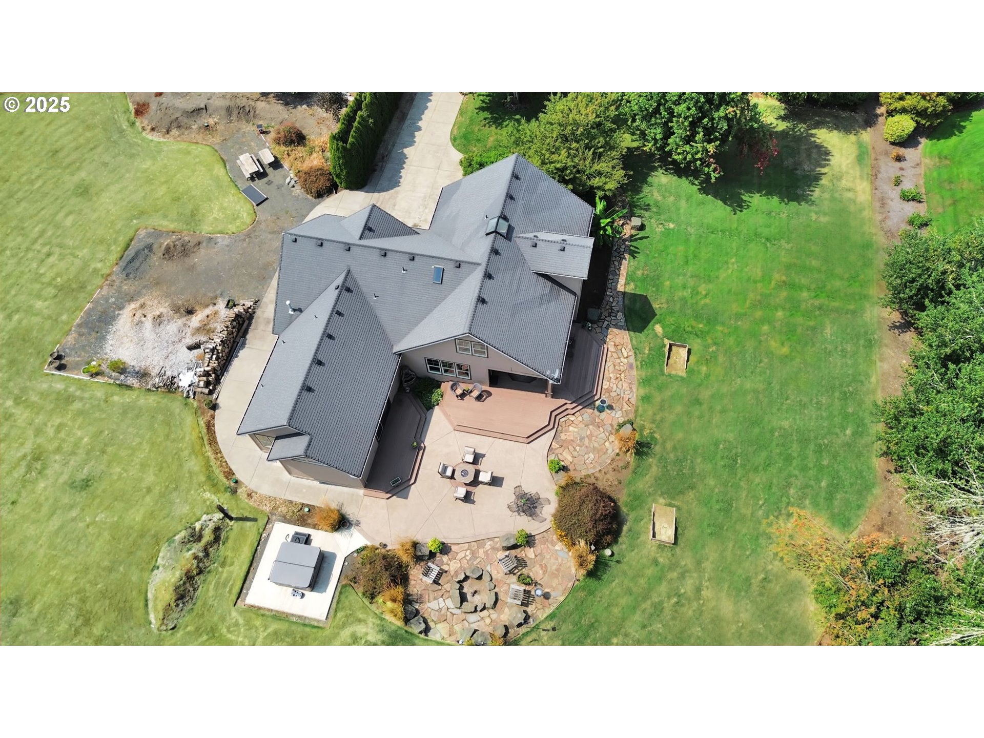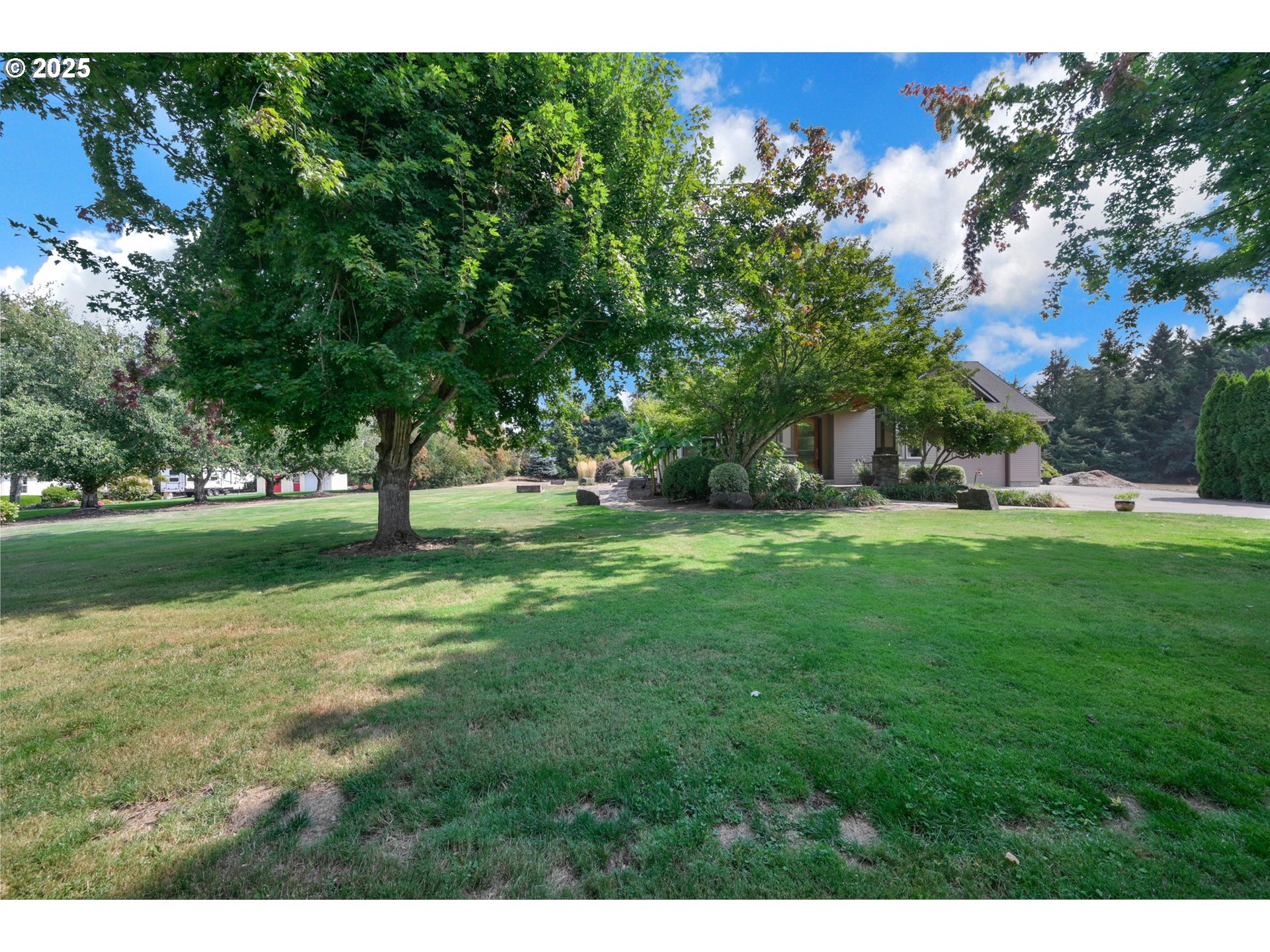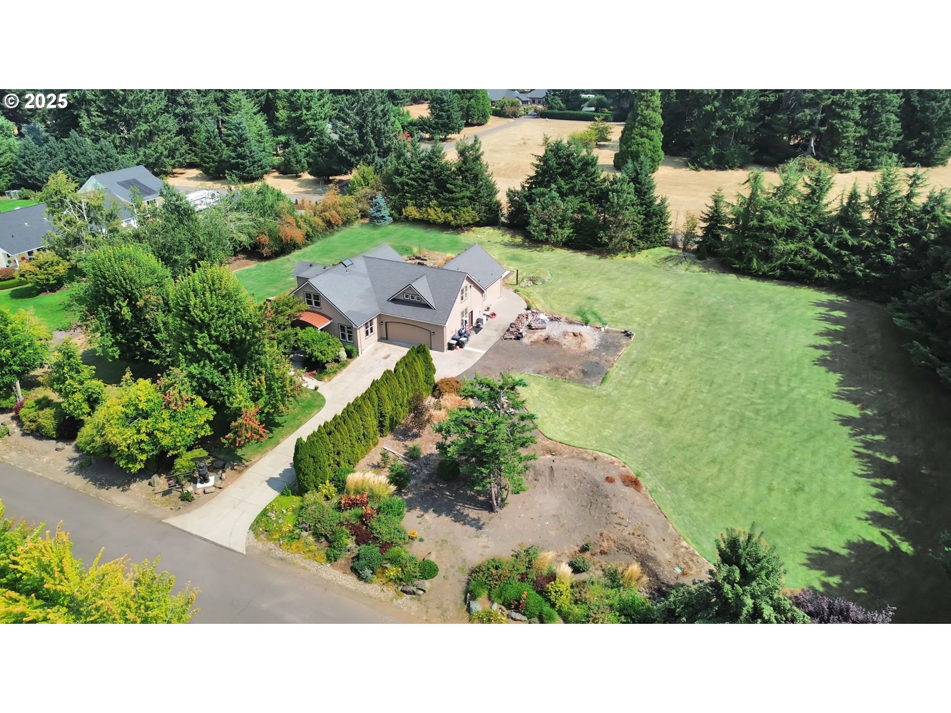 Discover your dream home on two acres near Eugene. Nestled on a private road, this stunning former tour home blends timeless craftsmanship with serene natural beauty. From the moment you step through the exquisite front door, your eyes are drawn to expansive windows framing tranquil views.The thoughtful floor plan centers around a spacious open-concept kitchen and family room. A granite eating bar, butler’s pantry, and casual dining area create the perfect setting for both everyday living and entertaining. Step outside to enjoy your morning coffee by the two-sided glass fireplace, host summer barbecues on the expansive patio, or gather around one of the fire pits(gas and wood) with family and friends. Surrounded by trees, the backyard is a true extension of the indoor living space—ideal for relaxation, entertaining, and year-round enjoyment. There is plenty of room for your toys, with a large RV pad, as well as plenty of space to add outbuildings! The main-level primary suite offers a private retreat with an oversized walk-in shower and generous walk-in closet. Upstairs, you’ll find two additional bedrooms, an office area, and a versatile bonus room that can serve as a large family room or a fourth bedroom.Located near Pleasant Hill’s highly desirable schools, this exceptional property combines sophistication, functionality, and natural beauty. Whether you’re seeking cozy evenings by the fire, lively gatherings, or peaceful mornings with wildlife, this home adapts effortlessly to your lifestyle. A rare find—don’t miss the chance to make it yours.