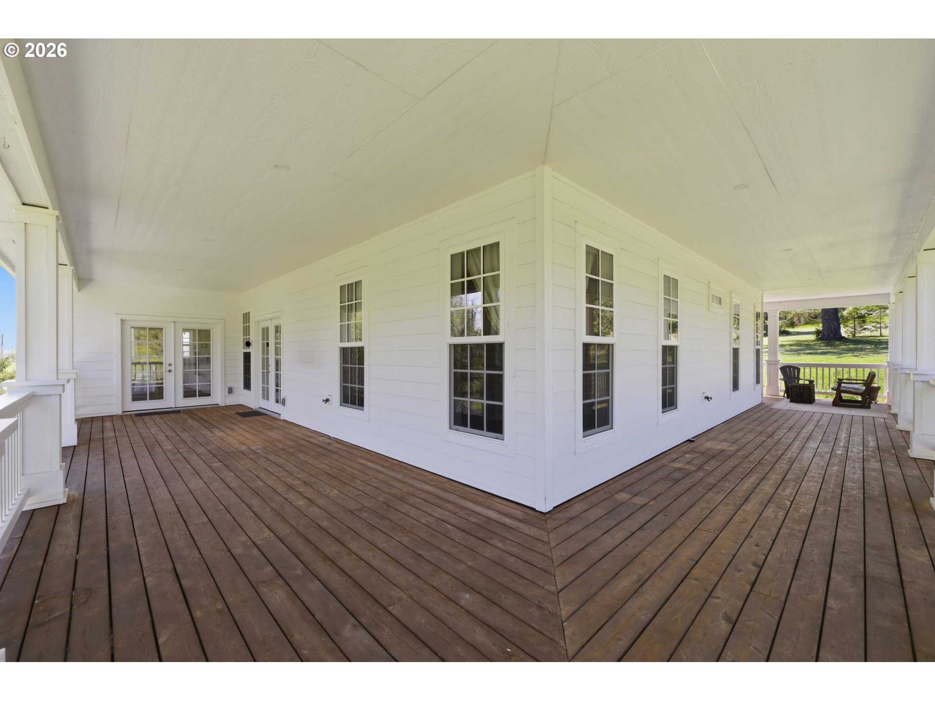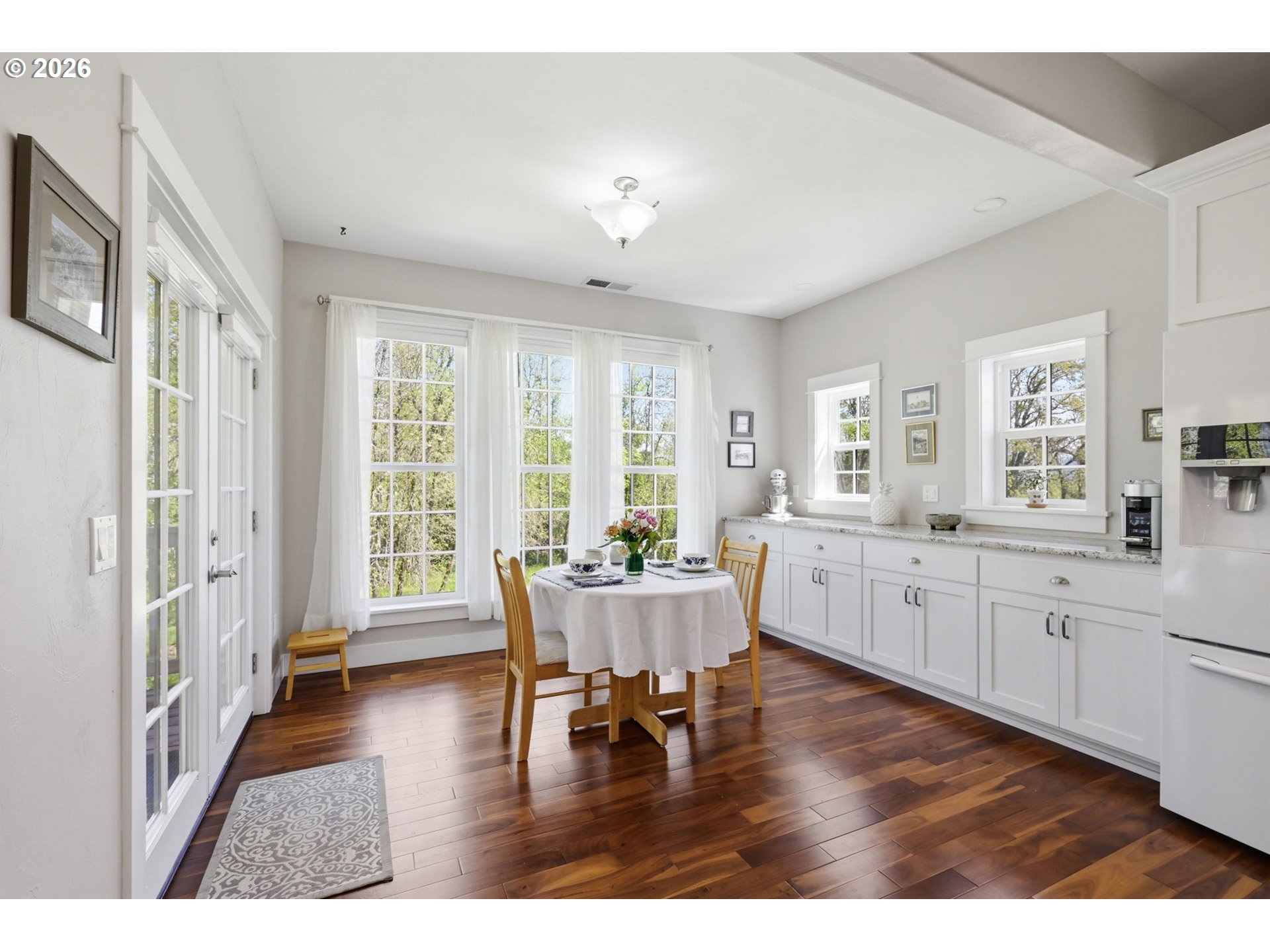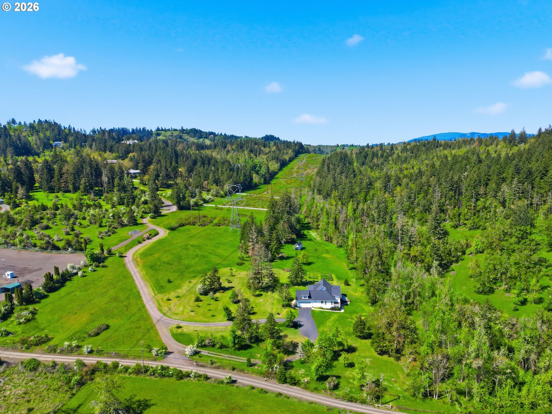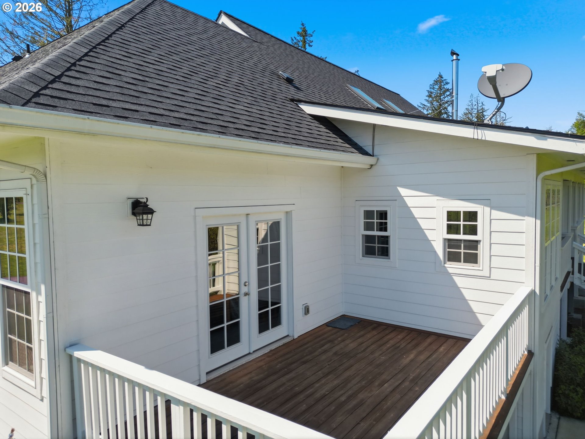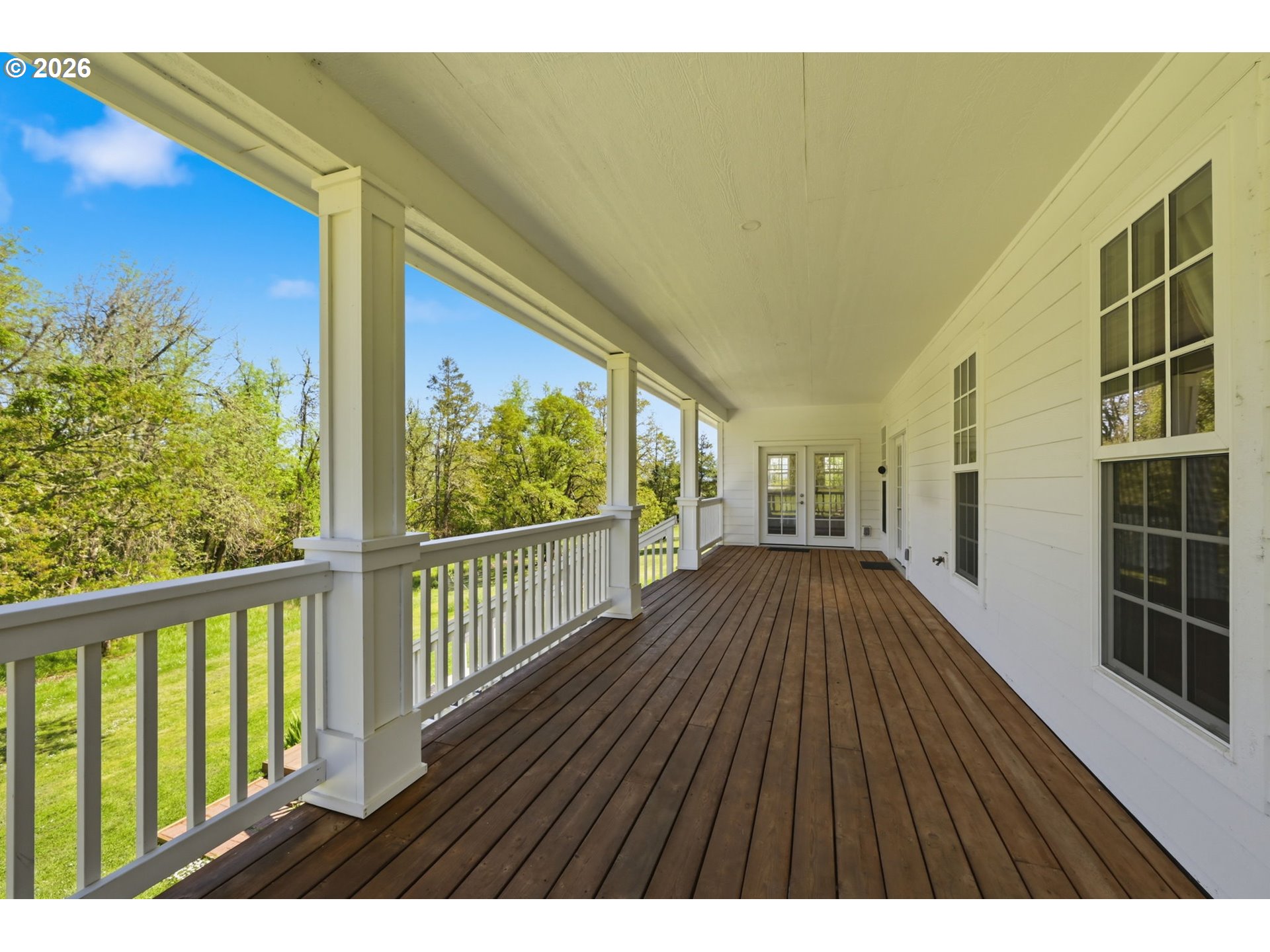 (503) 893-8874Stunning Modern Farmhouse features a classic wrap-around porch and light-filled interior. Mostly main-level living showcases exquisite acacia wood flooring, complemented by detailed molding on abundant windows and doors. The thoughtfully designed floor plan offers excellent separation between the guest rooms and the primary suite. The gourmet kitchen features a leathered granite peninsula, extra deep farm sink, timeless subway tile backsplash, and a convenient pantry with pull-out shelves. Adjacent to the kitchen, the bright breakfast room catches the morning sun and includes soft-close cabinetry, an extended granite counter, hill views, and French doors for easy outdoor access. The generous family room adds drama with a vaulted ceiling, skylights, tall windows, French doors, and woodstove. The Primary suite boasts a separate bathtub and shower, dual sinks, walk-in closet with built-ins, and French doors leading to its own deck with views of the nearby creek and hills. Each of the 2 1/2 bathrooms and the laundry room have porcelain tile flooring and granite counters. Up the wide staircase, enjoy the very private den/office which could easily function as a large 4th bedroom, if a closet was added. The 466 square foot unfinished stand-up attic offers wonderful storage and/or expansion possibilities. Architectural amenities include an Arched Window, Front Shutters, Attached Flower Boxes, Mature Landscaping, Fruit Trees, and a Fenced Garden. Walk-in storage space, approximately 40'x 11' under the home, has electricity, plywood "floor", small shop space, and insulation. There is even more storage space under the side and back of the wrap-around decks. Additional abutting 5.44-acre parcel, Ridgetop Lot 15, RMLS #24641325, is available, for a total of more than 11 acres. Don't miss this opportunity to experience life in a truly beautiful home in one of South Eugene's premier neighborhoods! Contact your broker today to view.