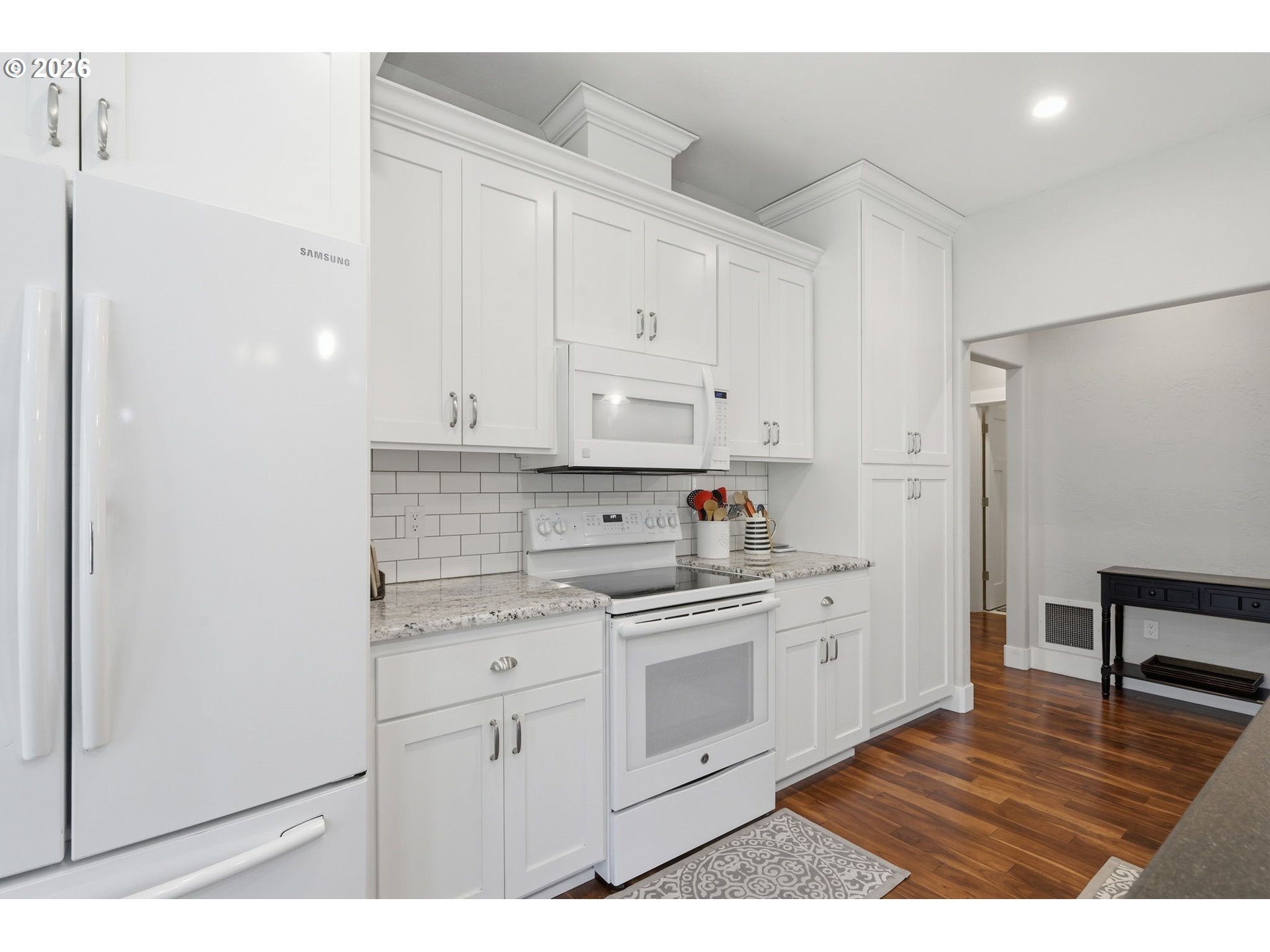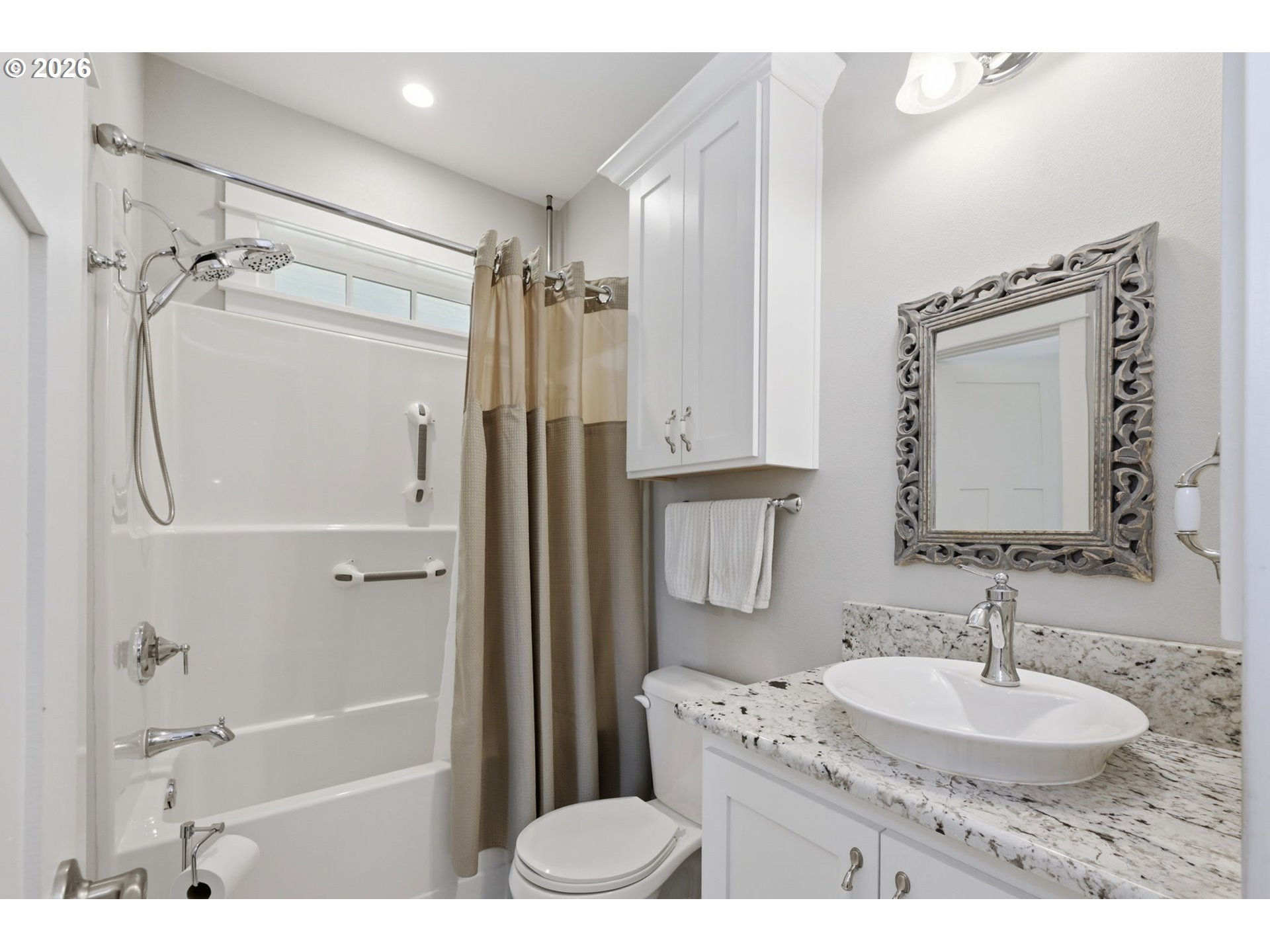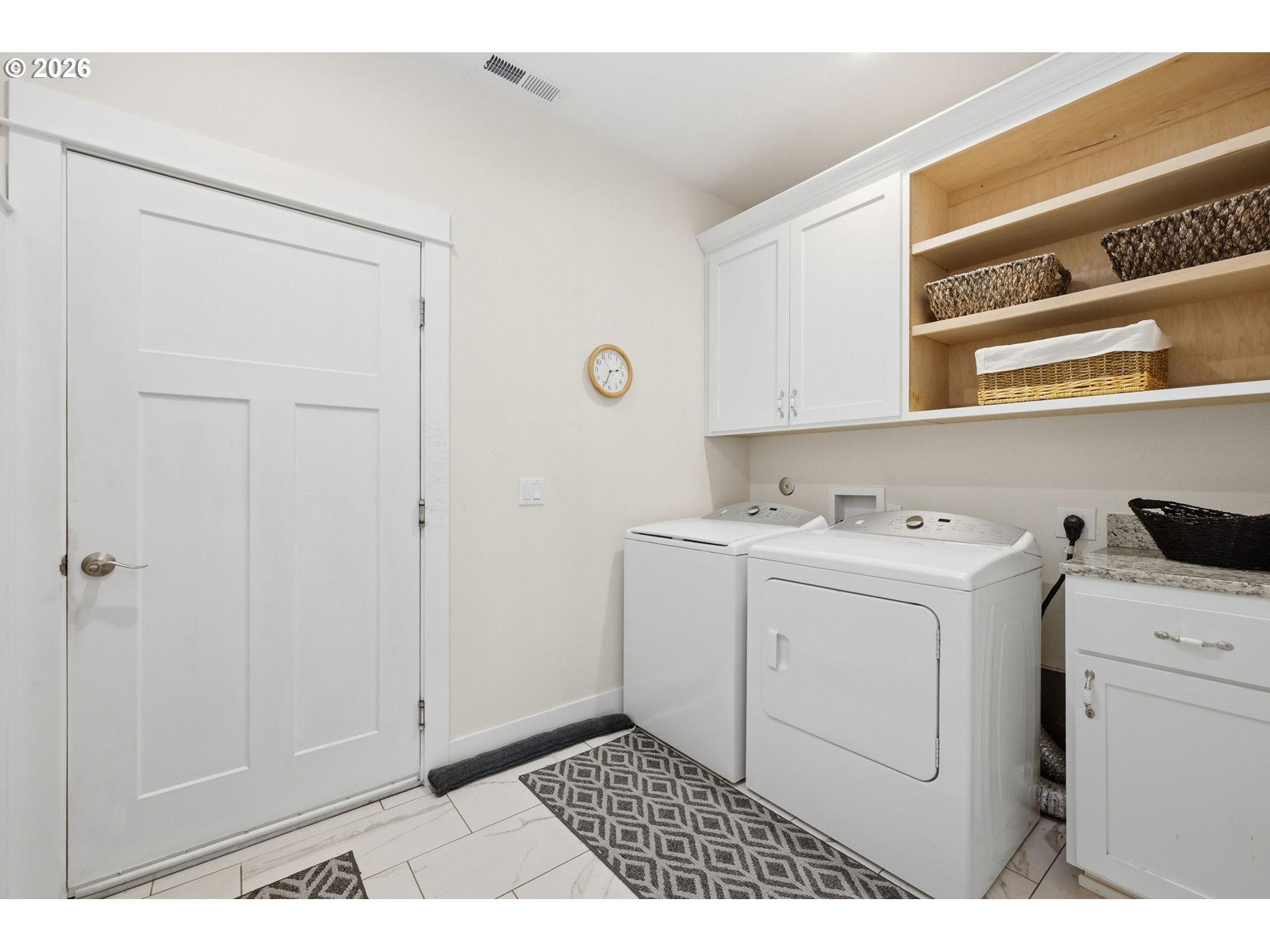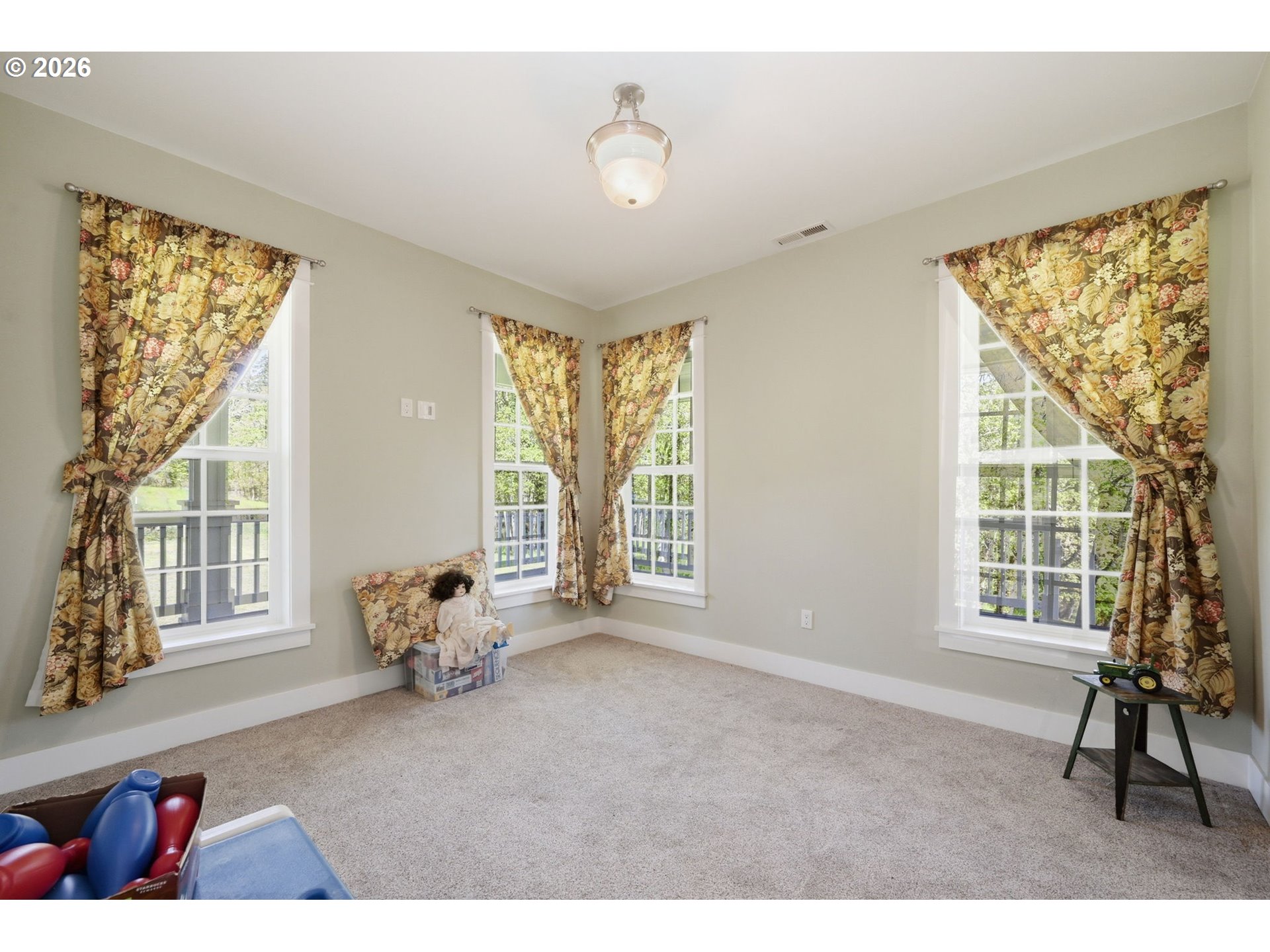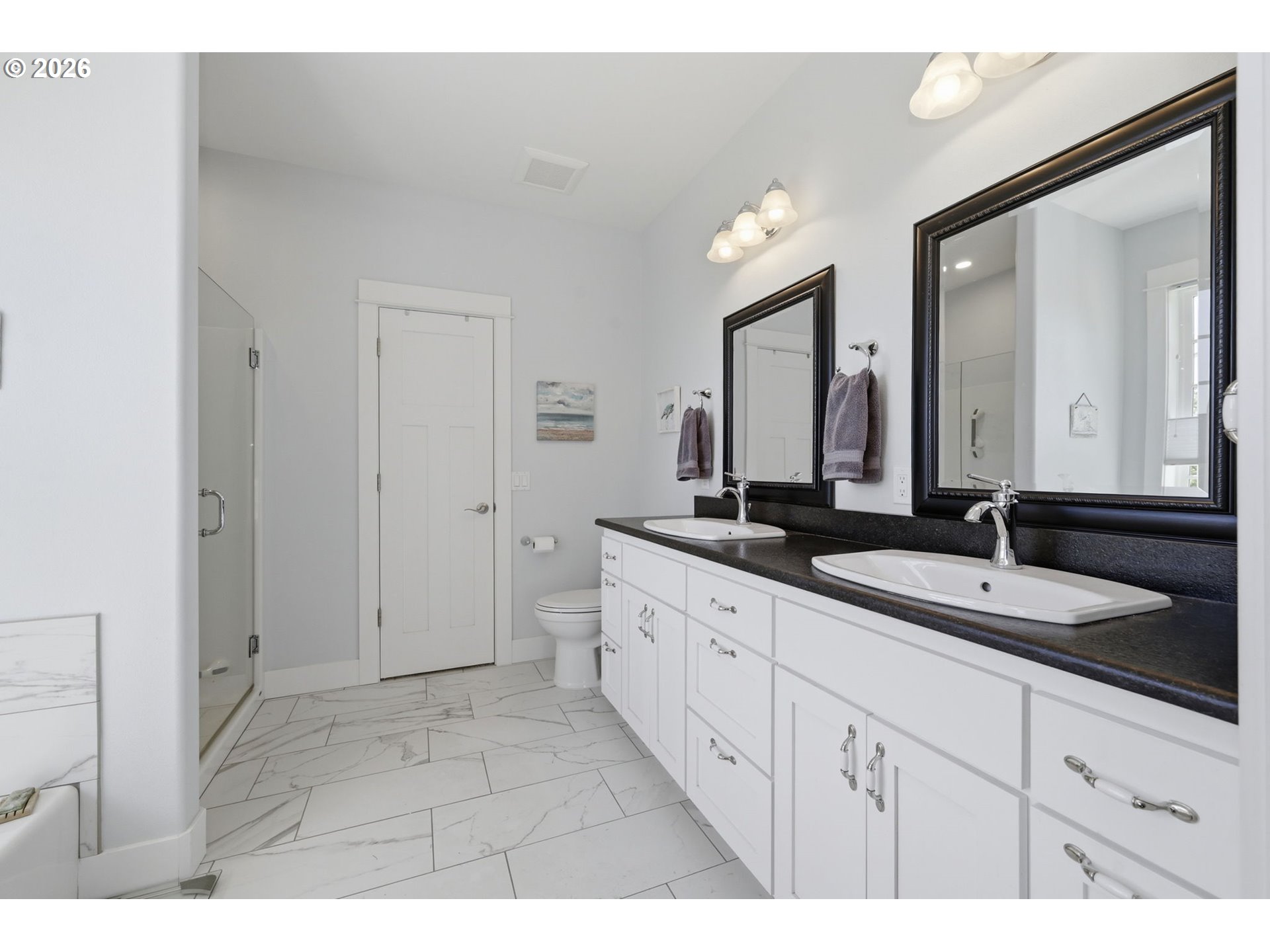 (503) 893-8874Stunning Modern Farmhouse features a classic wrap-around porch and light-filled interior. Mostly main-level living showcases exquisite acacia wood flooring, complemented by detailed molding on abundant windows and doors. The thoughtfully designed floor plan offers excellent separation between the guest rooms and the primary suite. The gourmet kitchen features a leathered granite peninsula, extra deep farm sink, timeless subway tile backsplash, and a convenient pantry with pull-out shelves. Adjacent to the kitchen, the bright breakfast room catches the morning sun and includes soft-close cabinetry, an extended granite counter, hill views, and French doors for easy outdoor access. The generous family room adds drama with a vaulted ceiling, skylights, tall windows, French doors, and woodstove. The Primary suite boasts a separate bathtub and shower, dual sinks, walk-in closet with built-ins, and French doors leading to its own deck with views of the nearby creek and hills. Each of the 2 1/2 bathrooms and the laundry room have porcelain tile flooring and granite counters. Up the wide staircase, enjoy the very private den/office which could easily function as a large 4th bedroom, if a closet was added. The 466 square foot unfinished stand-up attic offers wonderful storage and/or expansion possibilities. Architectural amenities include an Arched Window, Front Shutters, Attached Flower Boxes, Mature Landscaping, Fruit Trees, and a Fenced Garden. Walk-in storage space, approximately 40'x 11' under the home, has electricity, plywood "floor", small shop space, and insulation. There is even more storage space under the side and back of the wrap-around decks. Additional abutting 5.44-acre parcel, Ridgetop Lot 15, RMLS #24641325, is available, for a total of more than 11 acres. Don't miss this opportunity to experience life in a truly beautiful home in one of South Eugene's premier neighborhoods! Contact your broker today to view.