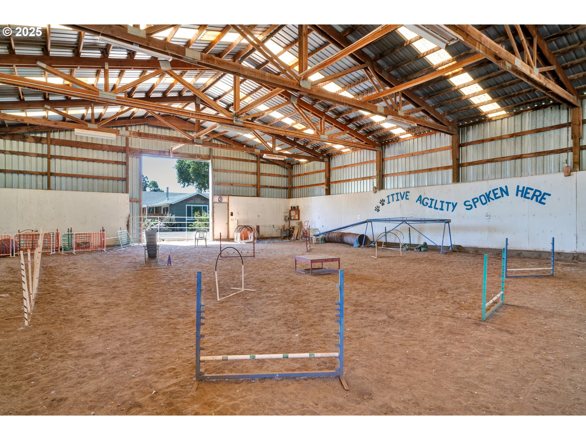 (503) 893-8874Nestled on 10 acres in the midst of serene landscape, discover this exceptional Pleasant Hill-area estate that offers a unique blend of rural tranquility and modern convenience. Located just minutes from Mount Pisgah Arboretum and Howard Buford Recreation Area, it provides endless trails perfect for riding and exploration.Currently a dog agility training center, this estate is ideally set up for horses, cattle, goats, or llamas. The well-cared-for home features a kitchen with quartz countertops and pull-out shelves, offering views of Bear Mountain. The primary suite includes a cozy electric fireplace, a walk-in closet, private bath access, a slider to the backyard, and new carpet. Its en-suite bathroom boasts a programmable heated tile floor and dual controls shower. A unique vent above the primary suite door draws heated air from living room's woodstove for efficient warmth.The inviting living room, with new carpet and a newer woodstove, offers breathtaking Mount Pisgah views. An updated main bathroom features a walk-in shower and granite countertops. The laundry room offers practical storage with pull-out drawers.The home boasts a new roof (2022), new rain guard gutters (2024), and upgraded underfloor insulation (2024).Equestrian amenities are superb: a 50x94 indoor riding arena with a tack room, a 24x24 foaling stall, two turn-out stalls, a 24x36 turn-out/stock area, an outdoor riding area, and a round pen. Additional storage and shop is found in an 84x84 barn, 1/2 of barn is set up as shop area, both barns have 220 electrical power. Plus two 24x36 garages (3bays each).The fertile grounds include fruit trees (peach, plum, cherry, pear) and a seasonal creek. Irrigation rights from the Coast Fork of the Willamette River offer potential for crops.This versatile property previously had an ADU mobile home (hardship) and can accommodate RV parking with existing hook-ups. Reserve a Showing of this Exceptional Pleasant Hill-Area Estate today!
