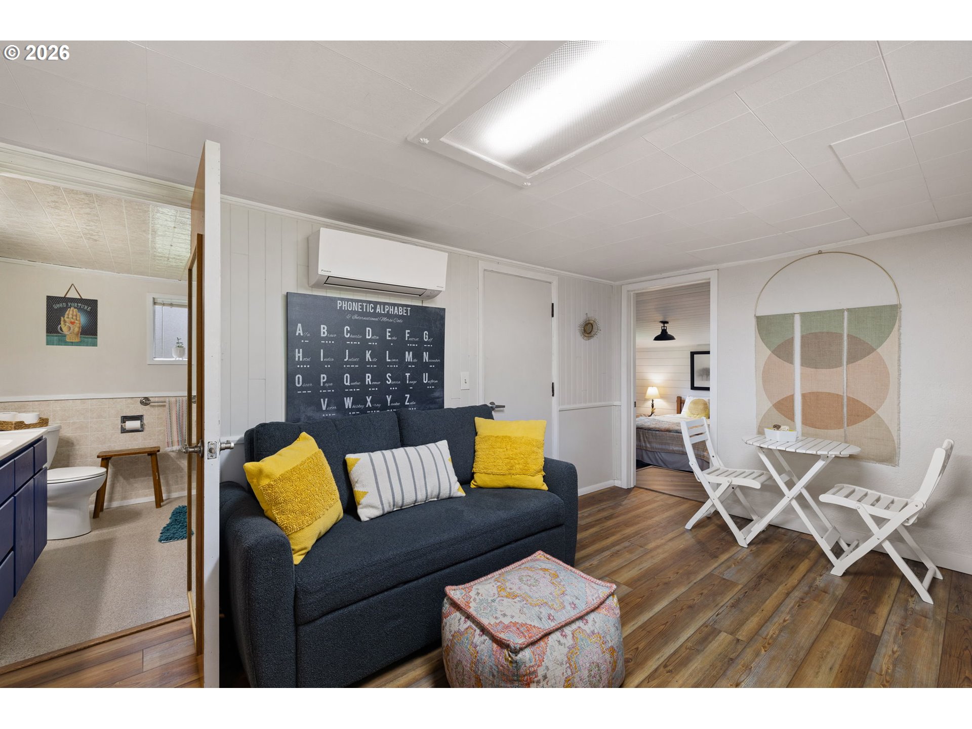 Looking for your own slice of paradise that offers peaceful country living without sacrificing convenience? Nestled between Mt. Pisgah and the Willamette River, this charming, extensively renovated farmhouse sits on 2.5 acres of flat, usable land—perfect for gardening, animals, or a hobby farm.The home has been thoughtfully updated and adapted for dual living. Recent updates include new roof, exterior paint, water heater, ductless heat pump, to name a few. The main residence features a spacious living room with a fireplace and new luxury vinyl plank flooring, a light-filled dining area, and a refreshed kitchen complete with pantry pull-outs and an eating bar. The main-level bedroom includes two closets and laminate flooring, while the upper level offers a cozy retreat with flexible space for a home office, playroom, or lounge.A separate living area was created by closing an opening in the kitchen (easily reversible), offering a fully equipped second unit with its own kitchen featuring quartz countertops, luxury vinyl plank flooring, a private bedroom and bathroom, and a ductless heat pump. This space also includes attic loft access, ideal for storage or potential additional living space. Both units share a laundry area located on the oversized covered front porch. A detached workshop provides abundant space for hobbies, projects, and storage. The property is fully fenced and gated, offering privacy and endless possibilities for outdoor enjoyment. Great well with UV filtration, septic pumped in 2025, and set up for portable generator. Ideally located just minutes from south Eugene and Pleasant Hill, this property combines tranquility with accessibility—an opportunity to embrace the lifestyle you’ve been dreaming of.