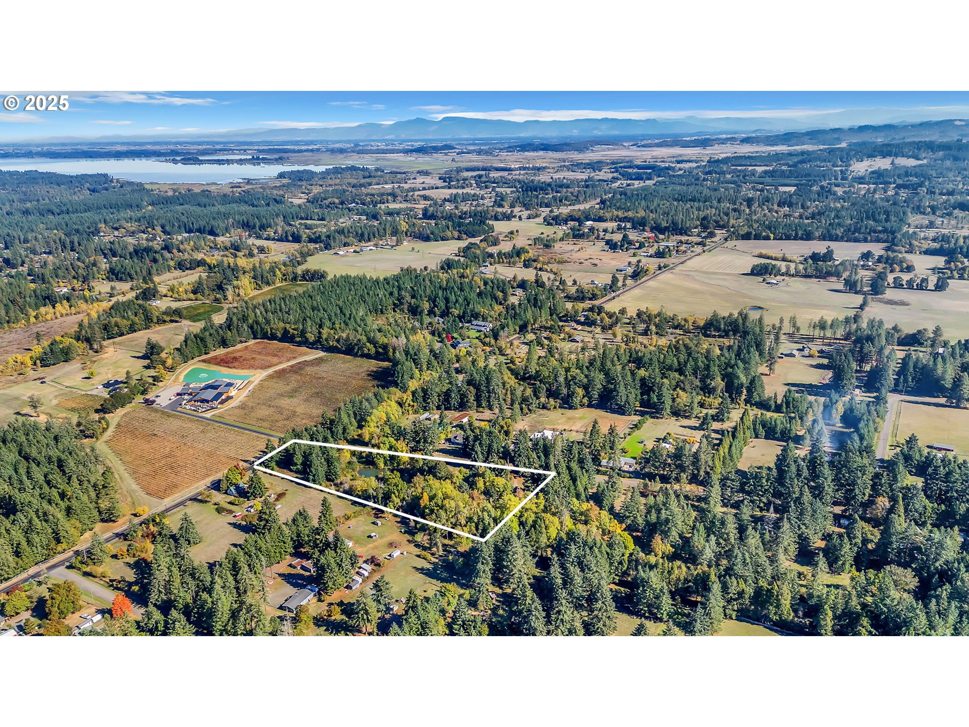 Excellent shop, year round pond all on mostly level acreage. Paved driveway leads to your dream home site in this idyllic setting. Spring fed stream, mature trees and whisper quiet. Relax on the dock or from the gazebo. Tall 3 bay shop with concrete floor, attic storage and hydraulic hoist. Fix up and use the unpermitted apartment. Paved areas right up to an excellent, level homesite. Just across the street is the beautiful and popular Apona Vineyard and Tasting Room. A once in a lifetime location!