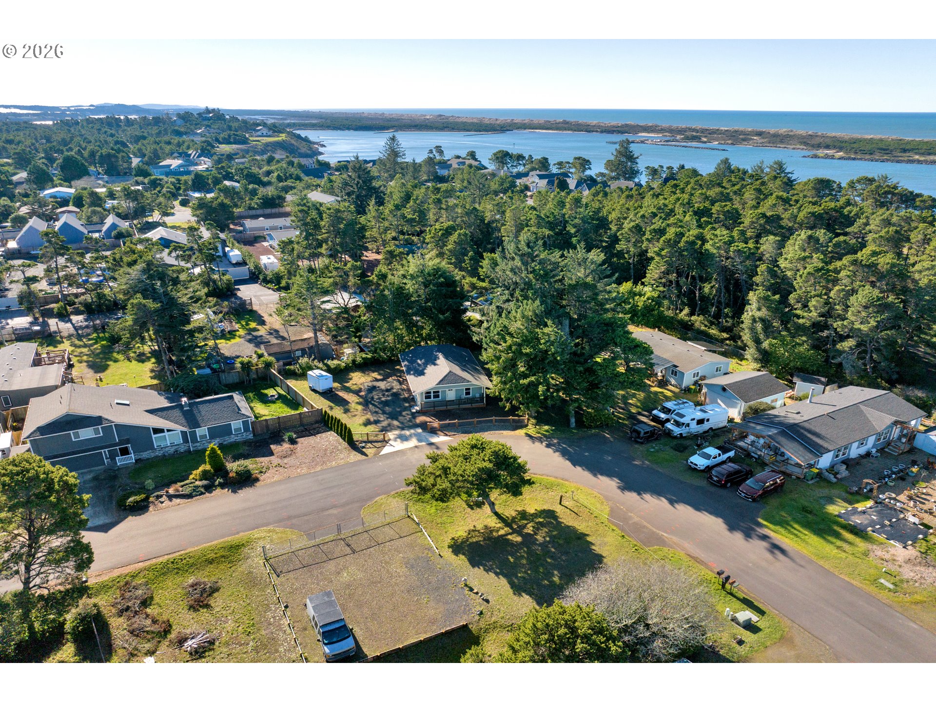 Listen to the ocean from this modern coastal cottage tucked into a peaceful corner of Heceta Beach. Built in 2021, this thoughtfully designed 2-bedroom home offers an inviting open-concept layout with vaulted ceilings, durable laminate flooring throughout, and a high-efficiency mini-split for year-round comfort.The kitchen and bath shine with gorgeous new granite countertops paired with a glass tile backsplash, adding a clean, contemporary touch. The primary bedroom features a double closet, while the covered front porch is perfect for morning coffee or evening relaxation.Outdoors, enjoy a fully fenced yard with a 16-foot driveway gate and ample space for RV parking or the future addition of a garage. Take advantage of the prime coastal location—walk to Harbor Vista County Park and North Jetty Beach for sunset views and beach time. Furniture is negotiable, and the property is located outside the tsunami zone.A newer home, coastal lifestyle, and flexible outdoor space—this one is ready to enjoy.