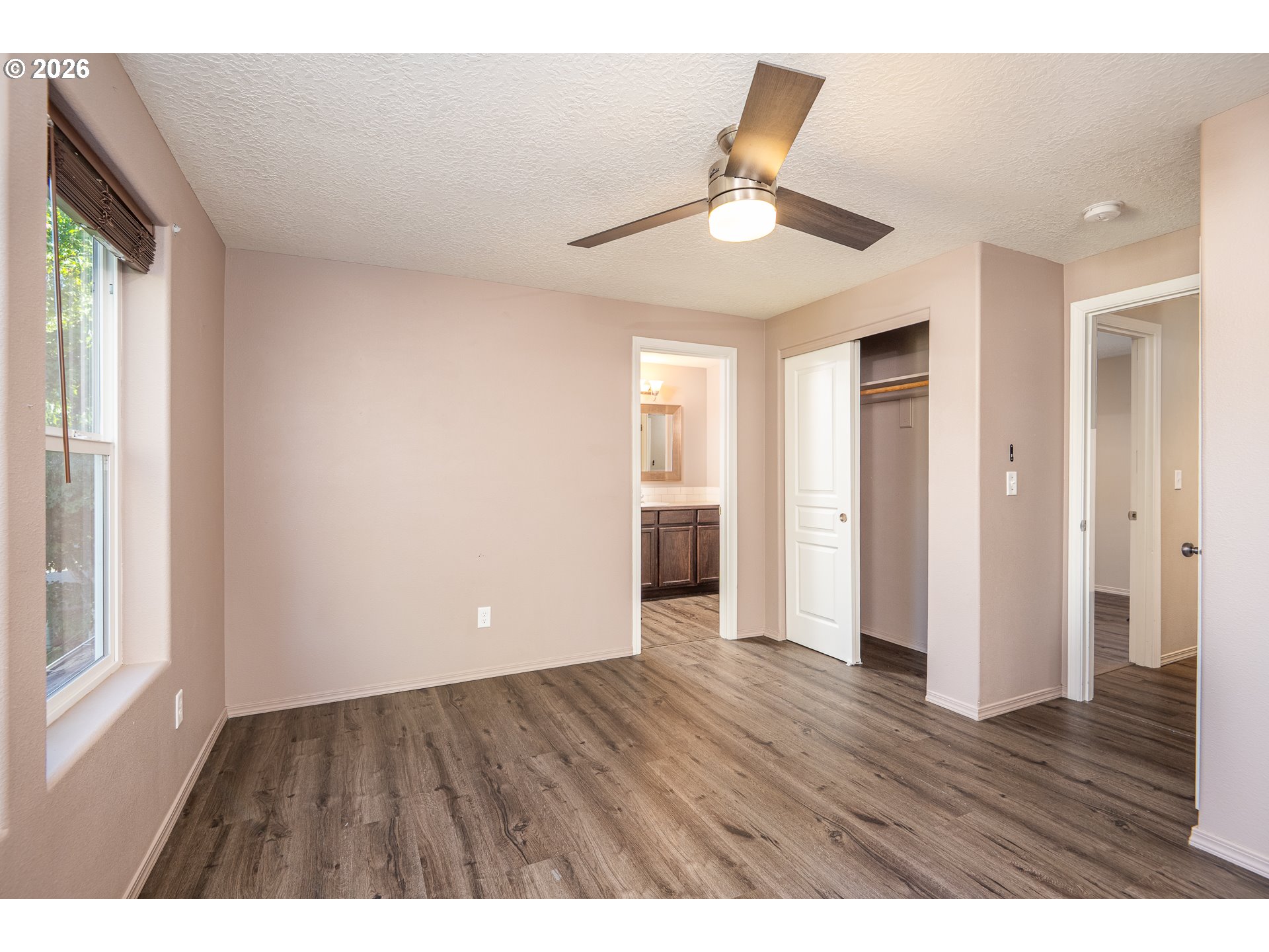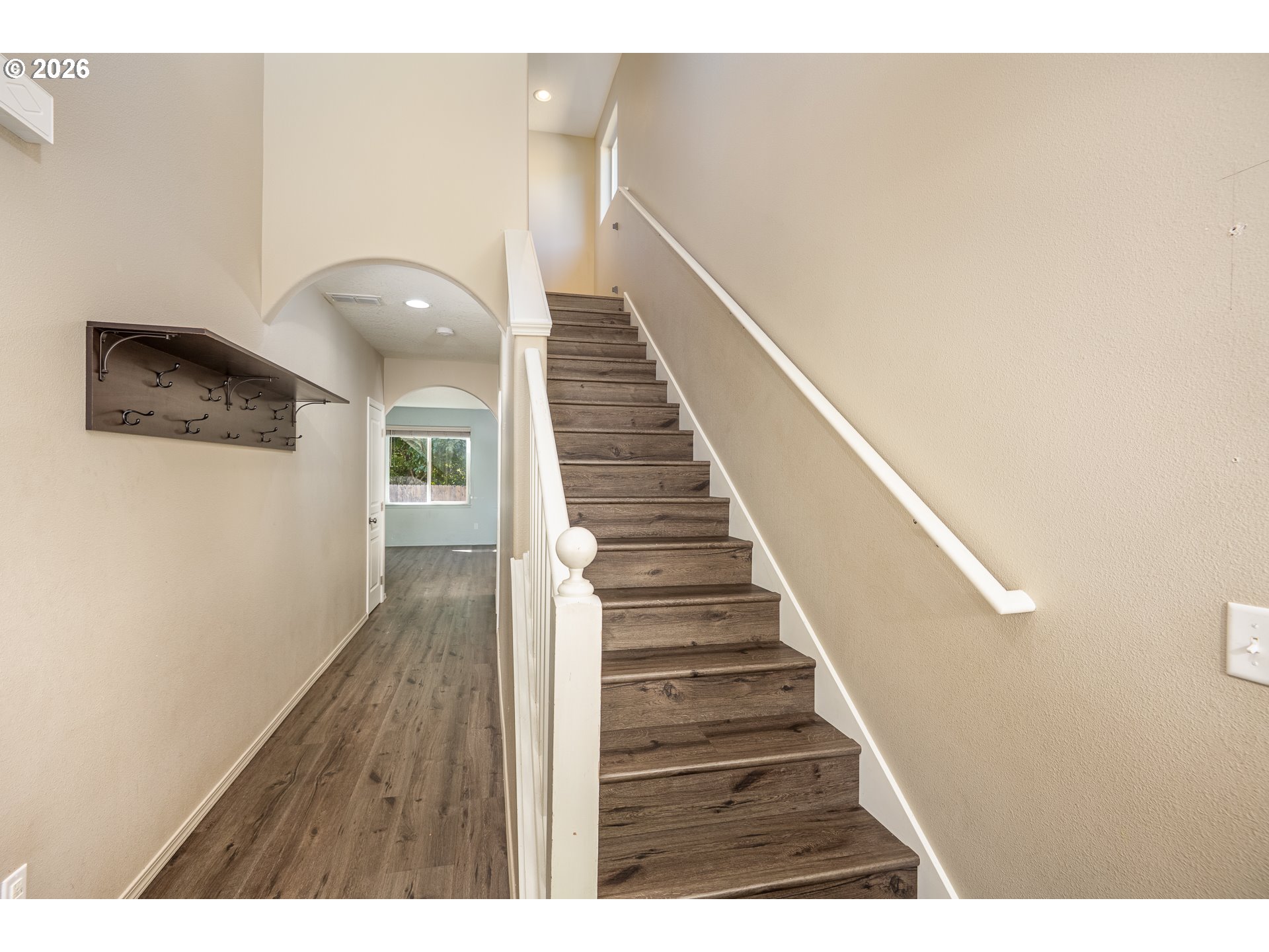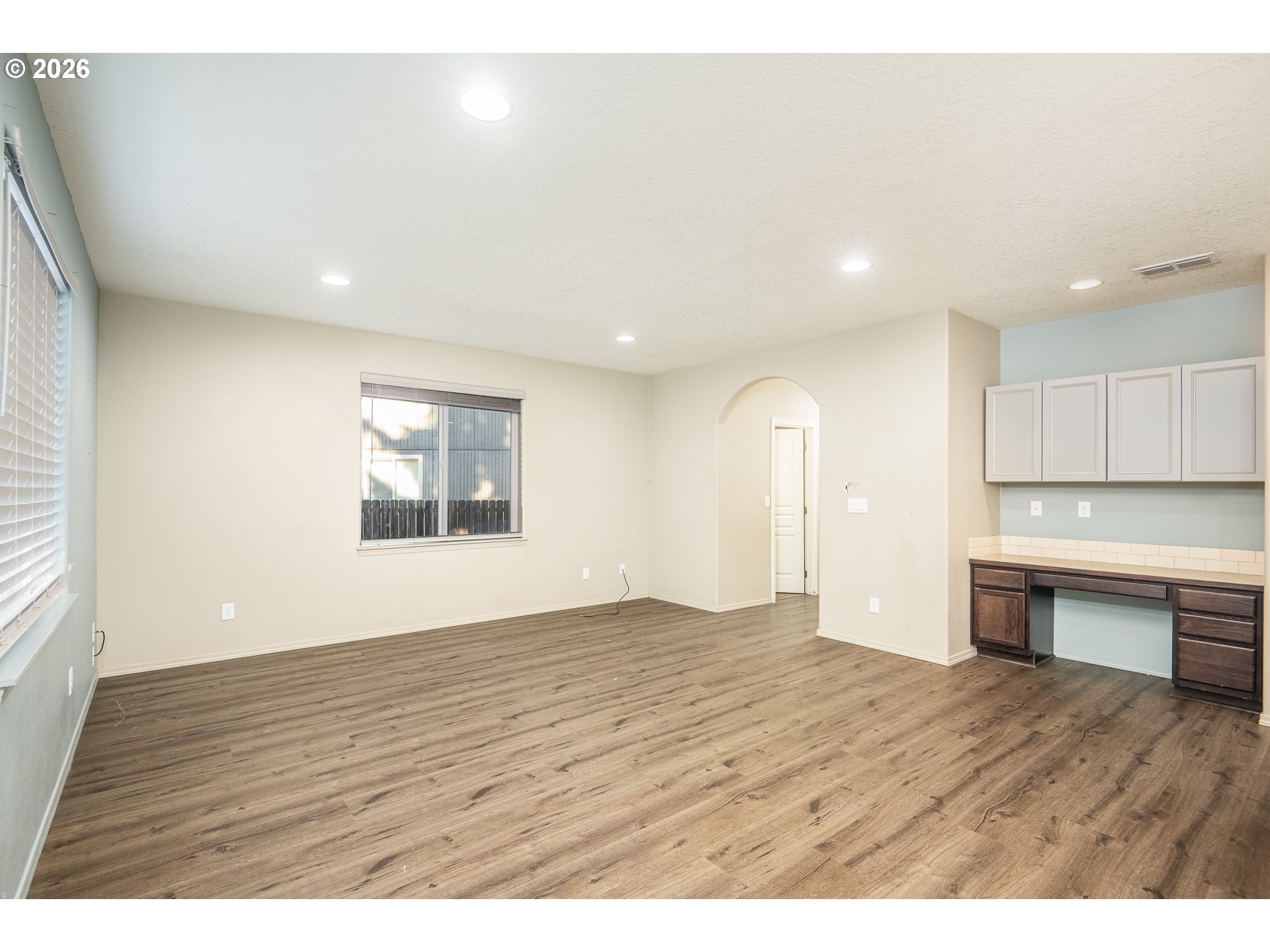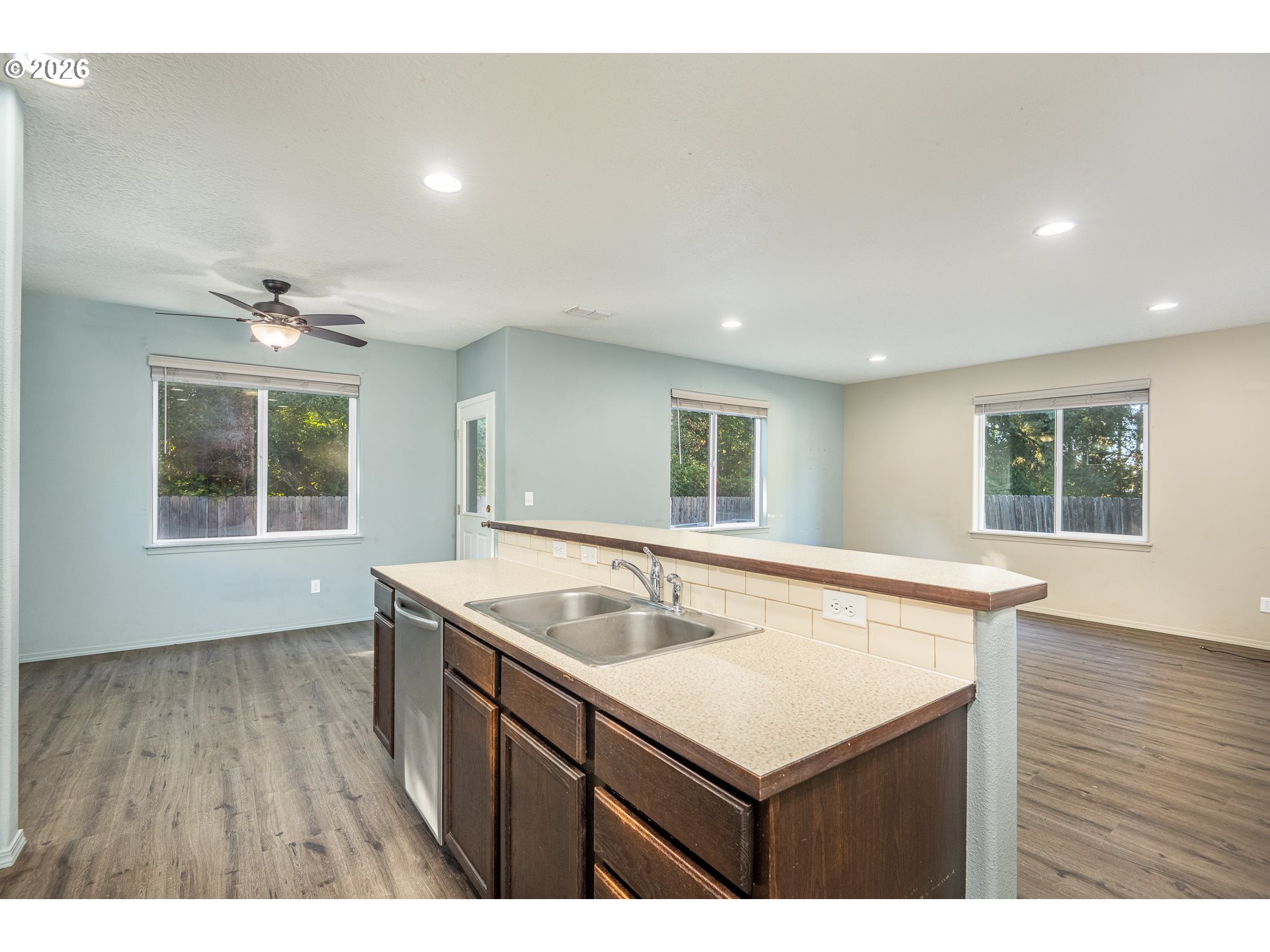 Welcome to this well-maintained two-story home featuring a spacious great-room layout. The open kitchen includes an island with an eating bar, stainless steel appliances, and a dining area with a ceiling fan and access to the back patio—perfect for entertaining. Laminate flooring flows throughoutthe main level, which also includes a convenient half bath and charming arched doorway. Upstairs, you’ll find all bedrooms, including the primary suite with a walk-in closet, dual vanity, and ceiling fan. A Jack-and-Jill bathroom connects the additional bedrooms. Enjoy the fully fenced backyard that backs to protected wetlands for added privacy.