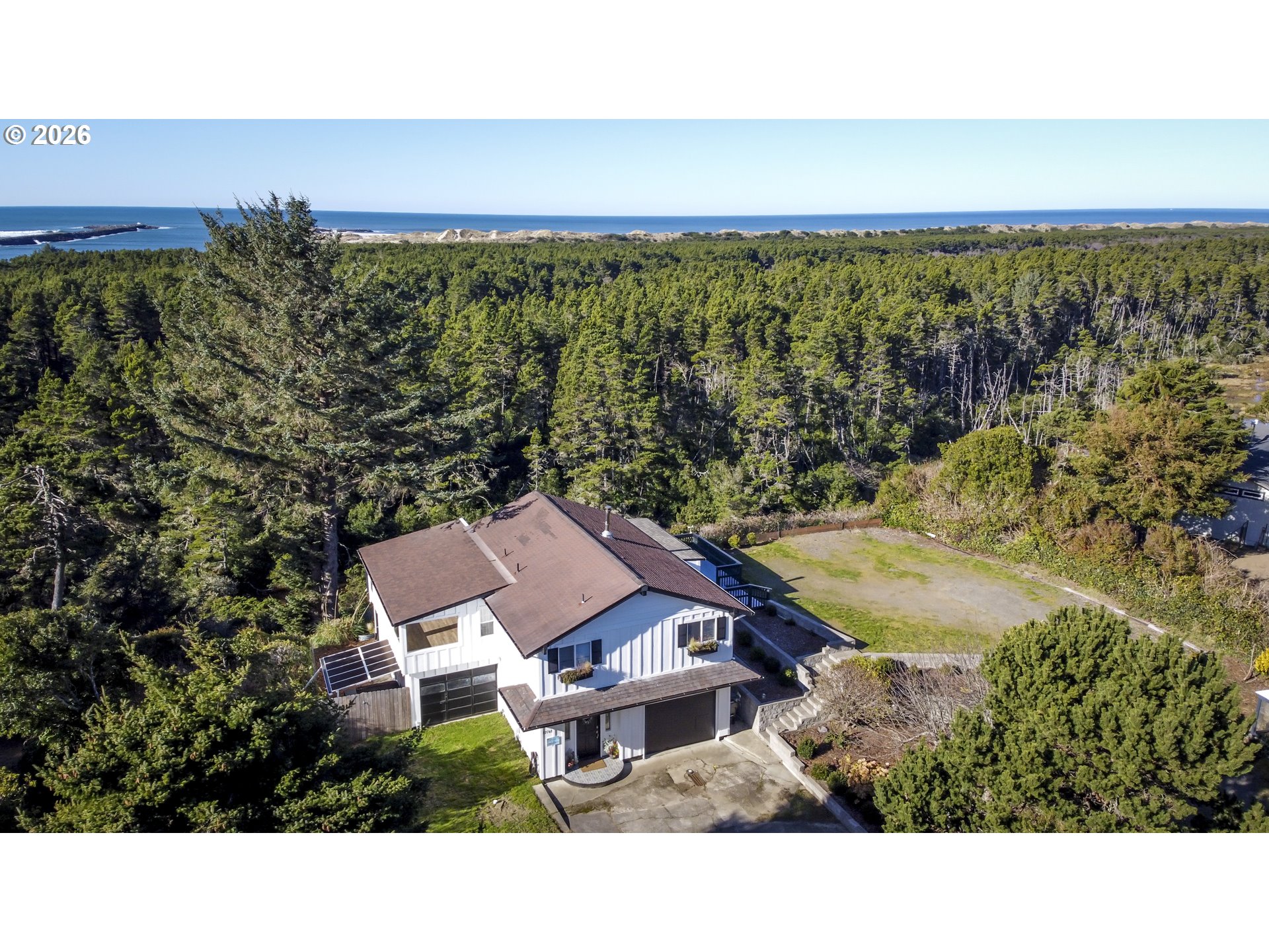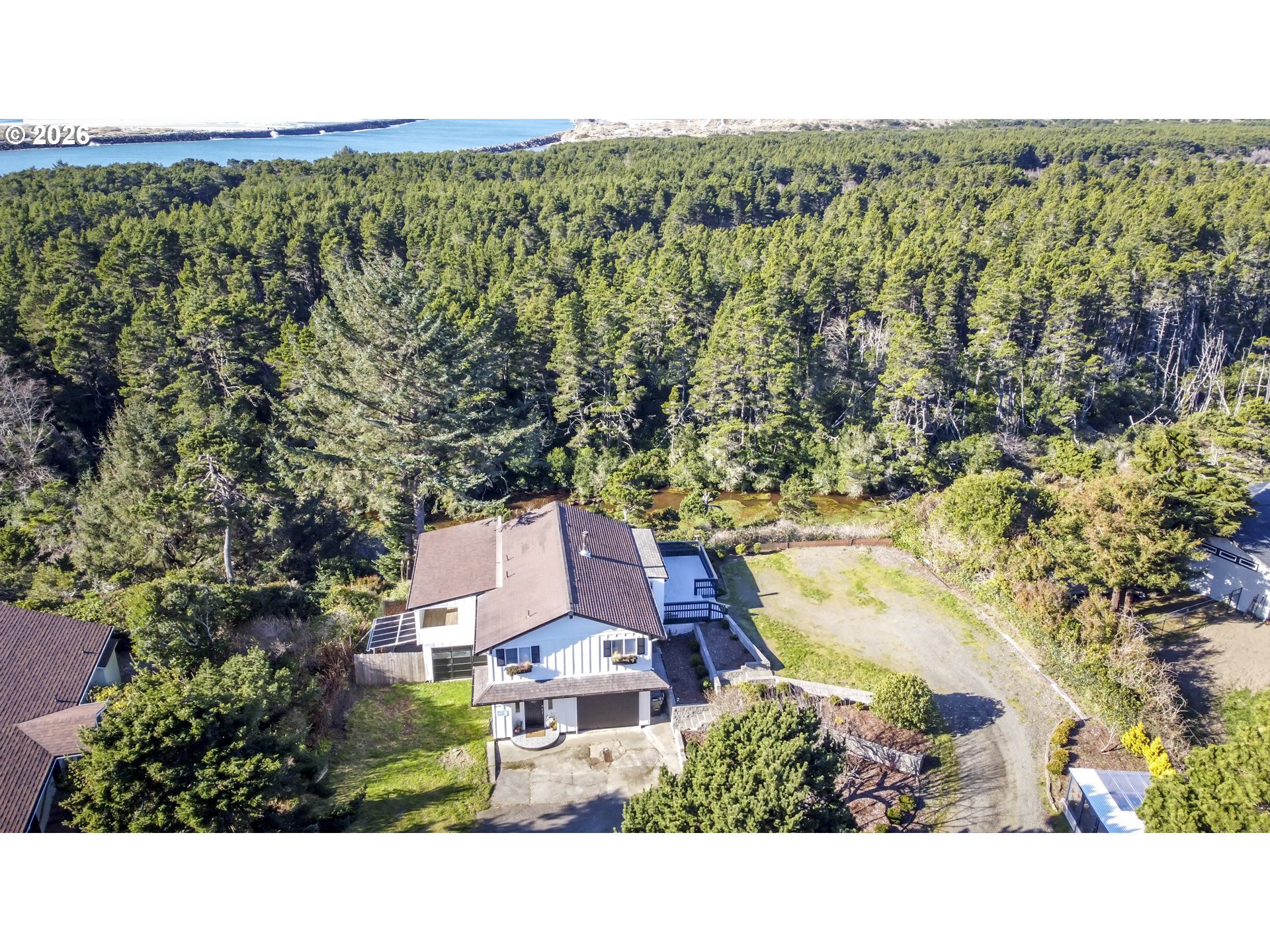 (503) 893-8874Enjoy the best of coastal living in this beautifully renovated home offering breathtaking views of the ocean, jetty, river, and a lake. Though two stories, the home features main-level living with ground-level entry, so no stairs are required to access the upper floor. The lower level also has its own private exterior entrance, creating ideal separation for guests or extended living.The upper level welcomes you through a functional mudroom into an open-concept living, dining, and kitchen area with warm knotty pine ceilings, a brand-new wood-burning stove, and a stylish kitchen featuring rich wood countertops and open shelving. A light-filled sunroom perfectly frames the sweeping water views. The spacious primary suite and bath have been thoughtfully updated with modern finishes.Downstairs, the fully remodeled lower level includes a living area, full bedroom and bath, and sliding glass door access to a private outdoor space with hot tub and incredible river and ocean views. This level is currently used as a successful short-term rental, offering excellent flexibility for a variety of living arrangements.A rare opportunity to own a move-in-ready coastal home with scenery in every direction.