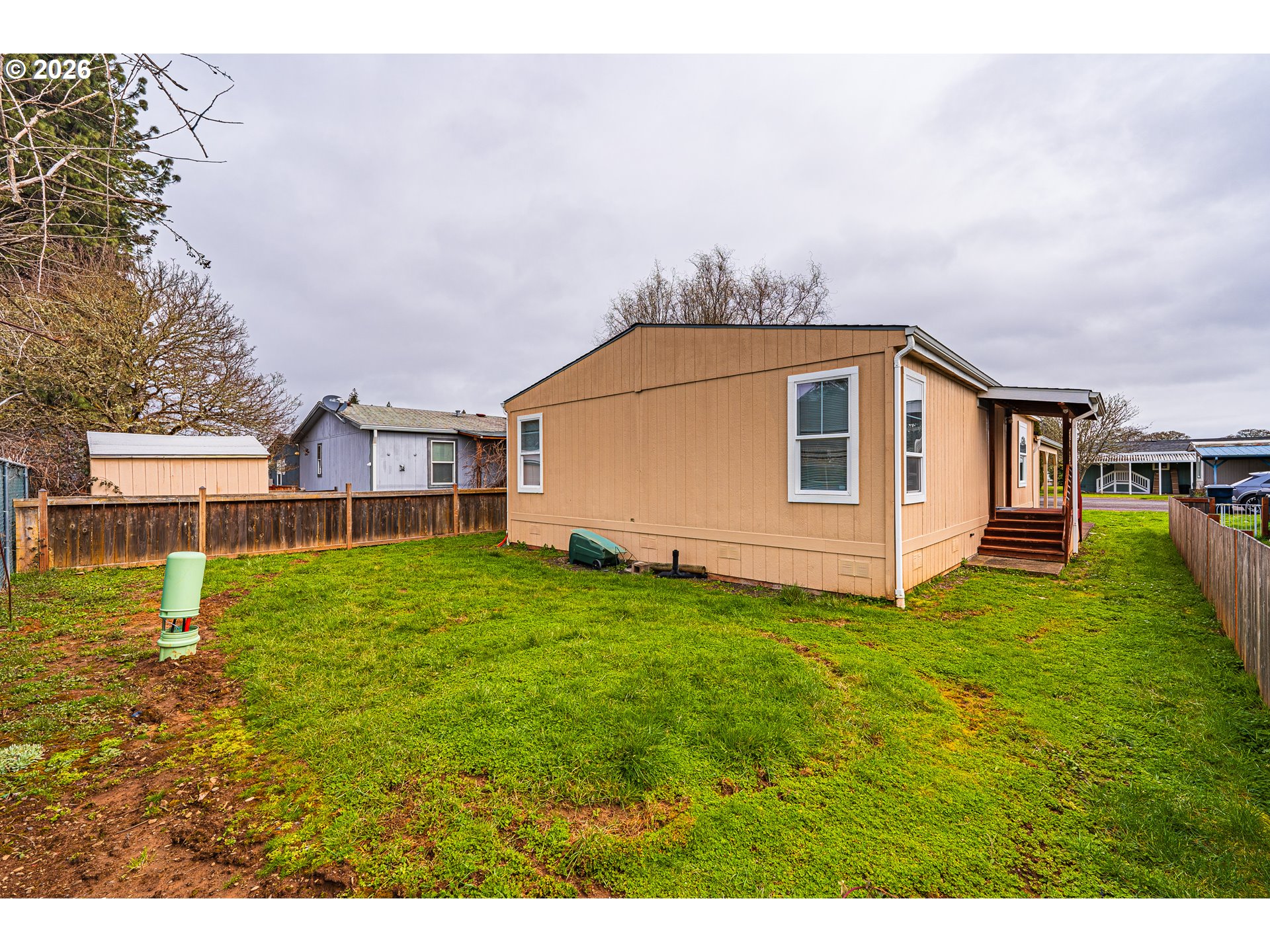This MFH in Shalimar Park has 2 Bedrooms and an office. Wall to wall carpeting, and a vaulted ceiling in the living room. Attached carport and lots of storage. Newly installed roof and some additional maintenance updates make this home move in ready! Spacious yard. Low Space rent in this all ages park!