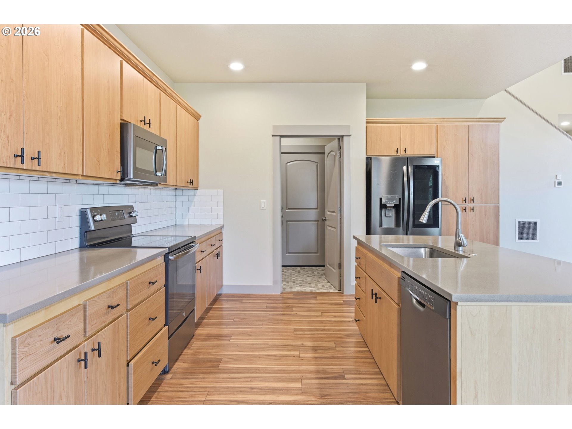 (503) 893-8874This beautiful and well-cared for home awaits you on a quiet, dead-end road near the edge of town. Step into the living room with high, vaulted ceilings, laminate flooring and large windows. The kitchen has a large island with quartz countertops, complimented by subway tile backsplash and easy close cabinets and drawers. Walk upstairs and find a spacious master bedroom with walk-in closet and shower. Upstairs you will also find two additional bedrooms, a bathroom and a loft area, perfect for a small office space. Outside is a beautiful flat yard, surrounded by terraced flower beds, ready for your imagination and gardening creations! RV or boat parking is located on the south side of the two car, finished garage. This home is in a quiet neighborhood near the edge of town, yet still close enough to life's necessities. Well-built, well-maintained, and ready for you to put down roots! Come see this amazing home today!