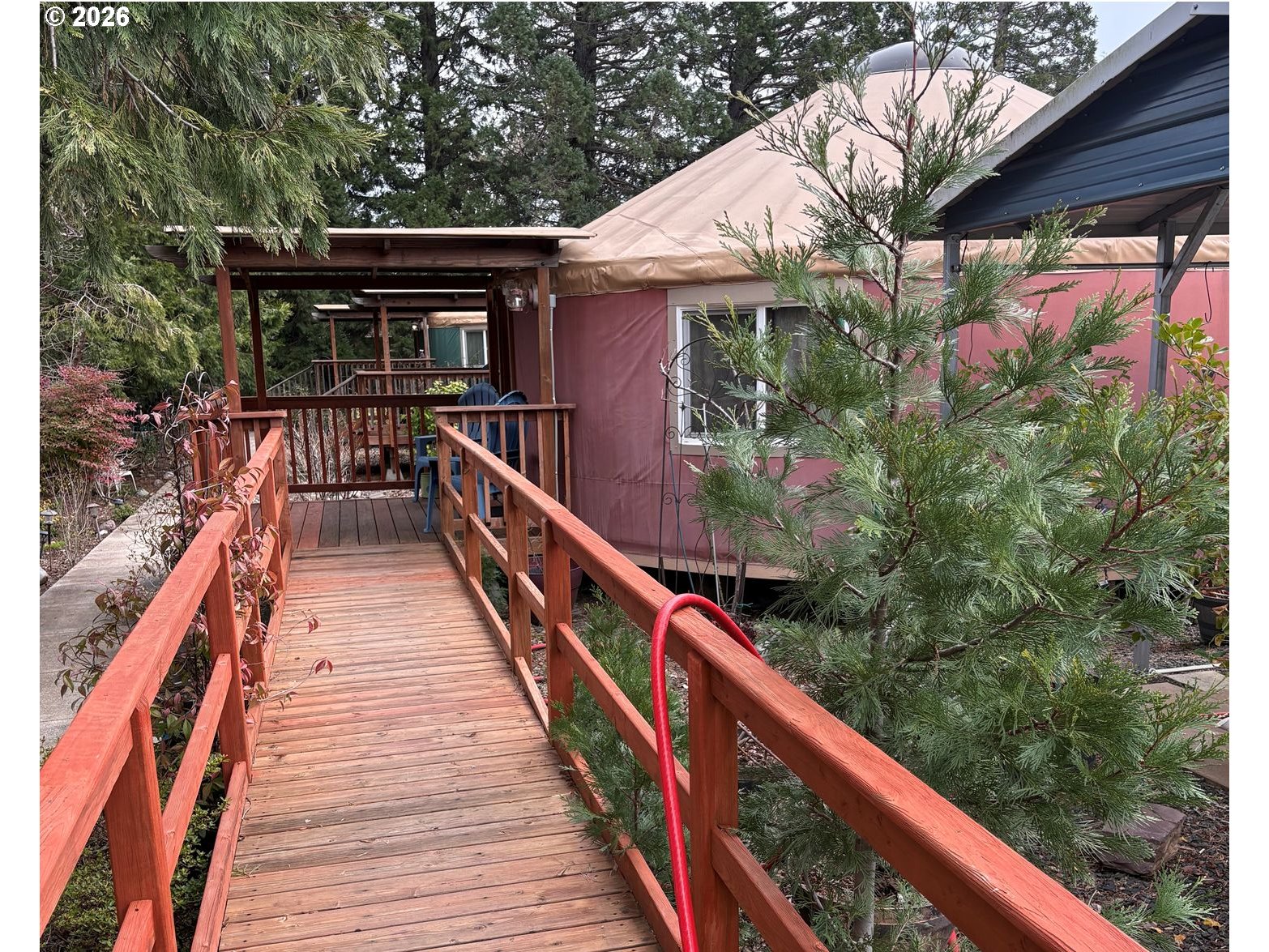 SOLD AS IS". Hospitality/Yurtel,, one stick built office housing the office, community kitchen and laundry, 3 stand alone yurts, each decorated and furnished with a themed identity. The only hospitality business in Veneta. Many repeat customers from around the world seeking a quiet environment with a warm and welcoming stay close to Eugene and the Oregon Coast. Financials available upon request. Able to keep Assumed Business Name, Internet and phone serviced by Spectrum and T-Mobile. Permanent owner residence if approved by the City of Veneta. 400 amp electrical services all structures. City water and sewer. One RV hookup.Repeat and potential customers include ODOT, Air B&B, Verba, and U of O sports, Veneta Sports Events Center. Call listing agent for buyers broker commision information. Furnishings included.