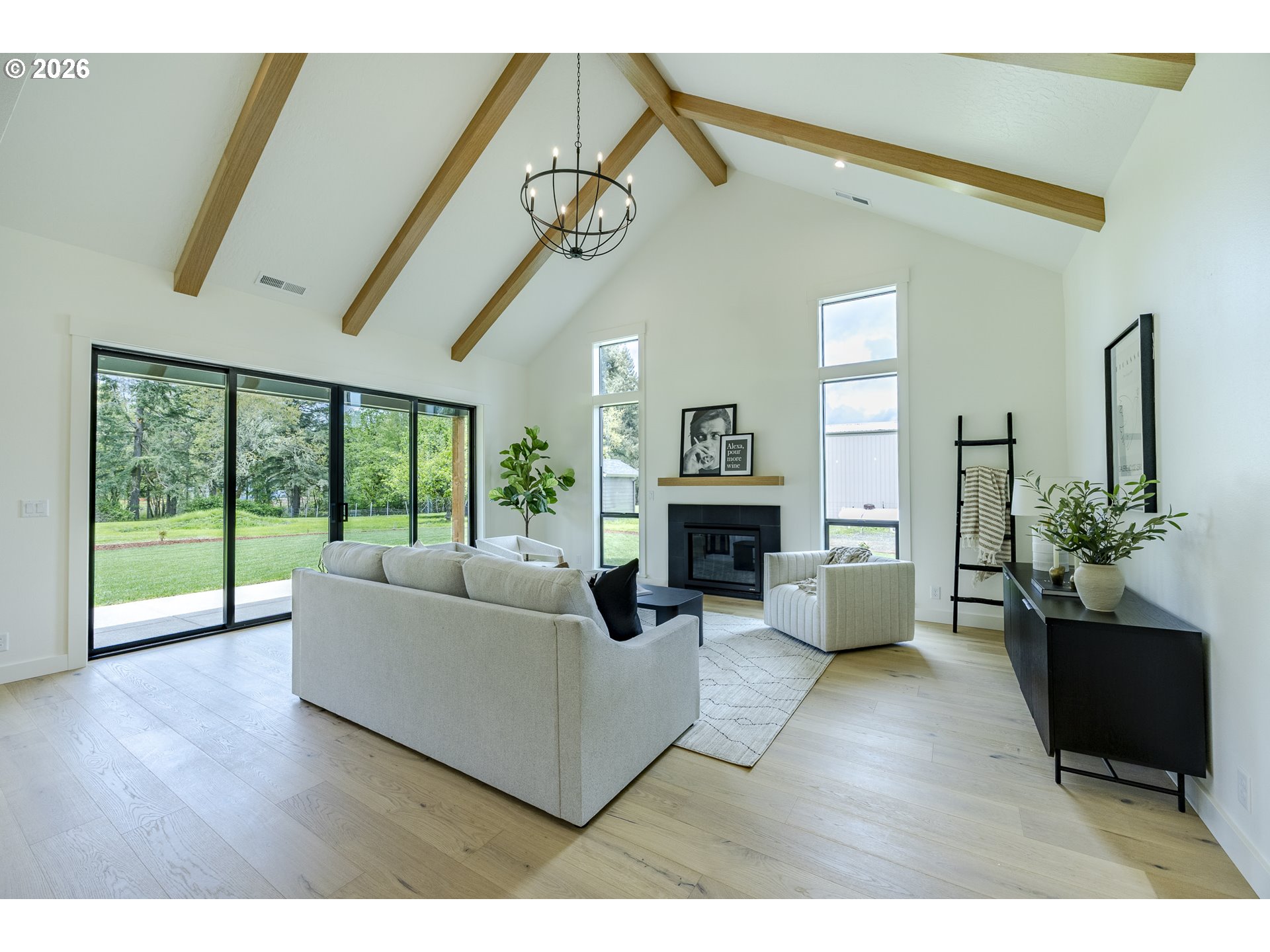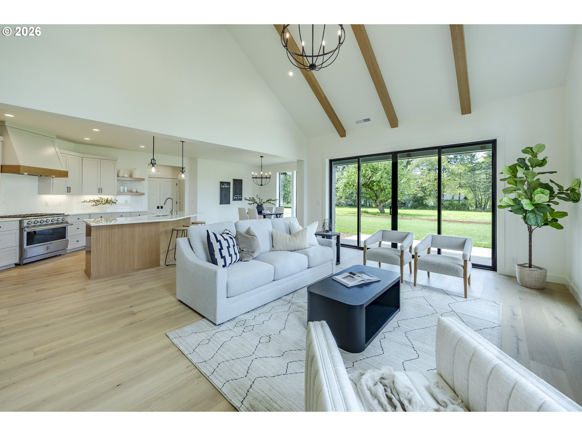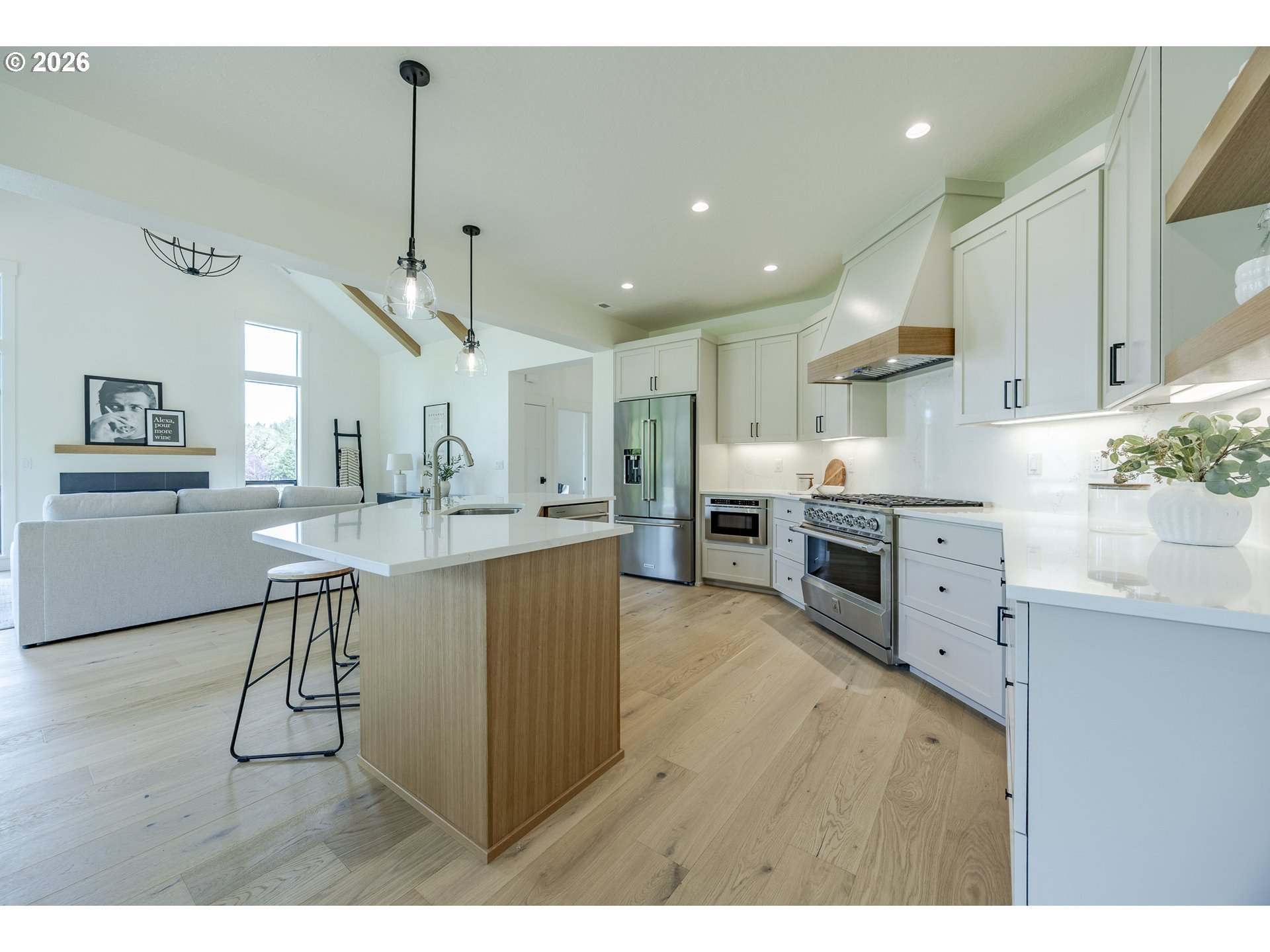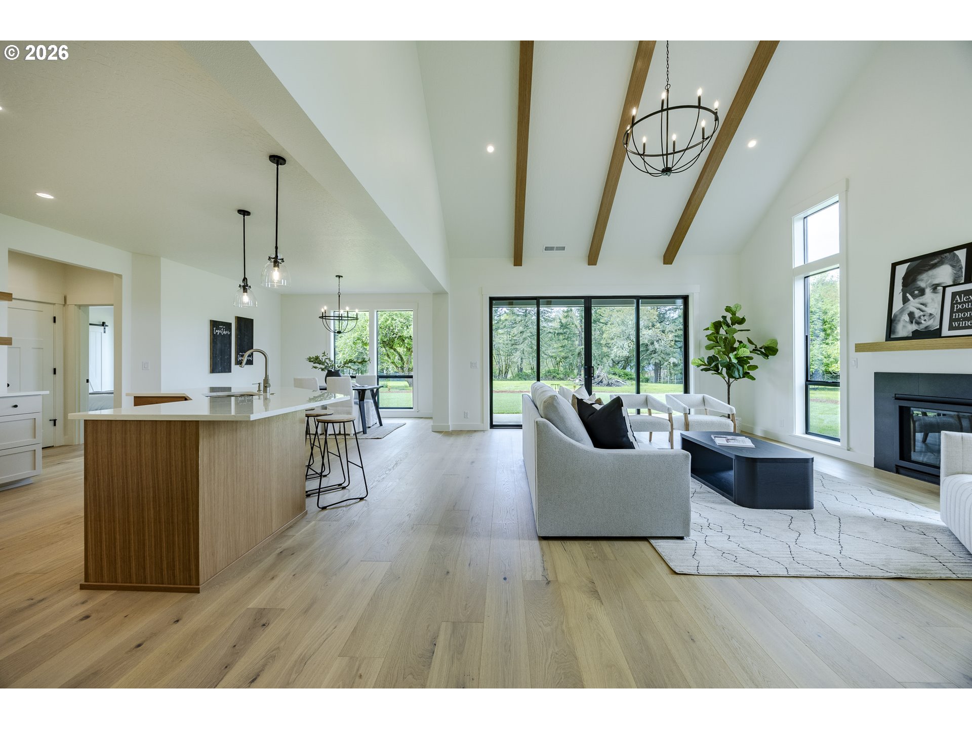 (503) 893-8874Tucked at the end of a quiet dead-end street in Veneta, this 2026 new construction by builder Bruce Weichert delivers the kind of quality you can feel the moment you walk through the door. Step inside to a striking entry. Just off the foyer, a thoughtfully placed office offers true separation—ideal for focused work or a little peace and quiet. Beyond that, the home opens up beautifully into a light-filled living and dining space that truly steals the show. Vaulted, beamed ceilings and floor-to-ceiling windows create a sense of volume and warmth, while the glass slider invites effortless indoor-outdoor living for summer evenings and weekend gatherings. The kitchen is designed to impress and perform. An oversized quartz island anchors the space, perfect for dining or entertaining, complemented by top-of-the-line KitchenAid appliances and a chef-worthy Hestan gas range. A dedicated dining area offers the perfect setting for more formal occasions. Privately positioned in its own wing at the back of the house, the primary suite is a true retreat with vaulted ceilings, a generous walk-in closet, a spa-like ensuite complete with soaking tub and walk in shower. Two additional main-level bedrooms, a full bathroom, a well-appointed laundry room with sink, storage, exterior access—and yes, a coveted Speed Queen set included—round out the main floor.Upstairs, a flexible bonus room, full bath, and additional bedroom create space for guests and hobbies.Every detail has been considered: tankless on-demand hot water, generator readiness, an extra-deep garage with storage, and a well pump house equipped with heat and power. Even future plans are accounted for, with septic and water lines already extended for a potential shop. This dreamy new build sits on a flat, usable 2-acre parcel—offering space, privacy, and possibility. This isn’t just a home; it’s your next chapter.