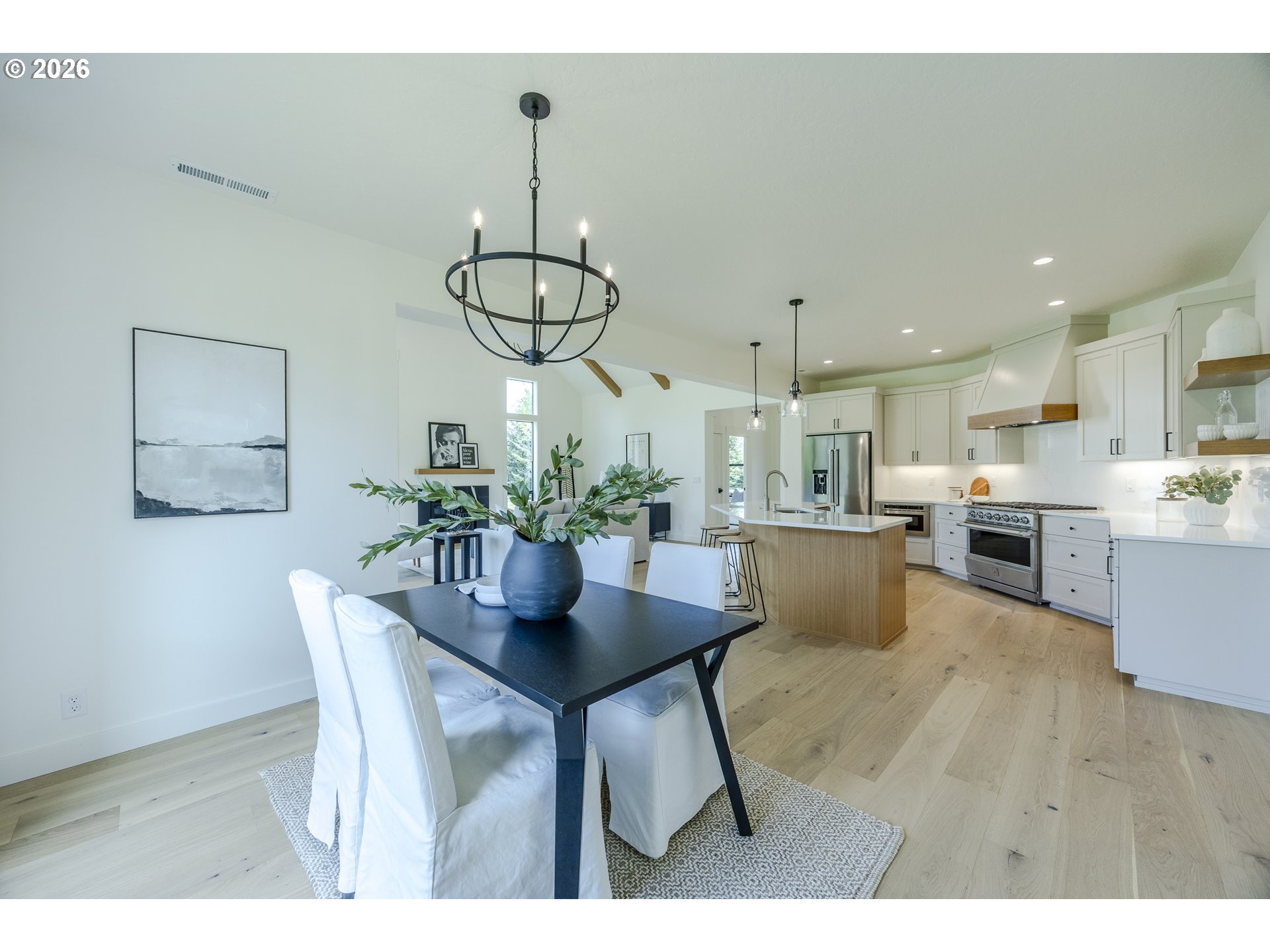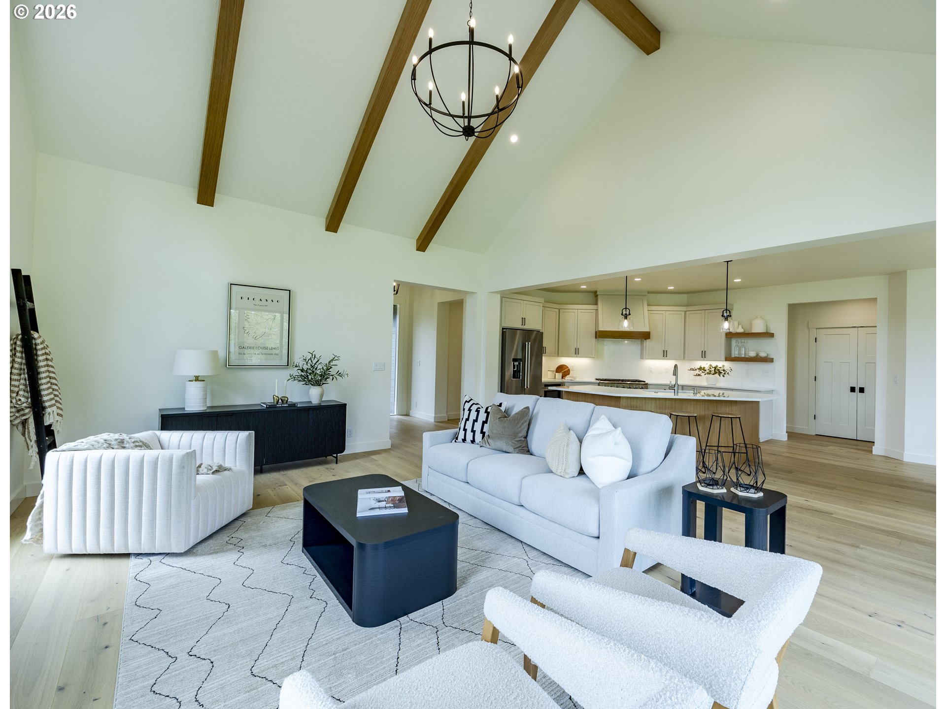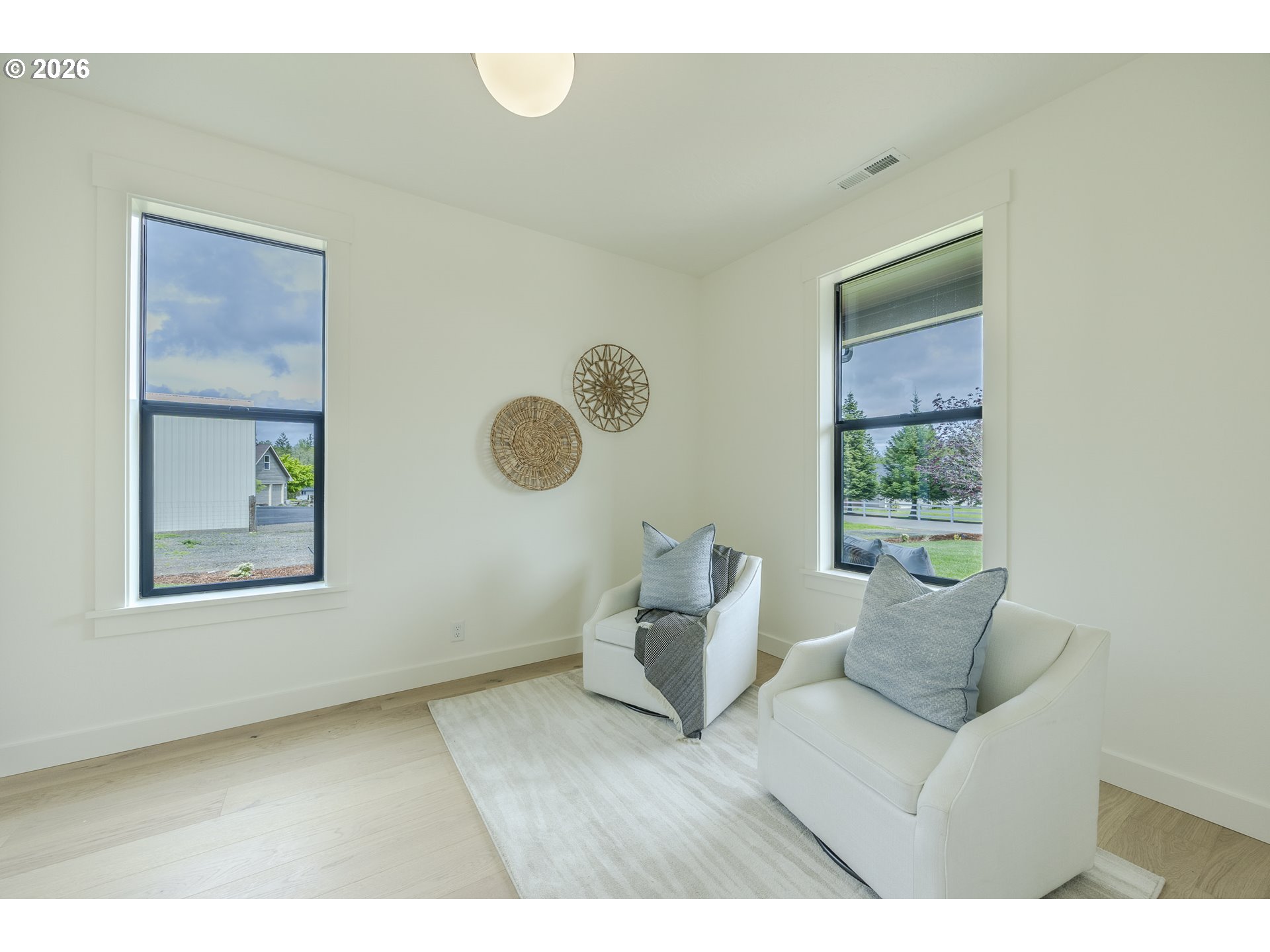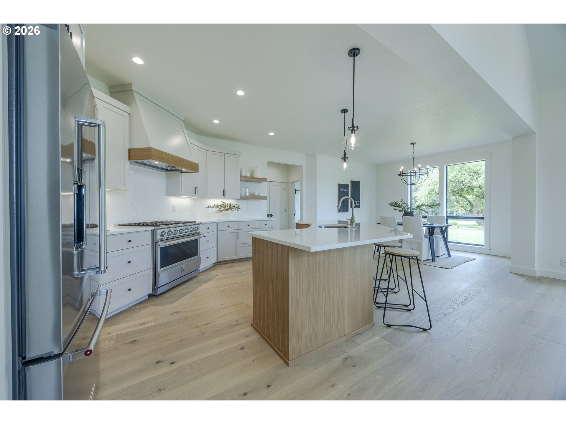 (503) 893-8874Tucked at the end of a quiet dead-end street in Veneta, this 2026 new construction by builder Bruce Weichert delivers the kind of quality you can feel the moment you walk through the door. Step inside to a striking entry. Just off the foyer, a thoughtfully placed office offers true separation—ideal for focused work or a little peace and quiet. Beyond that, the home opens up beautifully into a light-filled living and dining space that truly steals the show. Vaulted, beamed ceilings and floor-to-ceiling windows create a sense of volume and warmth, while the glass slider invites effortless indoor-outdoor living for summer evenings and weekend gatherings. The kitchen is designed to impress and perform. An oversized quartz island anchors the space, perfect for dining or entertaining, complemented by top-of-the-line KitchenAid appliances and a chef-worthy Hestan gas range. A dedicated dining area offers the perfect setting for more formal occasions. Privately positioned in its own wing at the back of the house, the primary suite is a true retreat with vaulted ceilings, a generous walk-in closet, a spa-like ensuite complete with soaking tub and walk in shower. Two additional main-level bedrooms, a full bathroom, a well-appointed laundry room with sink, storage, exterior access—and yes, a coveted Speed Queen set included—round out the main floor.Upstairs, a flexible bonus room, full bath, and additional bedroom create space for guests and hobbies.Every detail has been considered: tankless on-demand hot water, generator readiness, an extra-deep garage with storage, and a well pump house equipped with heat and power. Even future plans are accounted for, with septic and water lines already extended for a potential shop. This dreamy new build sits on a flat, usable 2-acre parcel—offering space, privacy, and possibility. This isn’t just a home; it’s your next chapter.