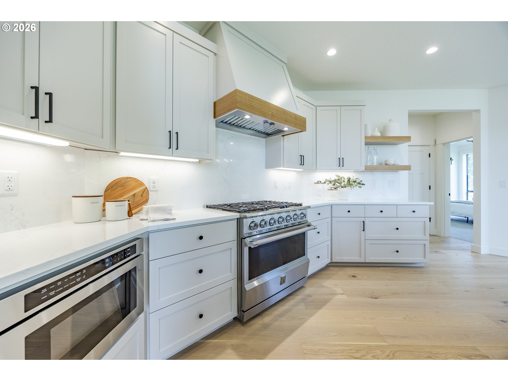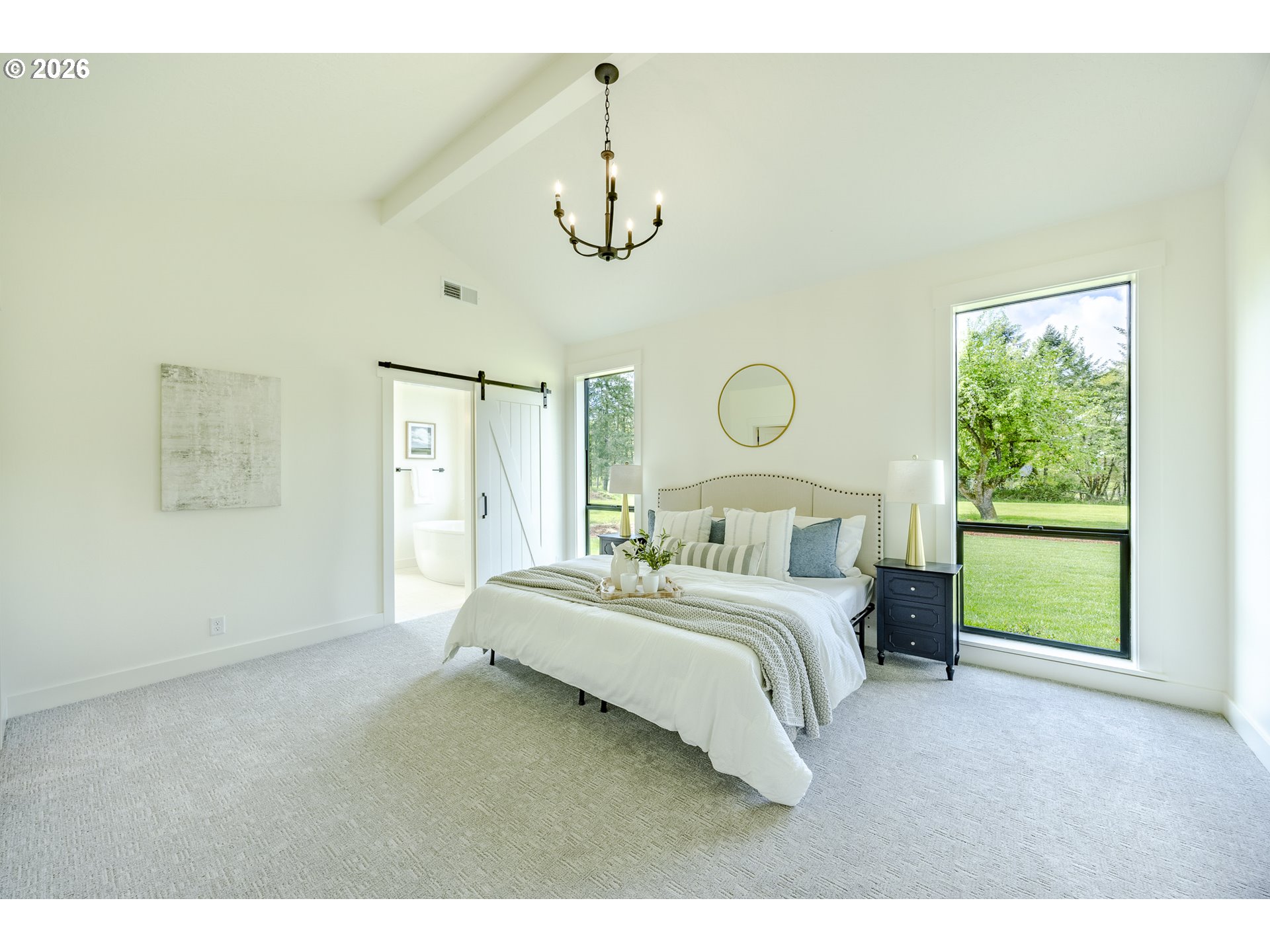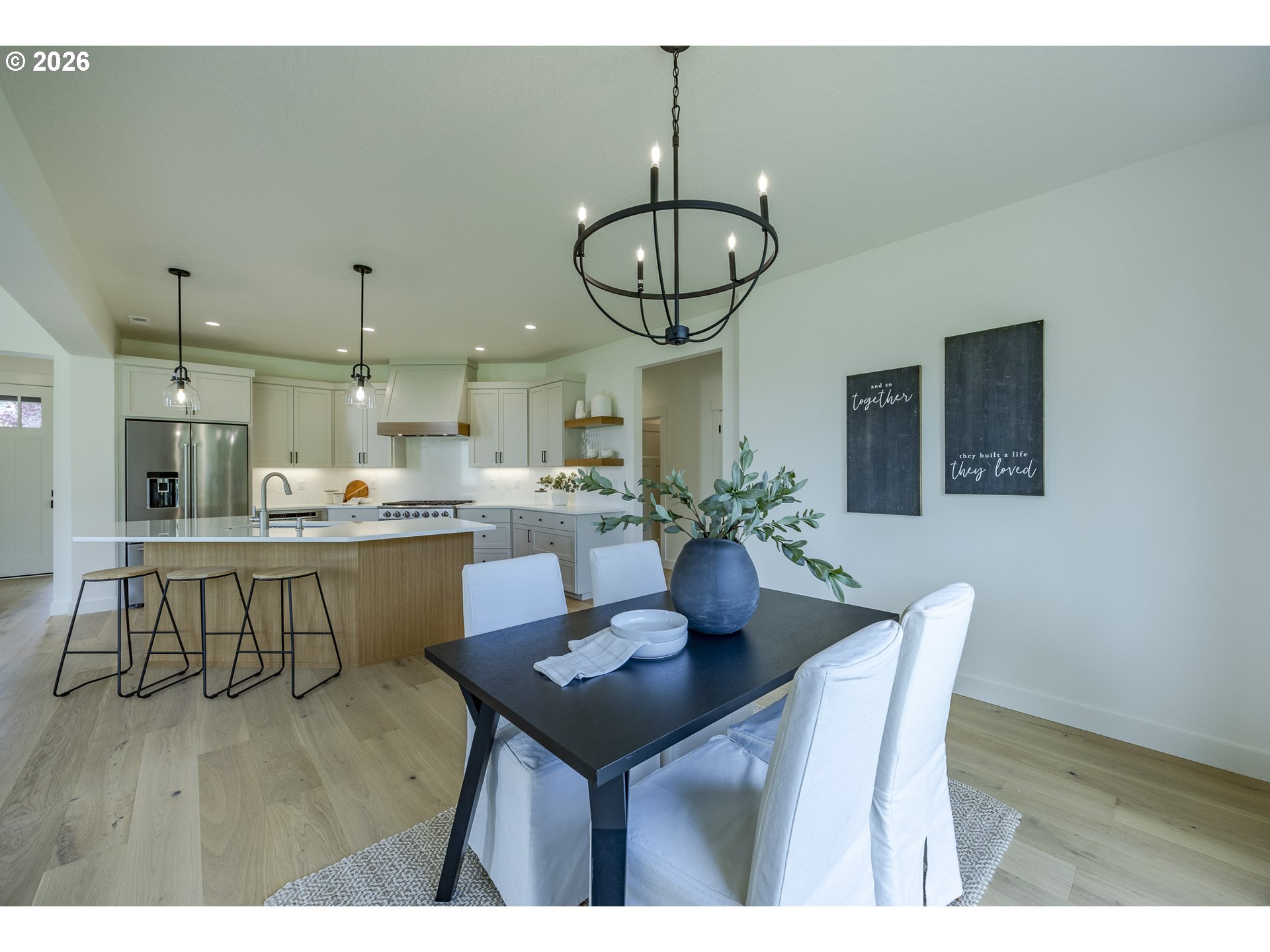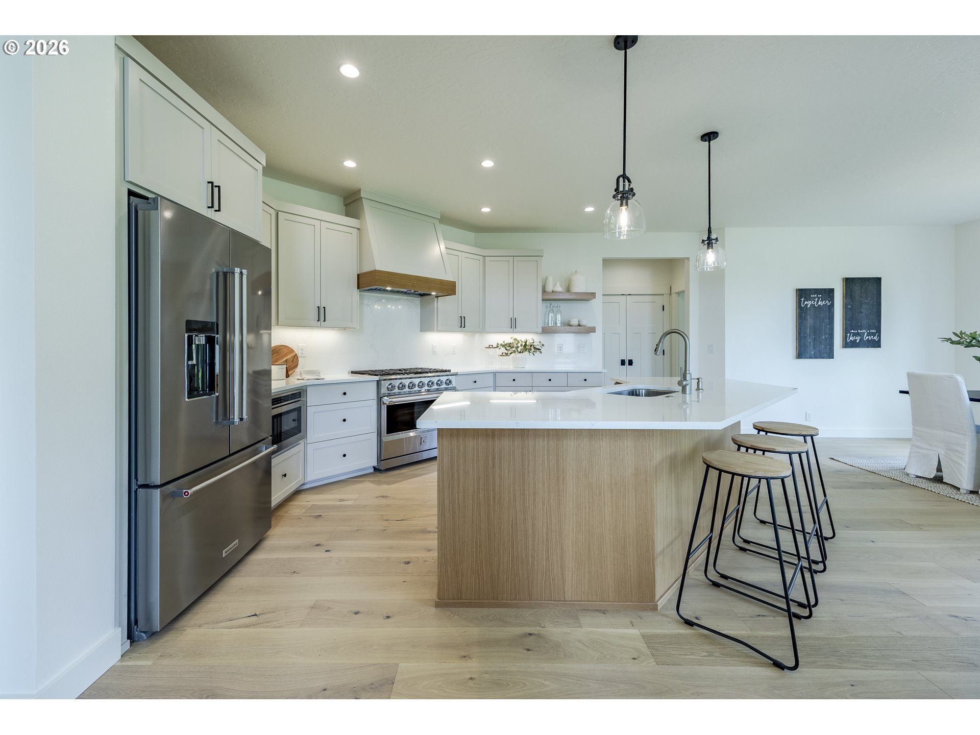 (503) 893-8874Tucked at the end of a quiet dead-end street in Veneta, this 2026 new construction by builder Bruce Weichert delivers the kind of quality you can feel the moment you walk through the door. Step inside to a striking entry. Just off the foyer, a thoughtfully placed office offers true separation—ideal for focused work or a little peace and quiet. Beyond that, the home opens up beautifully into a light-filled living and dining space that truly steals the show. Vaulted, beamed ceilings and floor-to-ceiling windows create a sense of volume and warmth, while the glass slider invites effortless indoor-outdoor living for summer evenings and weekend gatherings. The kitchen is designed to impress and perform. An oversized quartz island anchors the space, perfect for dining or entertaining, complemented by top-of-the-line KitchenAid appliances and a chef-worthy Hestan gas range. A dedicated dining area offers the perfect setting for more formal occasions. Privately positioned in its own wing at the back of the house, the primary suite is a true retreat with vaulted ceilings, a generous walk-in closet, a spa-like ensuite complete with soaking tub and walk in shower. Two additional main-level bedrooms, a full bathroom, a well-appointed laundry room with sink, storage, exterior access—and yes, a coveted Speed Queen set included—round out the main floor.Upstairs, a flexible bonus room, full bath, and additional bedroom create space for guests and hobbies.Every detail has been considered: tankless on-demand hot water, generator readiness, an extra-deep garage with storage, and a well pump house equipped with heat and power. Even future plans are accounted for, with septic and water lines already extended for a potential shop. This dreamy new build sits on a flat, usable 2-acre parcel—offering space, privacy, and possibility. This isn’t just a home; it’s your next chapter.