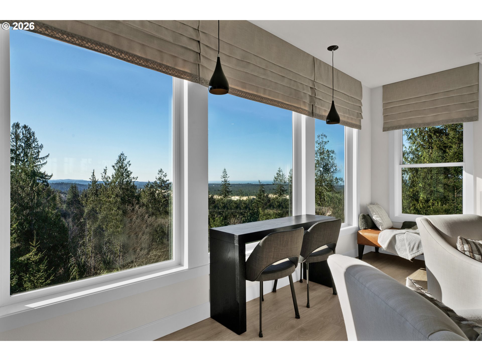 (503) 893-8874Built in 2020, this custom Ocean View residence captures panoramic, majestic views of forest, dunes, and the Pacific Ocean from expansive picture windows in the living room, dining area, kitchen, primary suite, and even the primary bath. Designed with exquisite attention to detail, the home features 9-foot ceilings and luxury plank vinyl flooring throughout, creating a seamless and sophisticated aesthetic.An oversized covered front porch welcomes you inside to a light-filled, open-concept living space. The living room offers custom built-ins and a striking modern wall-mounted fireplace, while a door leads to the view deck overlooking meticulously landscaped grounds bursting with seasonal color. The kitchen is truly exceptional, appointed with stone countertops and dramatic floor-to-ceiling custom cabinetry in a beautiful two-tone light and dark finish—both functional and stunning.The primary suite is a private retreat with a walk-in closet complete with organizers and a spa-inspired bath featuring a walk-in tile shower, separate soaking tub, heated floors and dual sinks—all positioned to take in those incredible views. A second bedroom provides comfortable guest accommodations, and the third has built-ins and is currently used as an office. A second full bath with soaking tub for guests also provides heated floors.The lower level expands the living possibilities with a covered patio and French doors leading to a finished space currently used as a wine room, plus an additional unfinished basement area ideal for storage. The Homeowners Association includes access to a community dock and common area on Mercer Lake, adding to the lifestyle appeal.Being sold furnished with quality pieces and household items, this is a truly turnkey opportunity—an exceptional coastal home where craftsmanship, comfort, and unforgettable views come together beautifully.