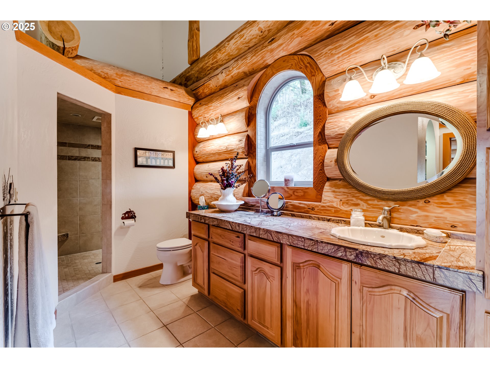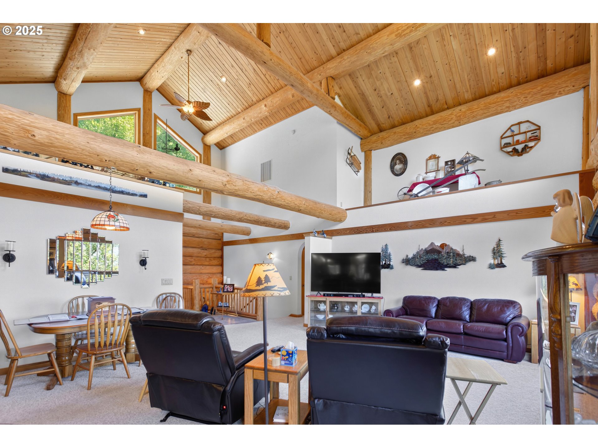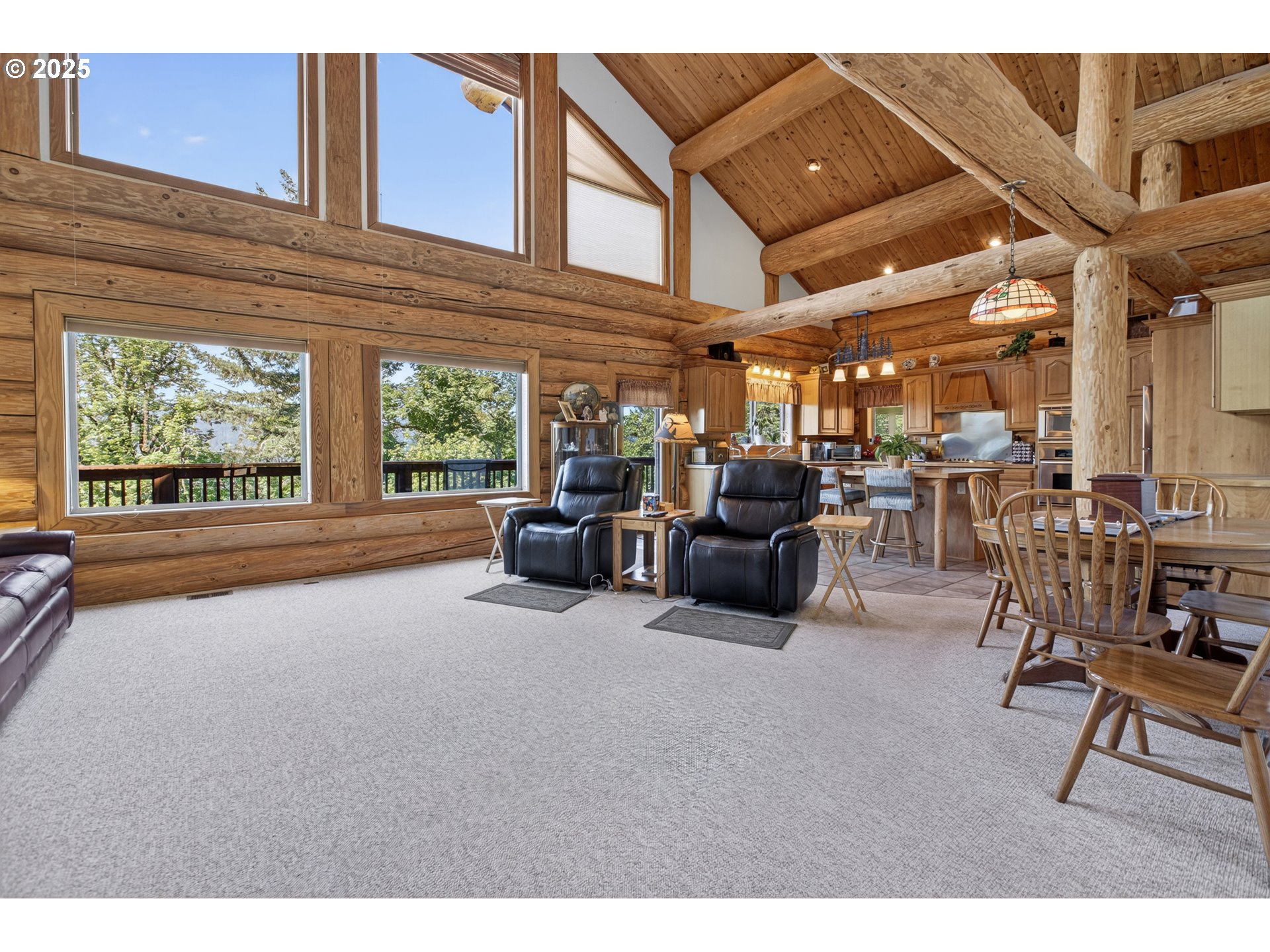 2004 log home estate at the top of your own private forested hillside just minutes from town. Enjoy views of the valley, river, city & Fern Ridge in the distance from the nearly 2000 sq ft of decking. The logs used to construct the home were harvested and milled on site. The gated private road has recently been resurfaced and comfortably ascends to the home perched high on the hill. The homesite itself is level featuring the 3564 sq ft home, ample parking, yard space, three bay garage/shop and room for additional building opportunities. Entering the home you immediately sense you've entered a lodge. You are greeted with a great room design featuring a grand two-story vaulted ceiling and floor to ceiling windows. The entertainer's kitchen is expansive with a large center island, abundant cabinetry, a sink with a view, and more. Additionally, there is a second bedroom/den on the main.Downstairs a huge family room with high ceilings features a gorgeous bar hewn from the estate's timber. A gaming area comfortably accommodates a pool table. A full bathroom & spacious guest room are located on the south side with two bonus rooms, currently used as storage, on the east side. Outside a covered outdoor cooking & dining area taking full advantage of the view is in addition to the house's two-story decking. Downstairs enjoys full views and deck access as well.The garage shop is a car enthusiasts dream with plenty of room for multiple vehicles, extensive shop area and storage above. It features an additional car port for equipment storage as well. Note that this home borders but is not part of the Sky High Ranch HOA although there may be an opportunity to join if you wish. Please see the floor plans, website and video for more details. This home is not a drive by and appointments are required to enter the grounds. Call your favorite real estate broker and schedule your private viewing today.