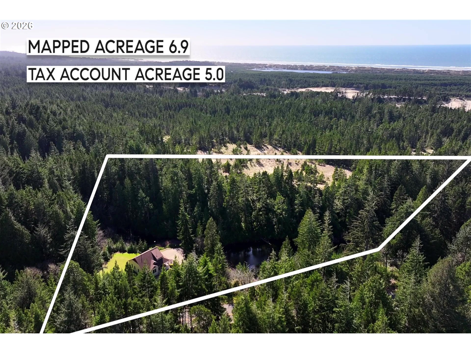 First time on the market, this custom-built retreat offers your own private slice of the Oregon Coast on over 6 acres, surrounded by forest, dunes, and a tranquil private pond. A rare opportunity to own a truly serene and secluded setting while still enjoying modern comforts.Thoughtfully designed and beautifully upgraded, the home features rich hickory wood flooring, upscale carpet in the bedrooms, granite countertops throughout, quality cabinetry, and soaring high and vaulted ceilings that enhance the natural light and sense of space. The inviting living room showcases vaulted ceilings and a cozy fireplace, creating a warm and welcoming atmosphere.The kitchen is both functional and refined, complete with granite counters, stainless steel appliances, a corner double porcelain sink, and a spacious pantry. The primary suite offers two walk-in closets and a private bath with tile flooring and a walk-in shower. A second bedroom features a glass slider to the deck, while the split-level upper family room provides flexible space ideal for guests, hobbies, or additional living.Outdoor living is just as impressive, with a large wraparound covered deck accessible from the bedroom and dining area, complete with built-in lighting and surround sound—perfect for entertaining or enjoying peaceful coastal sunsets. The property also includes ample storage, RV parking with hookups and electric, and a charming outbuilding with built-ins accessed by a wood ramp—ideal as a playhouse, studio, or creative space.With permanent internet service already connected and being sold furnished, this is a true turnkey Oregon Coast dream—offering privacy, beauty, and lifestyle all in one exceptional property.