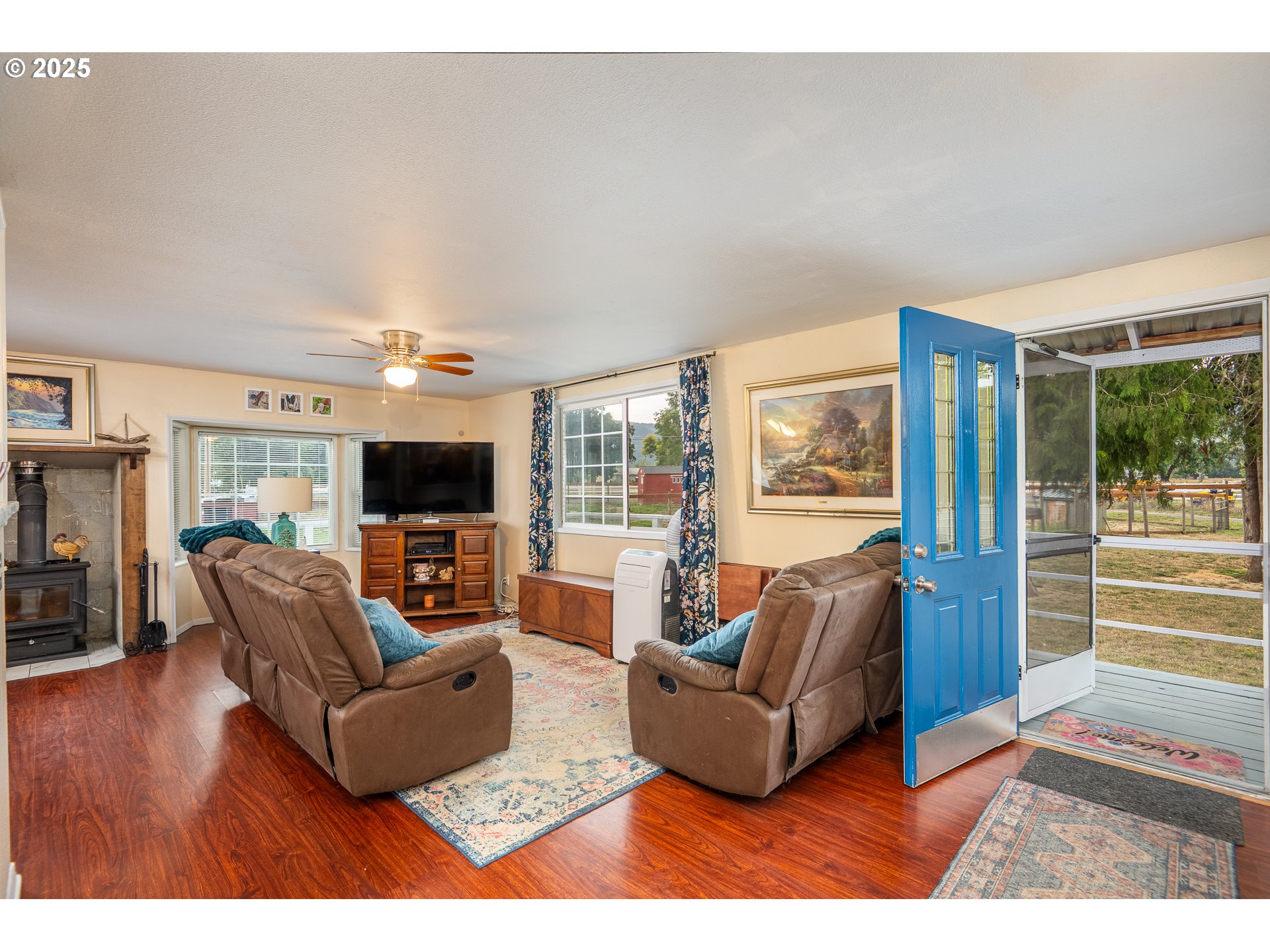 (503) 893-8874Welcome to this versatile and farm-ready property featuring a spacious one-level home with thoughtful updates and plenty of extras. Inside, you’ll find an open floor plan with a large kitchen, new LVP flooring, a wood-burning fireplace, and zoned heating with wall units and baseboard heat. The primary suite offers a generous walk-in closet, private deck access, and a large bath with tile shower. The second bath features a tile surround tub, and the laundry room includes a sink and business cubby for added convenience. Step outside to enjoy a wraparound deck with fresh paint, producing apple and peach trees, a compost pile, fully fenced property and cross fenced areas ideal for chickens, goats, or gardening. Outbuildings include a 10x20 structure and a chicken run. The detached oversized garage and attic fan provide extra functionality.