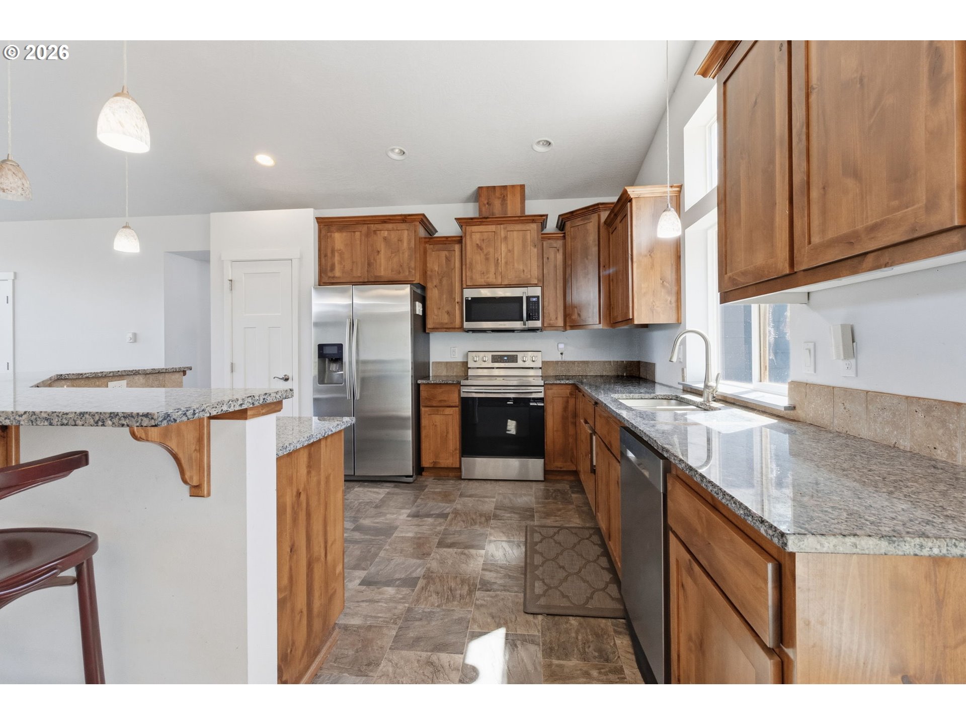 ConvectionOven, Dishwasher, FreeStandingRefrigerator, Granite, Island, StainlessSteelAppliance