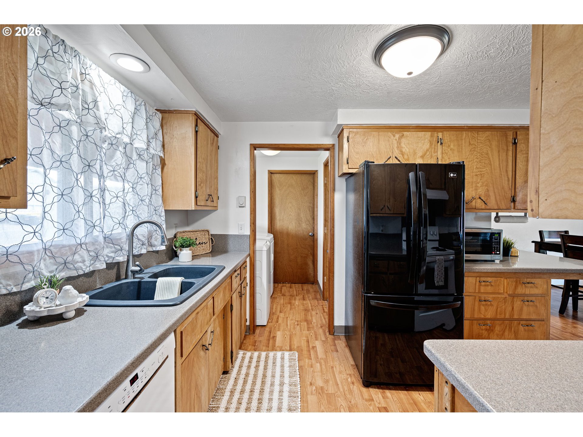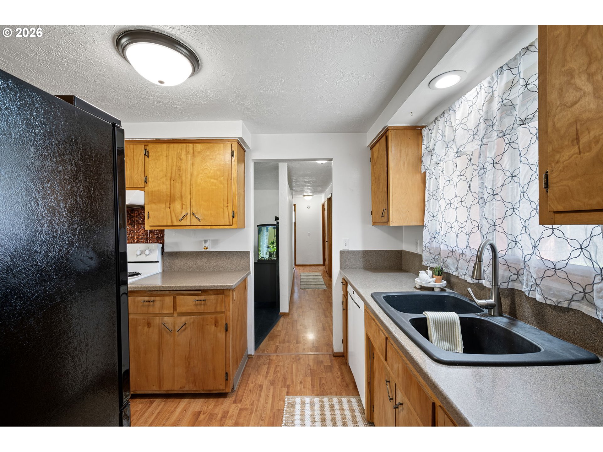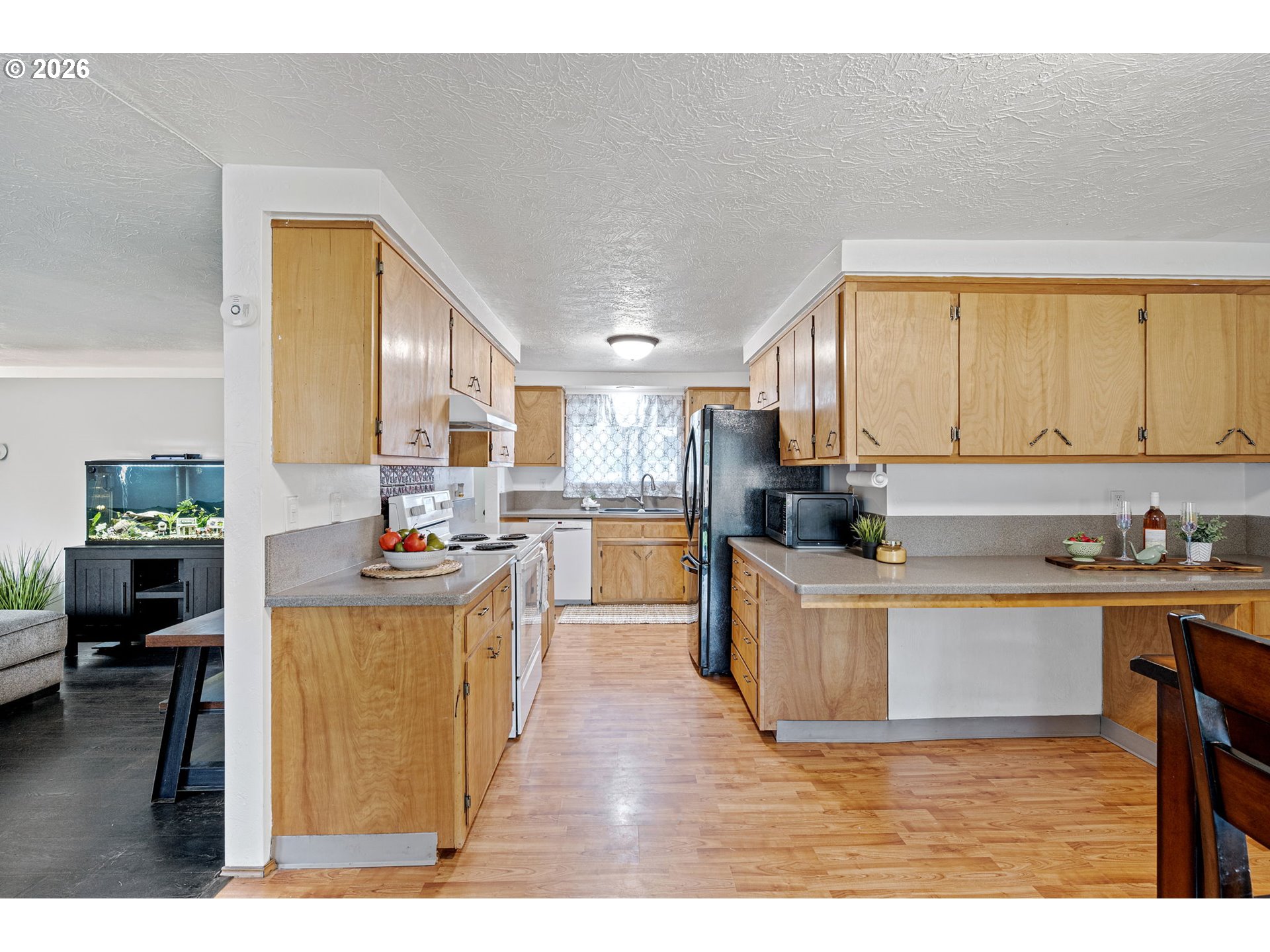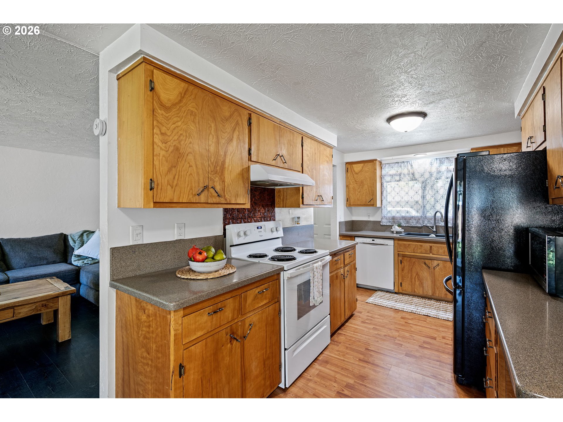 Welcome to this charming 3-bedroom, 2-bath home offering 1,282 square feet of comfortable living space in Junction City. Inside, you’ll find a spacious family room perfect for gathering, along with updated flooring and countertops that add a fresh, modern touch. The bedrooms are generously sized, providing plenty of room to relax and unwind. Step outside to enjoy the covered back porch—ideal for year-round outdoor living— with a fully fenced backyard.Recent updates include a new roof in 2020, water heater in 2021, and fencing in 2023, giving peace of mind for years to come. Additional features include small RV parking and a functional layout that makes everyday living easy. A great place to call home!