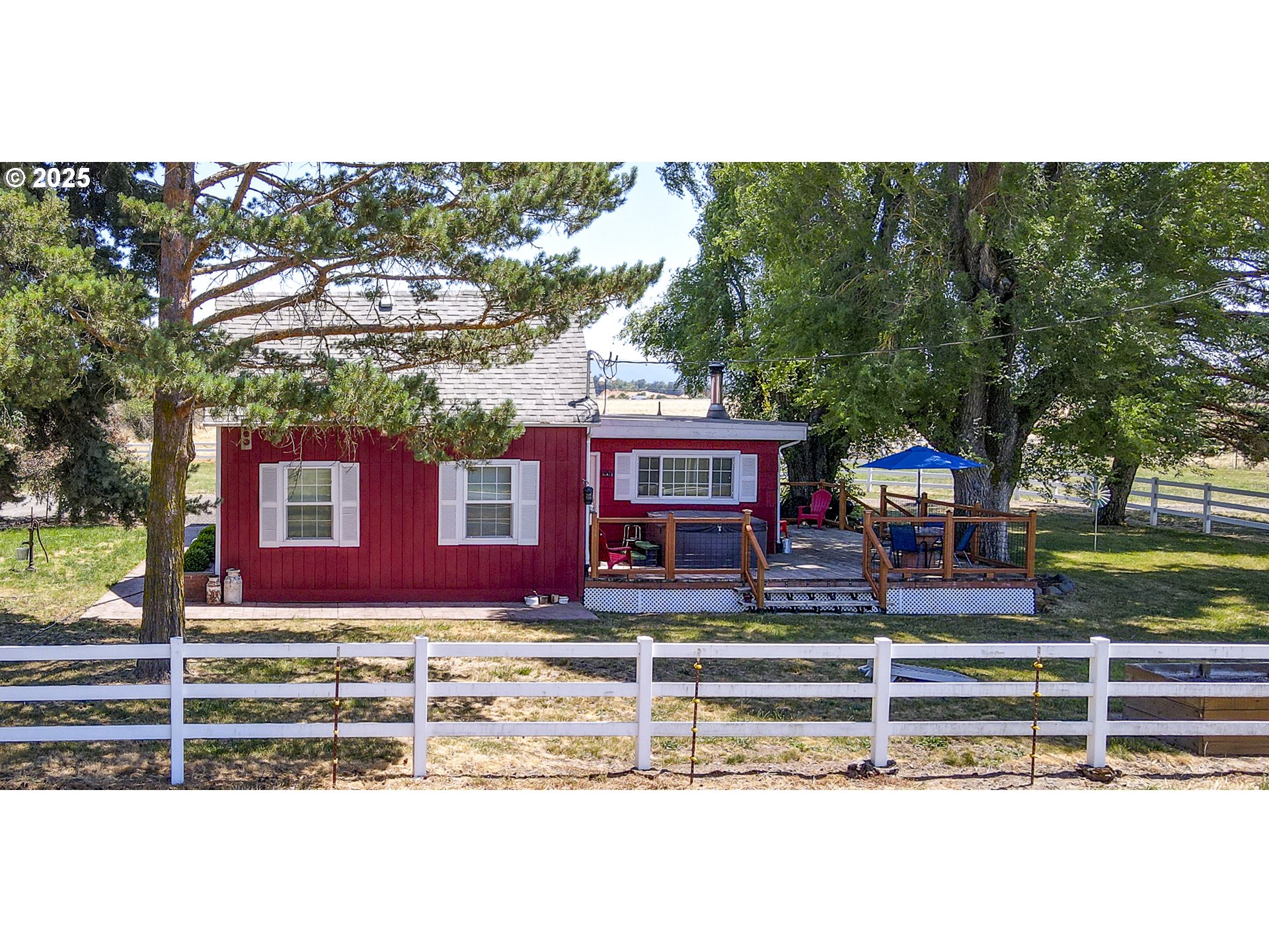 Welcome to your dream homestead—an exceptional 80-acre, fully fenced income-producing farm that perfectly blends comfort, productivity, and timeless rural charm in a peaceful yet convenient Junction City location. Seller financing available, making this rare opportunity even more attainable. Set behind a gated entrance, this well maintained property offers privacy, security, and a setting of pastoral beauty. The warm and inviting farmhouse has been lovingly cared for, showcasing a cozy rustic aesthetic with thoughtful updates throughout. Inside, you’ll find two spacious living rooms—providing flexibility for quiet evenings, entertaining, or multi-use space—and large windows that frame sweeping views of the surrounding farmland. Step onto the expansive back deck to enjoy panoramic sunsets over lush pastures and open fields. Designed for both lifestyle and agricultural productivity, the property boasts rich, high-quality soils suitable for crops, grazing, and diverse farm operations. Raised garden beds, an assortment of fruit trees, and a beautifully landscaped yard invite outdoor living. Two massive 60'x80' barns provide excellent infrastructure, including five 15'x13' horse stalls, tack rooms, and a 27'x42' indoor pen—ideal for equestrian use, livestock, or hobby farming. Additional features include a chicken coop, covered RV parking with electrical hookup, and up to 28 acres of water rights (buyer to verify). Whether you’re seeking a self-sufficient lifestyle, an income-generating working farm, or a private rural retreat with proximity to town, this property offers unmatched versatility. The combination of fertile ground, well-planned infrastructure, and serene surroundings creates an opportunity that is as functional as it is beautiful. Don’t miss your chance to own this remarkable farm—schedule your private tour today.
