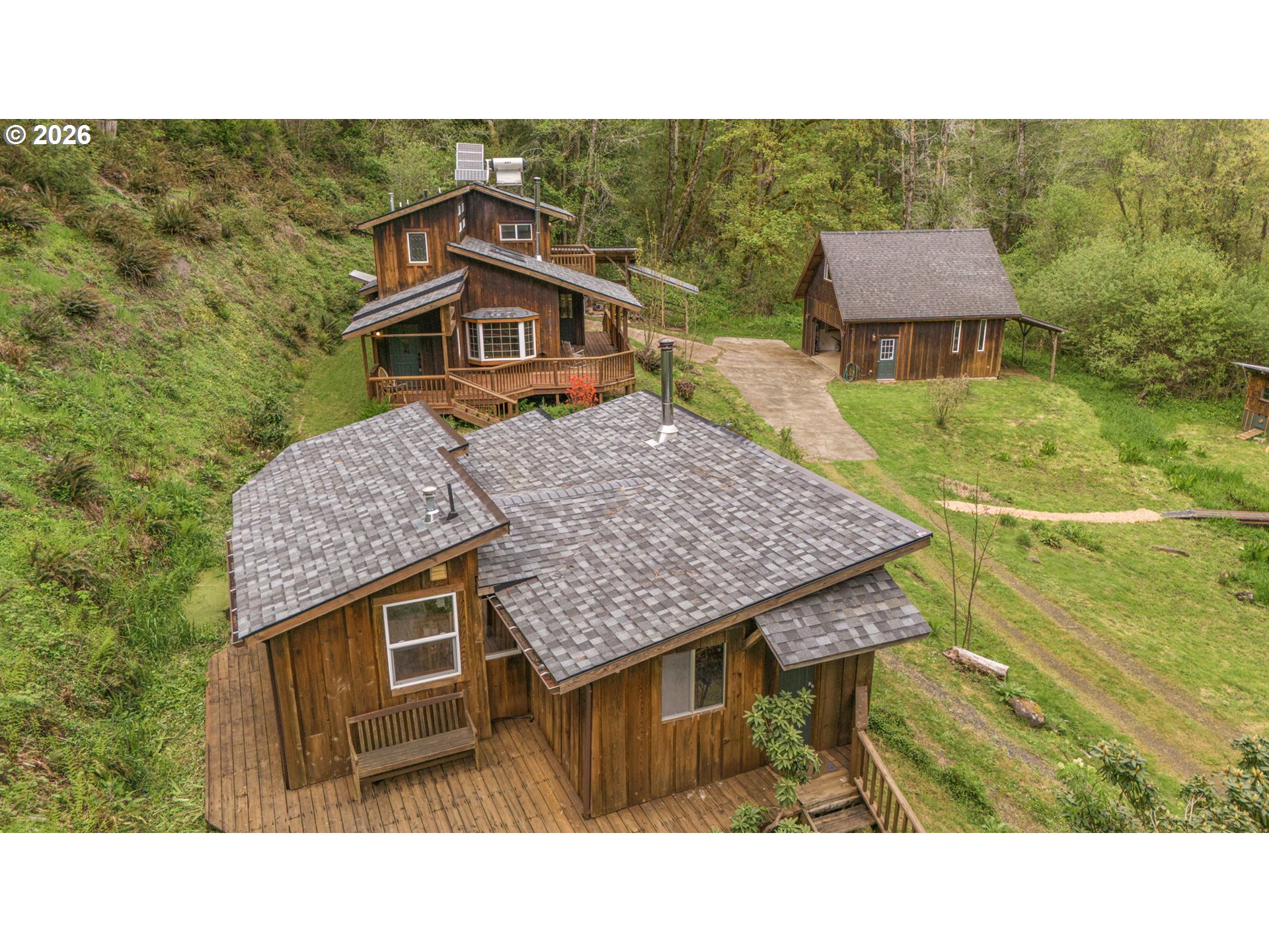 (503) 893-8874GET AWAY FROM IT ALL! Well maintained very private, serene property consists of two tax lots, for the total acreage of 12.18 acres; in addition to the main house there is a cabin and detached garage with an upper-level studio area that is not included in the living square footage. Buck Creek flows through the property and there are multiple springs, natural areas and timber within the property. Diverse abundant wildlife on the property including salmon spawning in the creek and elk herds that pass through the meadow. Perfect getaway, place for hobbies, host visitors - a lovely place to call home!