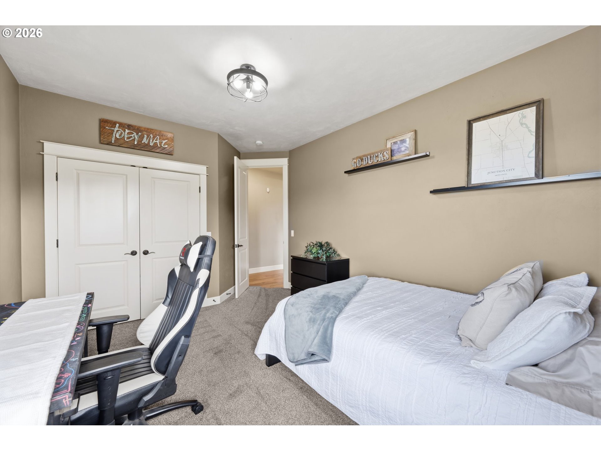 (503) 893-8874Experience the pinnacle of refined country living with this extraordinary custom-built 2007 daylight ranch estate set on 11.45 private, picturesque acres in Junction City—an exceptional luxury equestrian retreat designed for both elegant living and premier horse stewardship. Stunning single-level residence features soaring vaulted and high ceilings, paired with expansive windows, bathe the home in natural light while showcasing the surrounding pastoral beauty. Rich hickory heritage hardwood floors, plush carpeting, slate tile, and exquisite marble finishes create a warm yet sophisticated ambiance throughout.At the heart of the home, the gourmet chef’s kitchen impresses with stainless steel gas built-in appliances, double ovens, quartz countertops, an island with prep sink, and instant hot water—flowing seamlessly into the inviting great room anchored by a cozy gas fireplace. Entertain effortlessly in the formal dining room or gather around the elegant bar area featuring a striking coffered ceiling. The private owner’s suite is a true sanctuary, complete with a tray ceiling, French doors leading to the covered patio, dual walk-in closets, and a spa-inspired bath showcasing double vanities, marble countertops, heated marble floors, and an oversized tiled shower with multiple shower heads.Designed with both comfort and function in mind, the home also offers generously sized secondary bedrooms with double closets, two laundry areas—including a full laundry room with sink and storage—and a secured room ideal for valuables or equipment. Outdoors, indulge in resort-style living with a covered patio, gas fireplace, built-in firepit with decorative pavers, and a hot tub—perfect for year-round enjoyment in a serene setting.Equestrian excellence defines this property. Thoughtfully equipped for the discerning horse enthusiast, the estate features a premium indoor riding arena, a well-appointed luxury barn, and expansive grounds ideal for training, turnout, and riding.