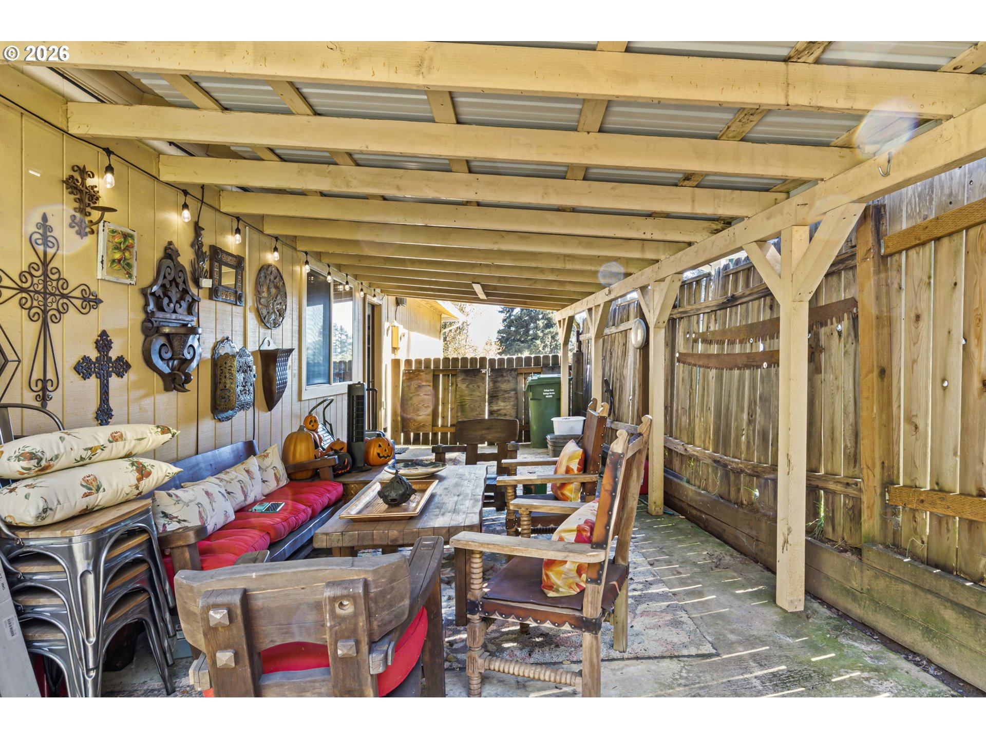 3-bedroom functionality with 2 bedrooms per county, offering flexible living space in this charming Cottage Grove home. The kitchen features updated countertops, tile backsplash, and ample cabinet space, opening to a cozy dining area. Comfortable living space with great natural light and easy access to the backyard. Enjoy a spacious yard with mature landscaping, and room to relax or entertain, plus a 15 X 11 feet storage shed for added convenience. Home also features a solar hot water heater for improved energy efficiency. Attached garage plus extra storage adds convenience.