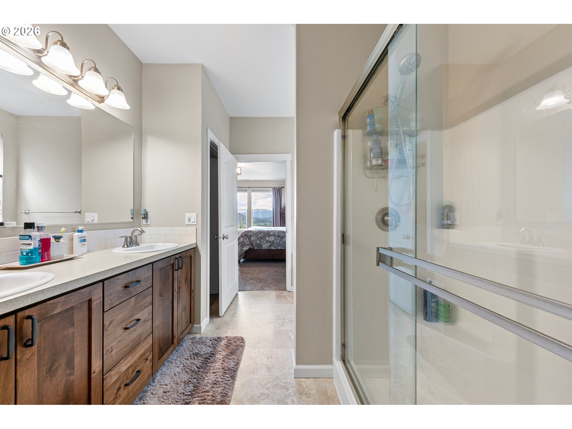 Immaculate Single-Level Home with Stunning Views in Mountain Gate. Welcome to this like-new, single-level home located in the prestigious Mountain Gate community. Designed for both comfort and style, this spacious residence offers sweeping mountain views from the open-concept great room, dining area, and kitchen—arguably one of the best views in the neighborhood. The great room features elegant engineered hardwood floors, a vaulted ceiling, and a cozy gas fireplace, creating a warm and inviting space to relax or entertain. The chef’s kitchen is outfitted with quartz countertops, stainless steel appliances, a gas range, pantry, and a center island—ideal for casual gatherings and culinary creations. Step outside from the dining room onto an expansive covered Trex deck, perfect for backyard barbecues or simply enjoying the beautifully maintained, fully fenced yard and breathtaking vistas. This thoughtfully designed home includes three bedrooms plus a versatile den—perfect for a home office, studio, or hobby room. The generous primary suite offers a luxurious retreat with a spacious walk-in closet, a soaking tub, and a separate shower. Additional highlights include a high-efficiency heat pump, exterior sprinkler system, oversized 3 car tandem garage and much more. Don’t miss the opportunity to own this exceptional home with unmatched views and high-end finishes in one of the area's most sought-after communities.