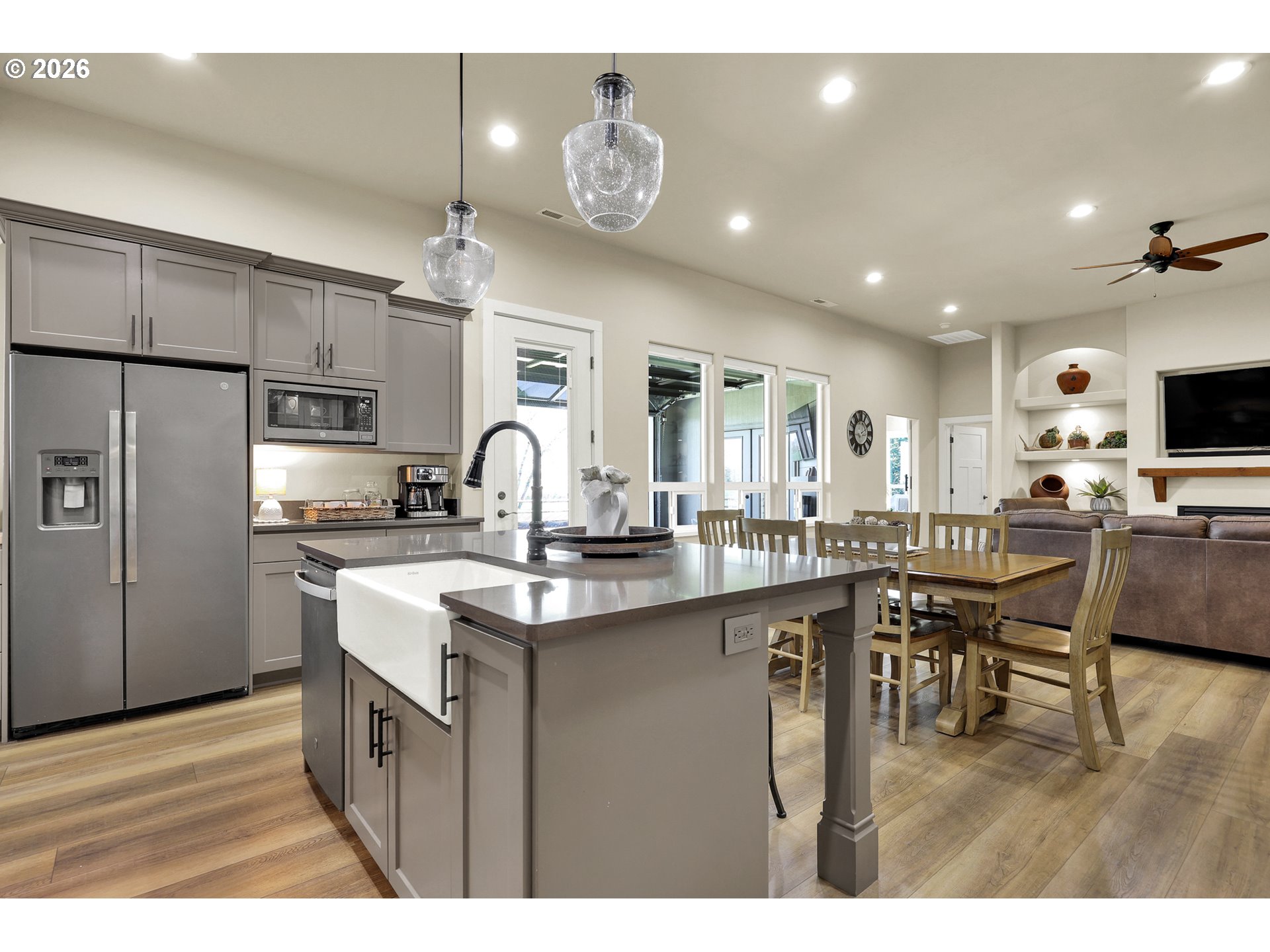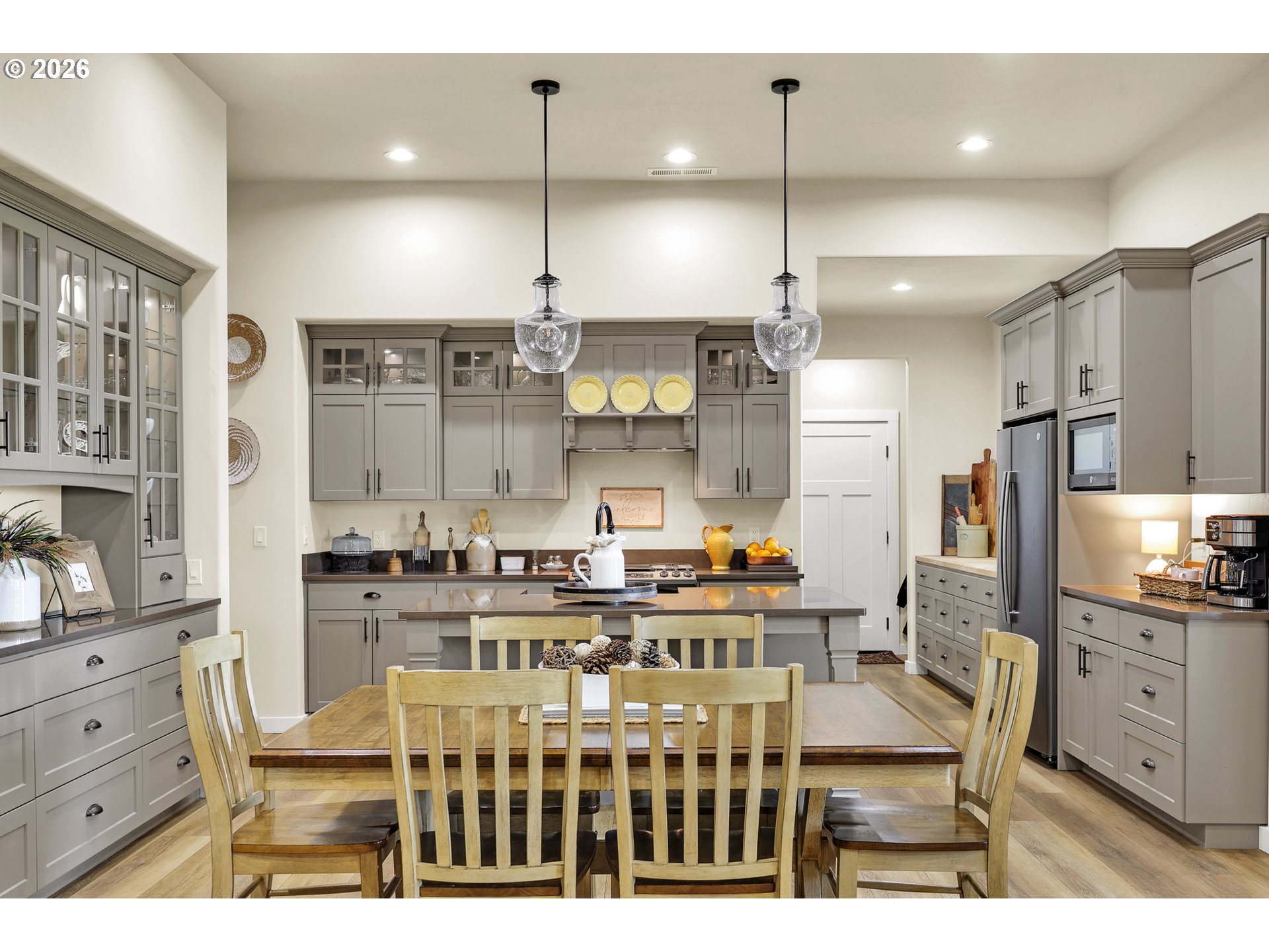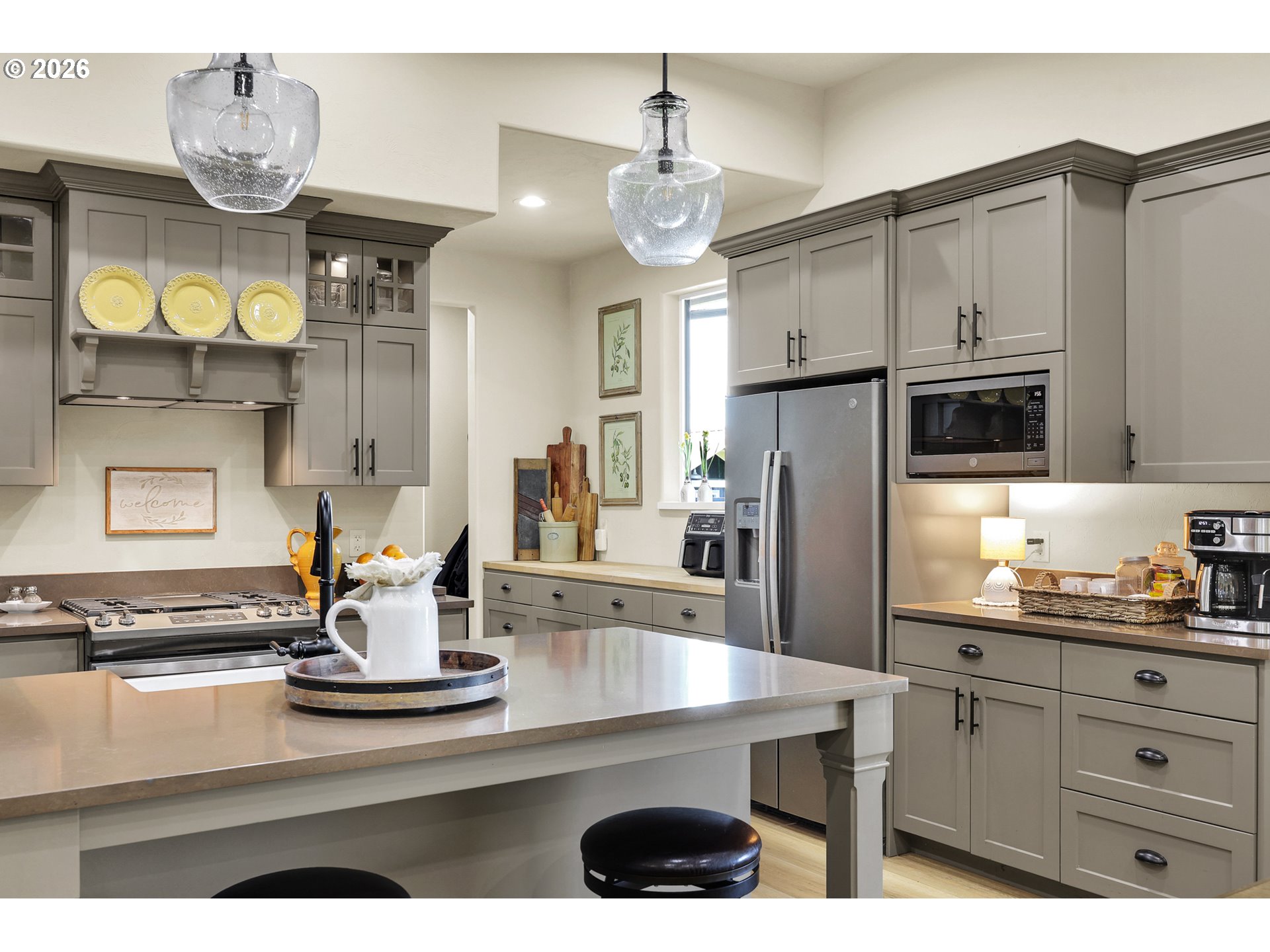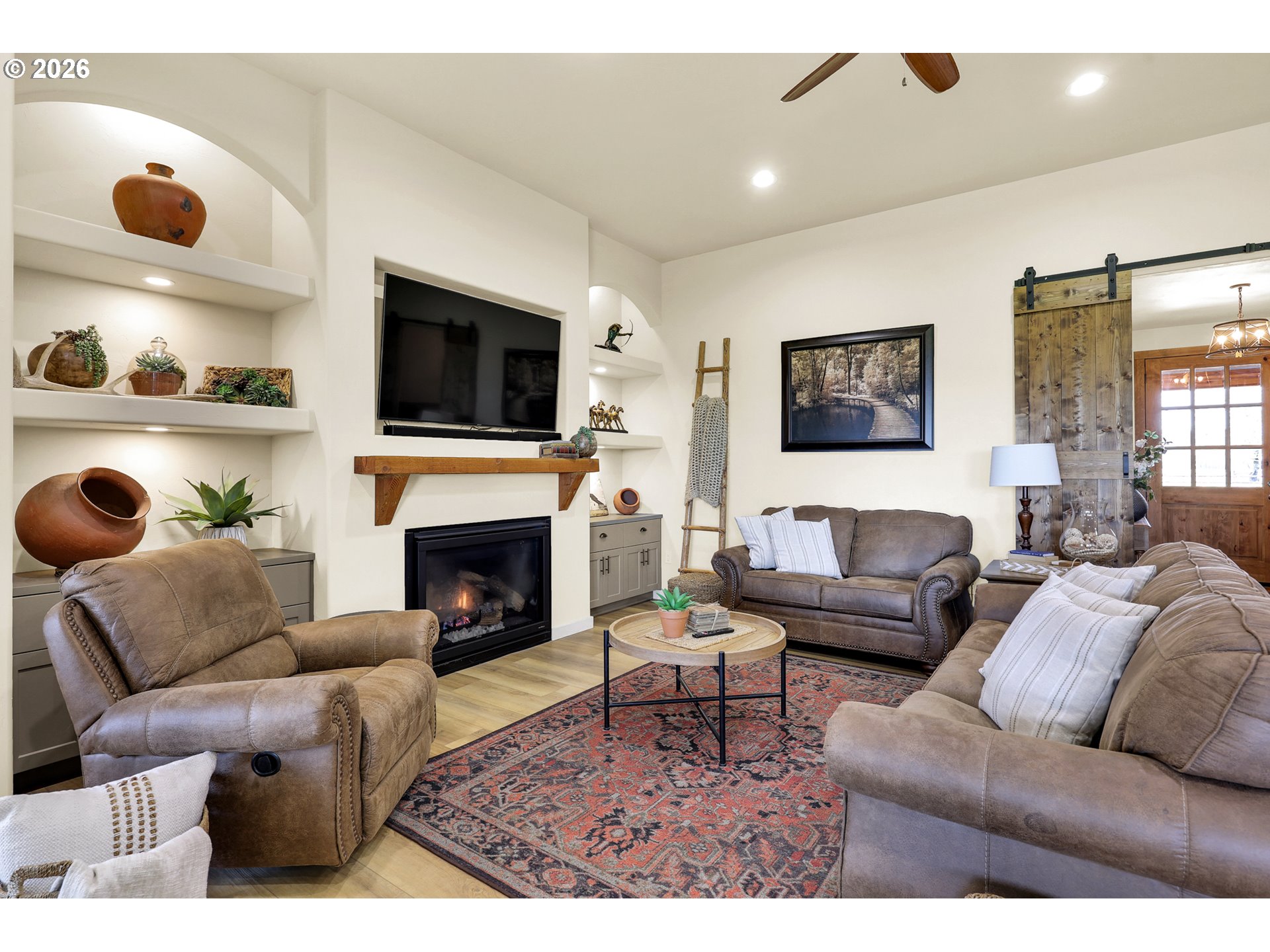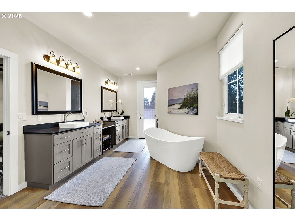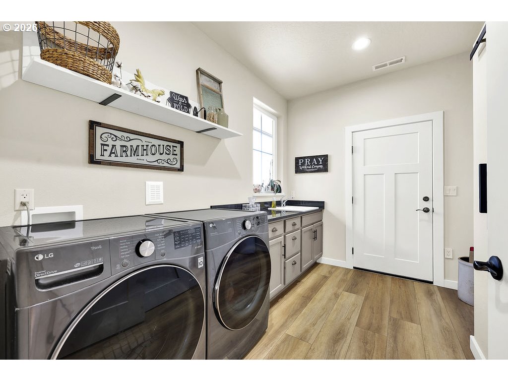 Discover this rare, owner-designed and built custom home, now on the market for the first time. Set on 2.66 private taxable acres (RR5 zoning) with exclusive irrevocable rights to approx. 1.38 additional acres of the neighboring property recorded with a "View & Use Easement" for a total of approx. 4.04 acres. The home enjoys breathtaking Eastern views of the Coburg Hills and award winning sunsets & sunrises that paint the sky. Exceptional privacy and versatile rural living are yours just 1 mile from Junction City. The spacious interior impresses with 11 ft ceilings throughout the main level, while thoughtful efficiency upgrades include a solar attic vent fan, 16 SEER high-efficiency heat pump, hybrid heat pump water heater, gas fireplace rated at 2,600sqft and generous 4-foot overhangs around the entire house. A robust 380-amp elec. service is pre-wired for a whole-house generator, complemented by 30 & 50-amp RV hookups (w/ water), attic wiring for future power needs, a custom private entry gate w/new Ghost gate opener, water/power at the gate, and dedicated Xfinity service. Outdoor amenities abound featuring an over sized 18’ glass roll up door on the sunporch, w/electric fireplace, BBQ, refrigerator, TV, outdoor shower, half bath off the back patio, and a fenced concrete patio off the Master bath rated for a hot tub. 14’x14’ storage shed w/elec., 10’x16’ garden/she shed w/elec. & sink, underground irrigation system, fully fenced pasture, an 80’ deep private well (50+ GPM), 1500-gallon septic, 250 gallon buried propane tank. Additional perks include all appliances staying with the home. This infrastructure-rich property with just over 4 acres of usable land is perfect for hobby farming, RV living, multigenerational households, or anyone seeking a peaceful, self-sufficient rural retreat with modern comforts. An incredible opportunity to own this unique nearly 5 year old home!