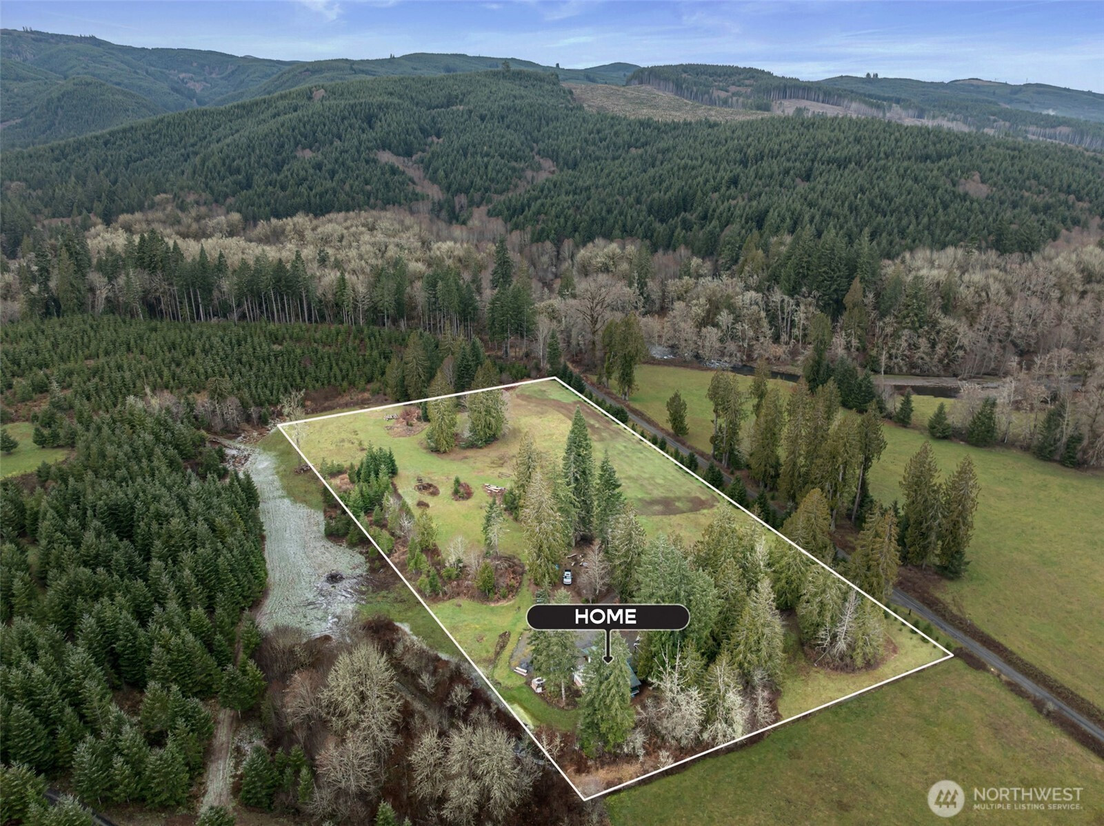 Off-grid recreational cabin – cash buyers only. Gated access leads to a secluded cabin setting on approx. 5 acres surrounded by large Sierra Pacific timberland ownership, providing long-term privacy and no nearby development. Single-story cabin with metal roof and board-and-batten siding. Features bathroom with shower, loft sleeping area, propane refrigerator and stove. Power supplied by solar panels with generator backup. Private well provides water. The Chehalis River runs behind the property, adding to the recreational appeal. Intended for recreational use (hunting, camping, weekend retreat). Shown by appointment only.