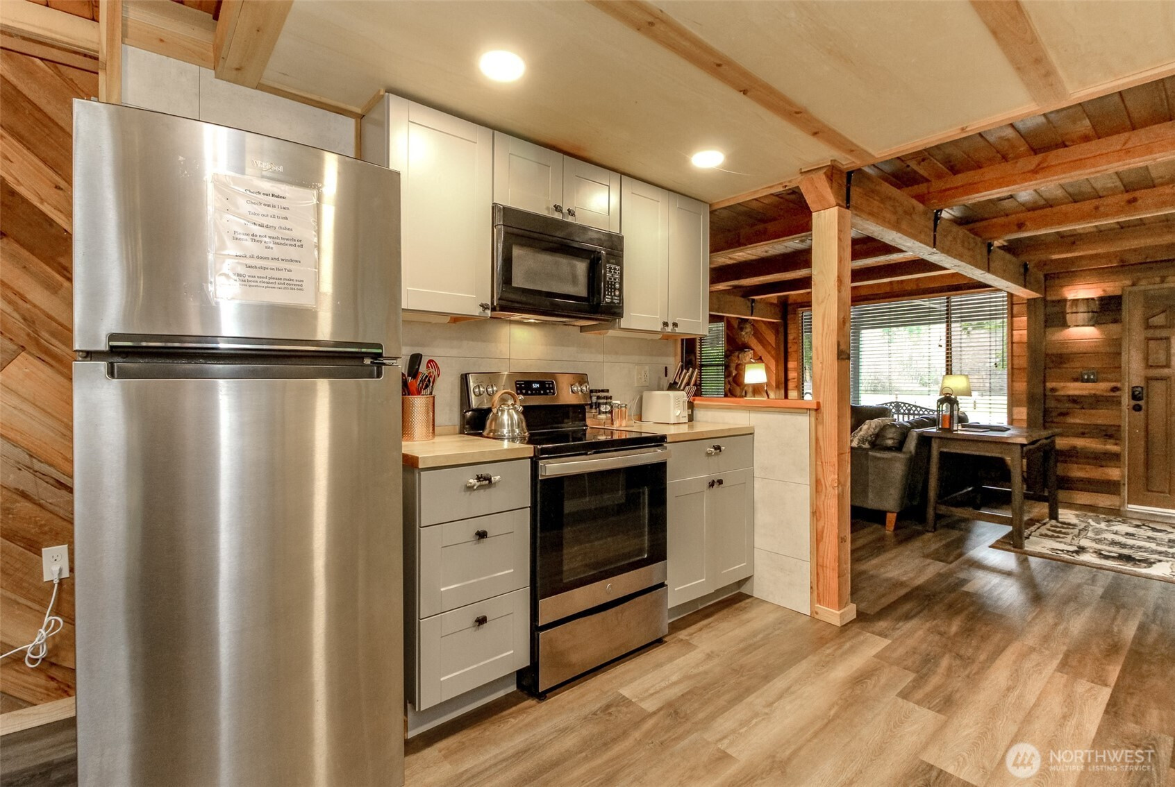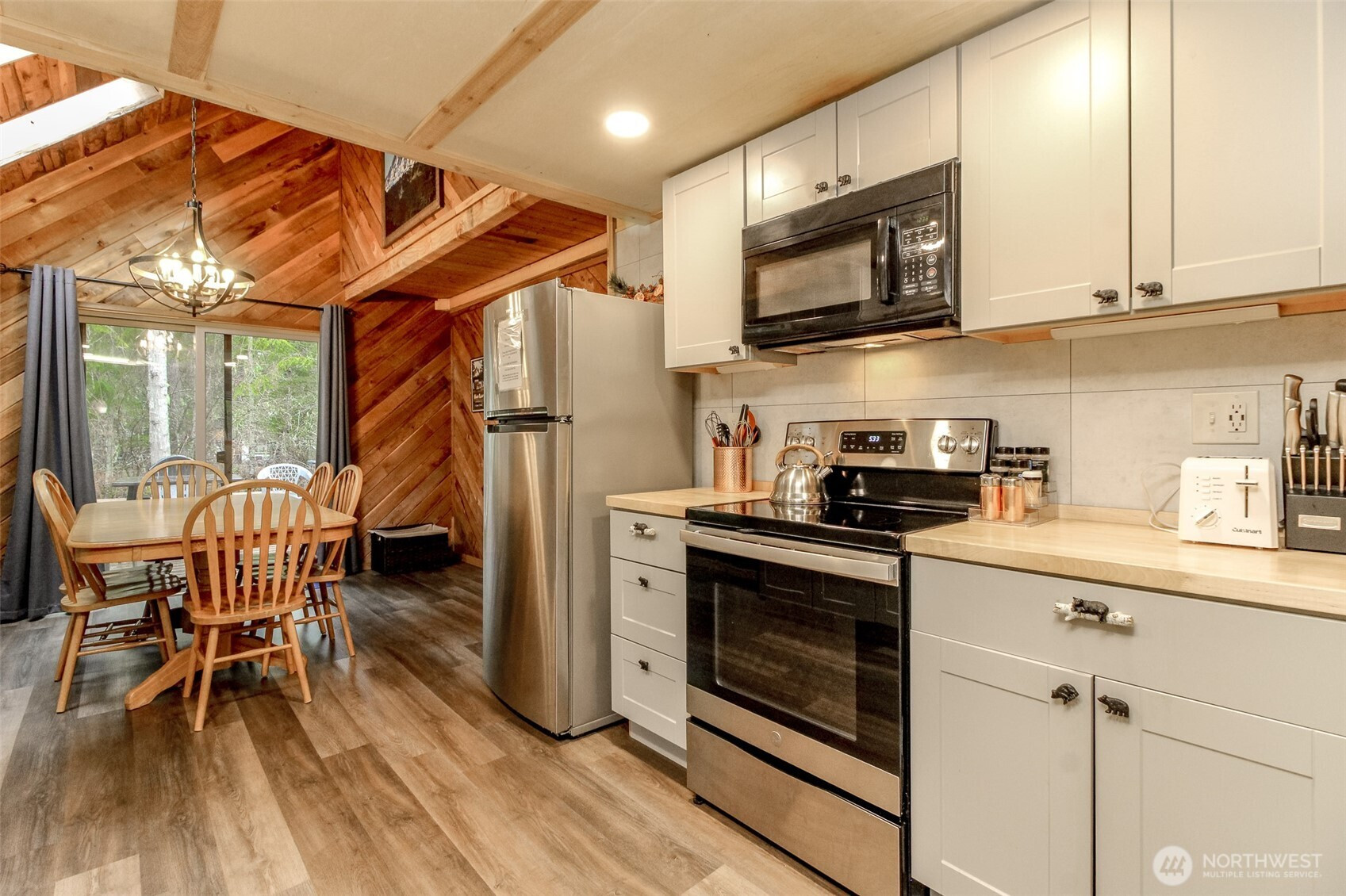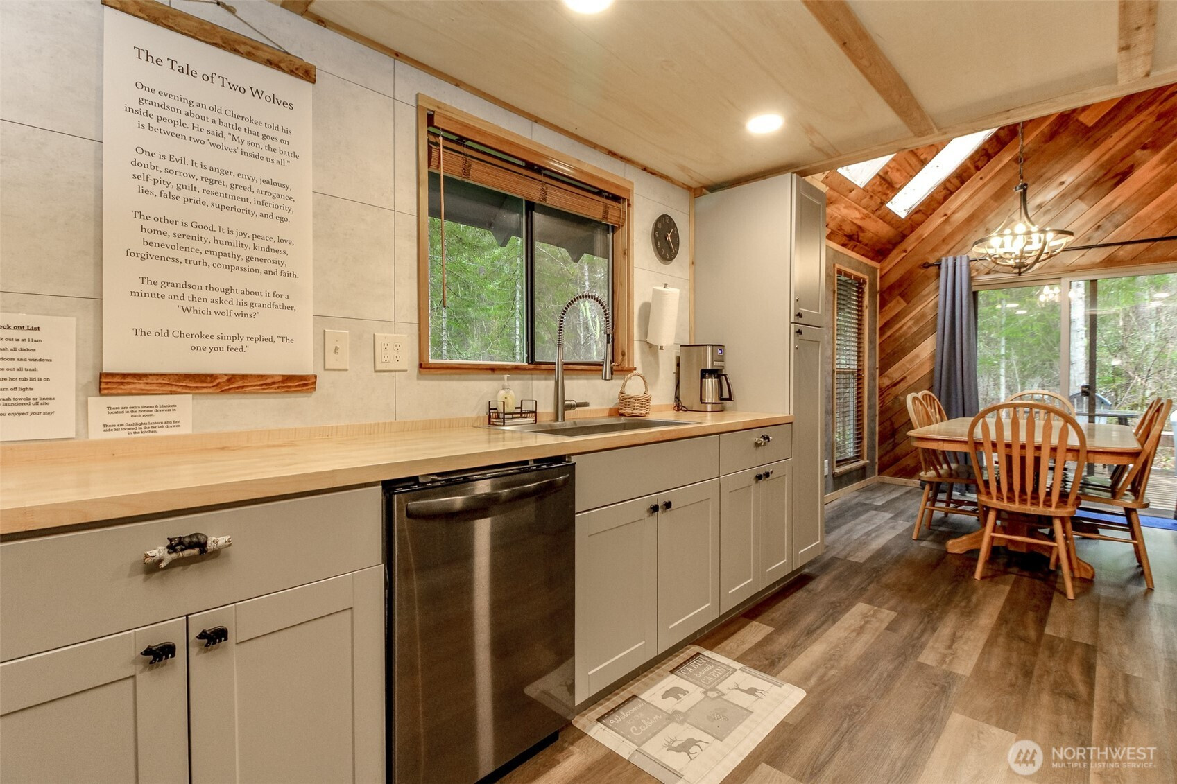 Fantastic Lake VIEW cabin in PRIME Paradise Estates, Ashford's most popular area! This cozy cabin offers many updates throughout! Updated kitchen and baths in 2021. Large dining area with vaulted ceilings and skylights off the spacious kitchen. Comfortable living area with classic wood stove perfect for the winter days. 3 generous bedrooms, with one on the main floor and 2 upstairs. Upstairs bedroom has private deck with view of the lake. Outside you will find a great fire pit with seating, front and back decks and a hot tub! Currently operating as a successful STR. Paradise Estates offers a private lake, community parks and play toys, covered BBQ area, community water, big creek access and many walking trails. Just a few minutes from Mt. Rainier National park, the Nisqually River, and close to many lakes for boating and fishing. The perfect getaway all year around!