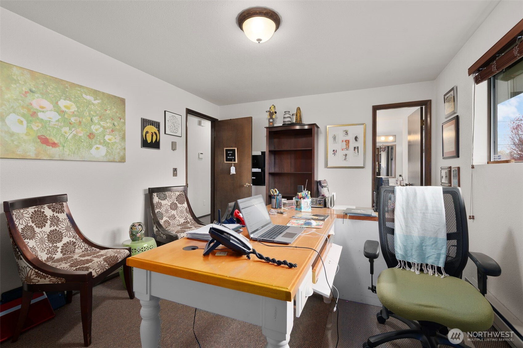 Prime commercial opportunity in a highly visible location! This well-maintained building offers 3 dedicated office spaces, a reception or conference area, full kitchen, and utility room—perfect for a variety of professional, retail, or trade businesses. The property also includes a shop or warehouse space with convenient access from the back and a commercial-grade parking lot. Sits above flood elevation for peace of mind. The roof on the main building is newer, and the location can’t be beat—right on a main street with quick freeway access. Currently used as a law office but easily adaptable to suit your business needs.