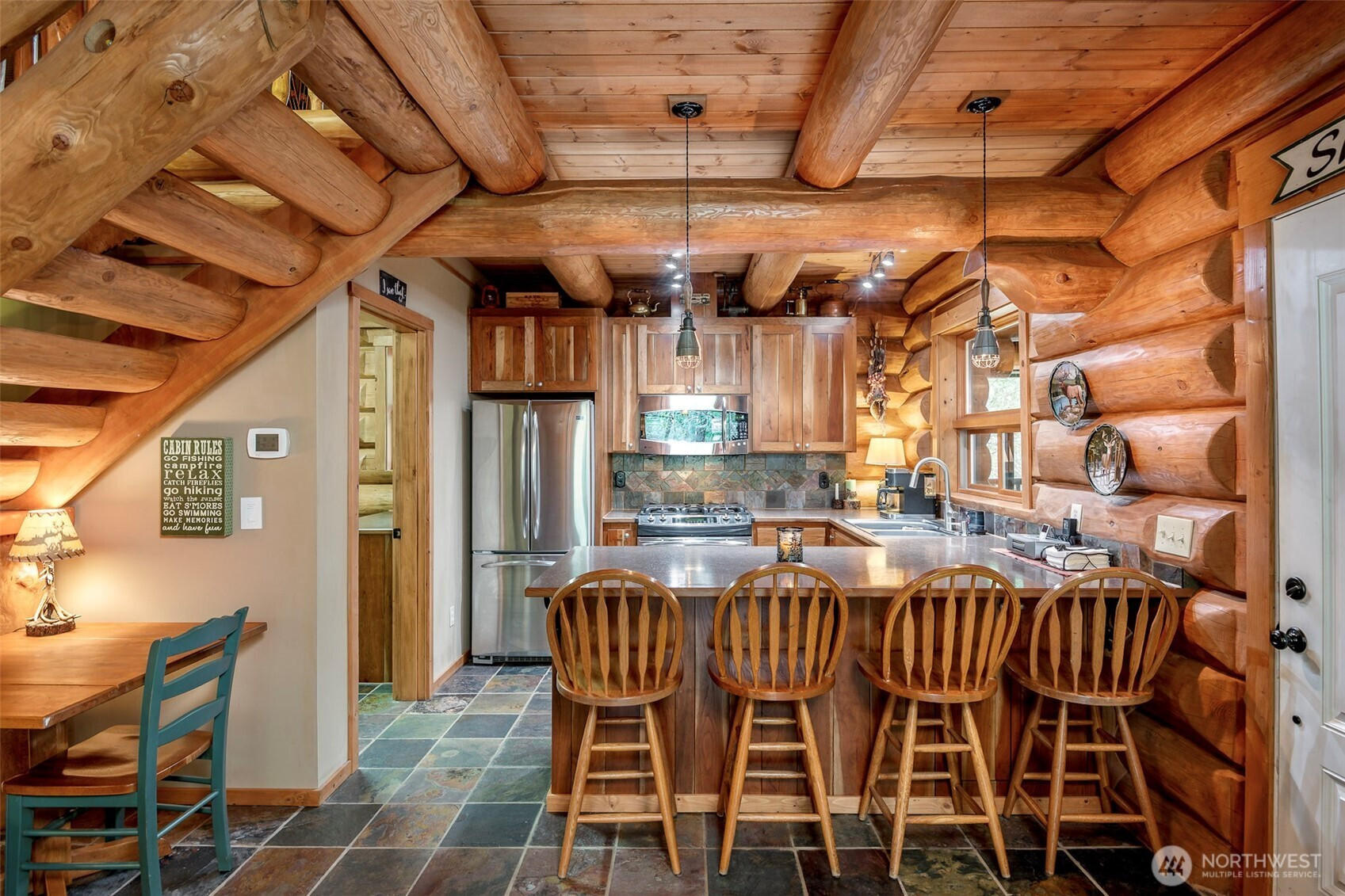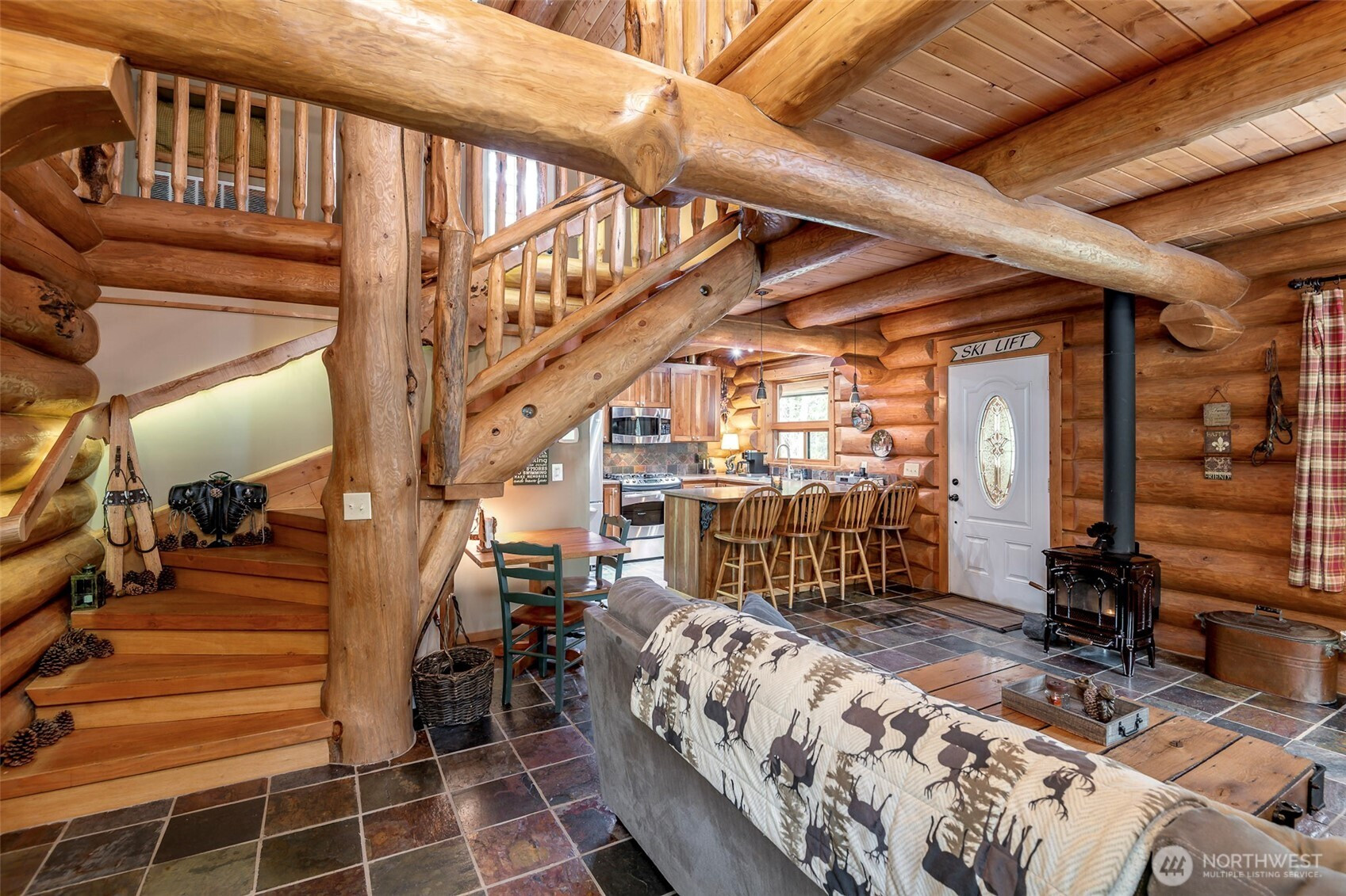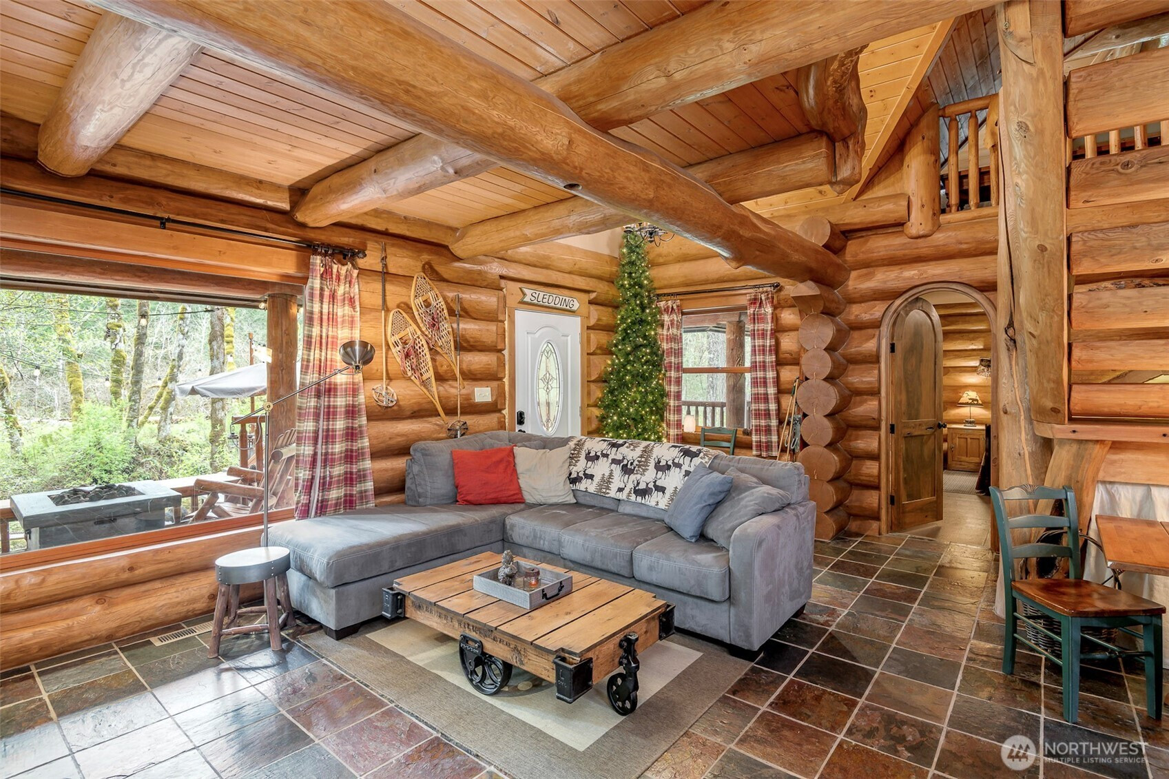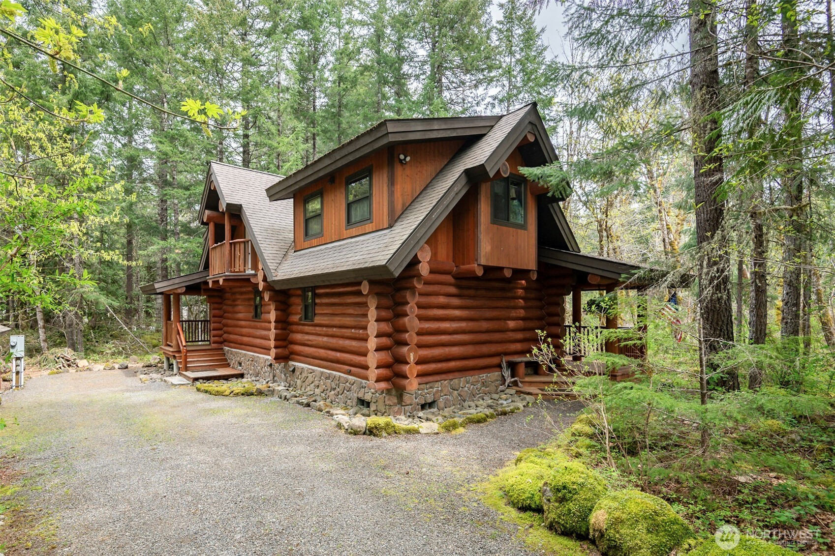 First time on the market! This stunning custom log cabin offers the perfect blend of exceptional craftsmanship, comfort, and serene creekside living. Every log was individually hand-selected, creating a truly one-of-a-kind home rich in warmth, character, and timeless appeal.Inside, you’ll discover beautiful custom features throughout, including a spacious primary suite with a private ensuite bath featuring radiant floor heat for year-round comfort. The home is served by a 3-bedroom septic system and includes a versatile loft with an additional bedroom and open living space—ideal for guests, a home office, or a cozy retreat.Step outside to the expansive wrap-around deck overlooking the peaceful creek, perfect for relaxing or entertaining while enjoying the tranquil sounds of nature. The property also features an RV hookup, is located adjacent to a park, and offers community river access, giving you even more ways to enjoy the outdoors.A rare opportunity to own a thoughtfully crafted log home in an idyllic setting—this is cabin living at its finest.