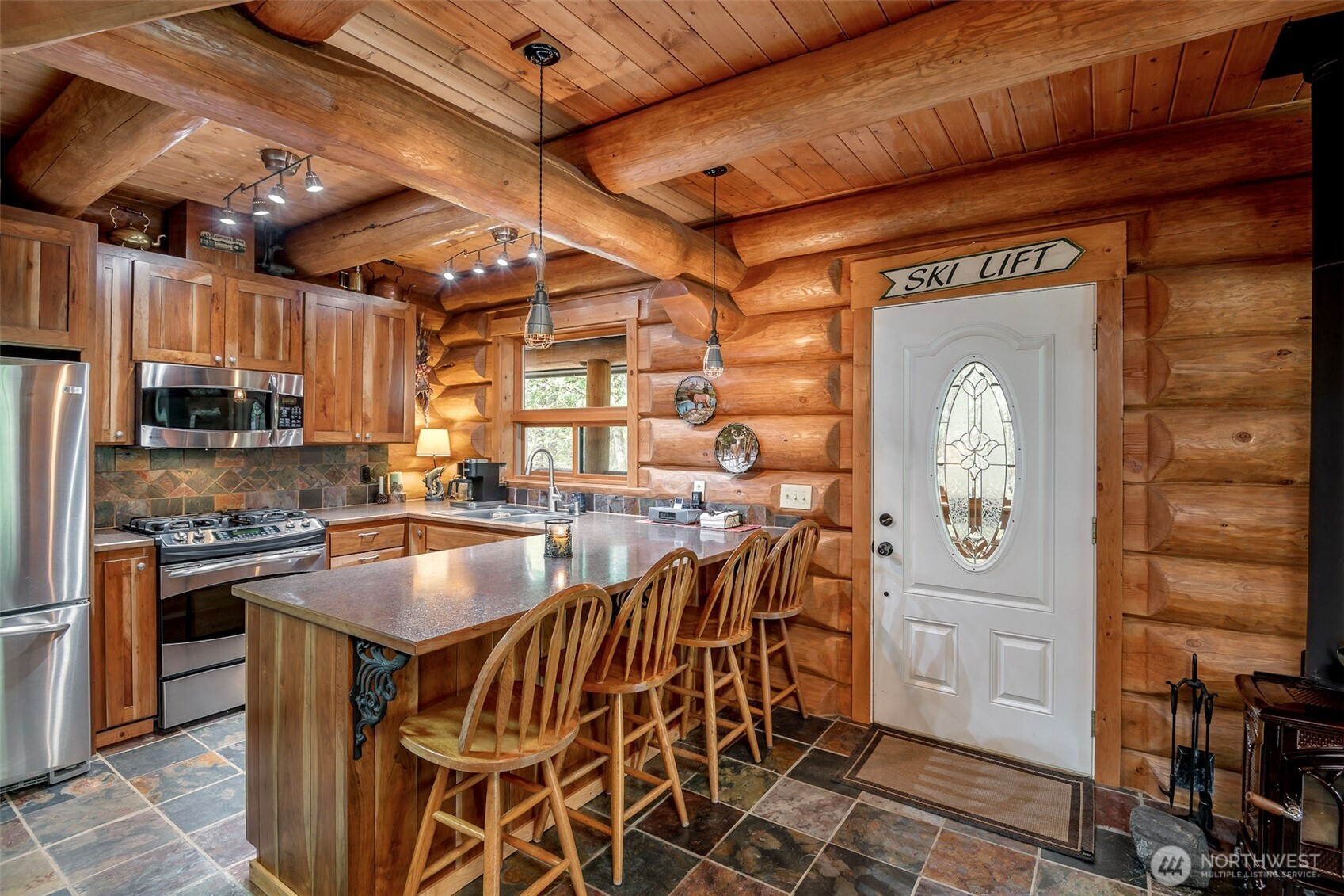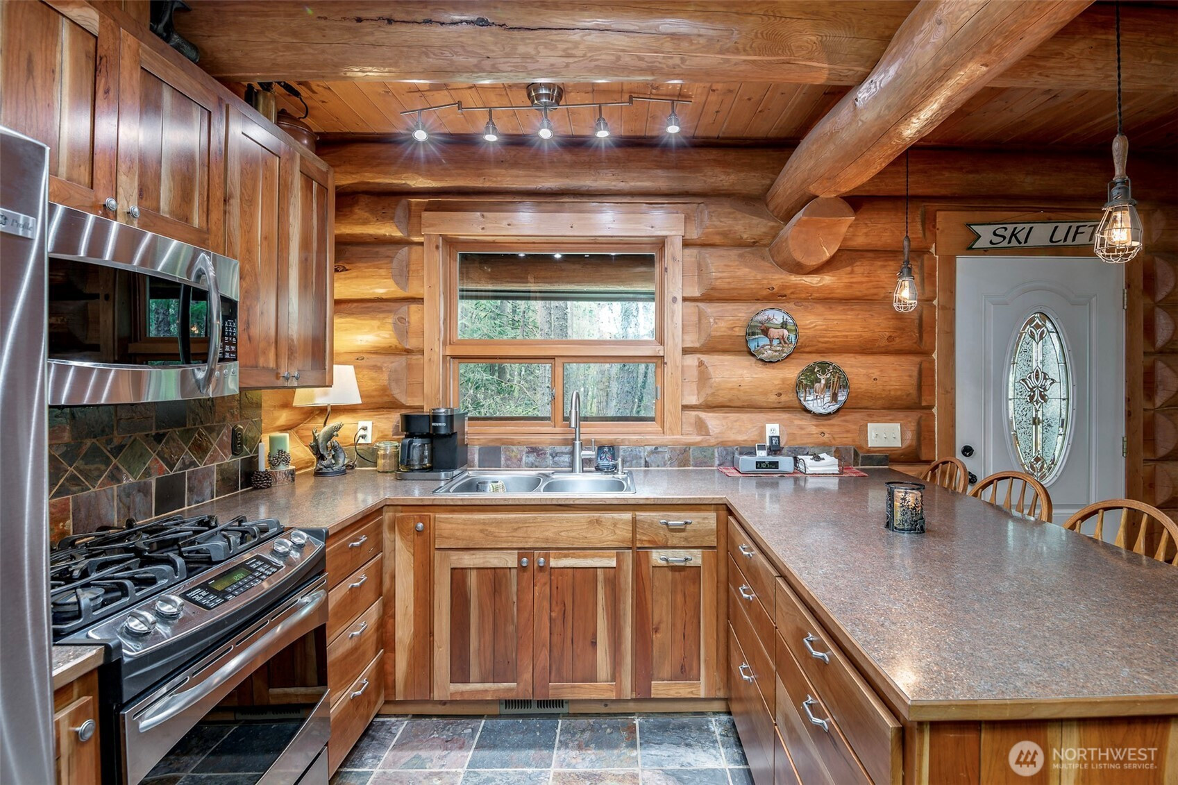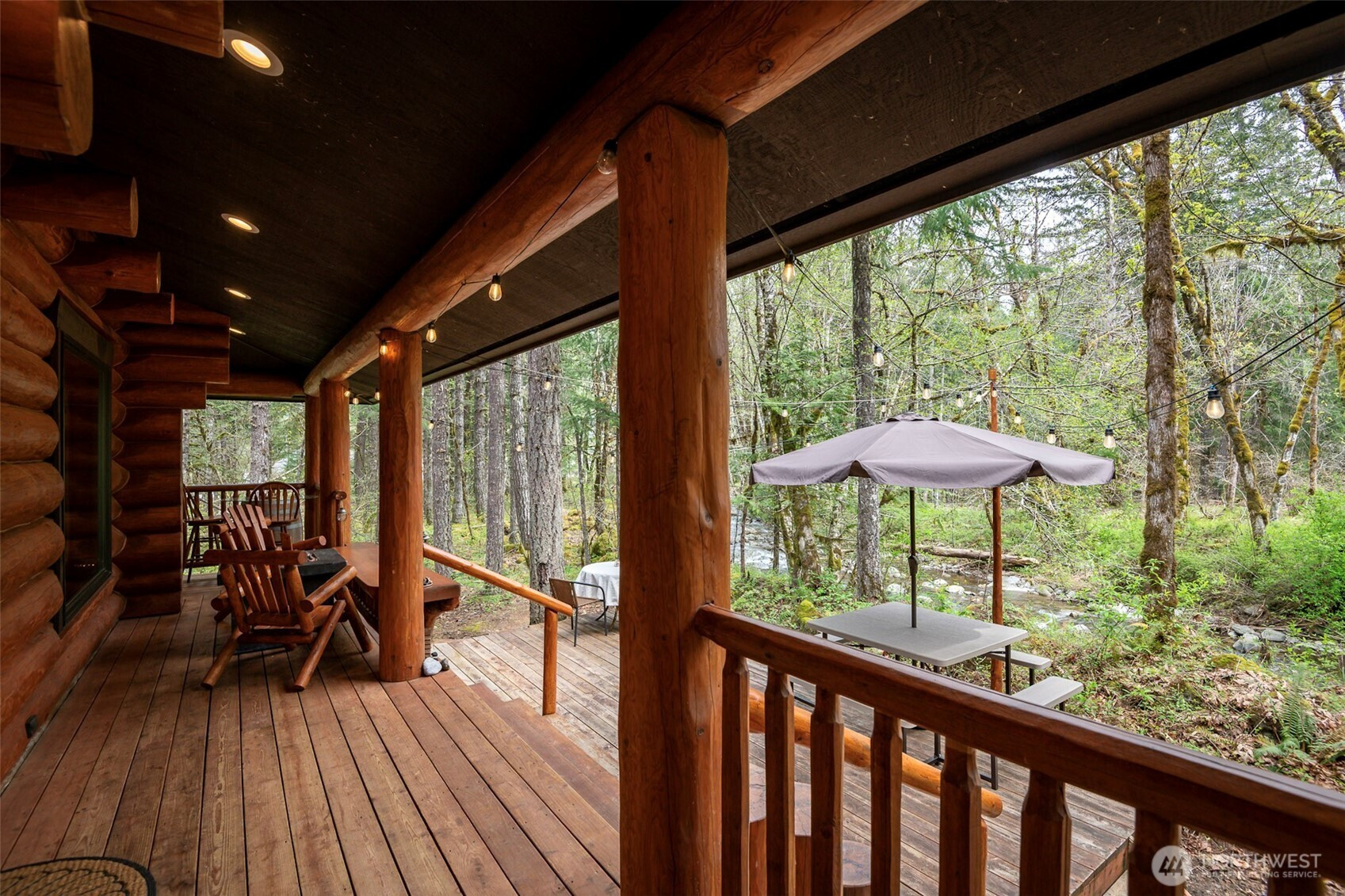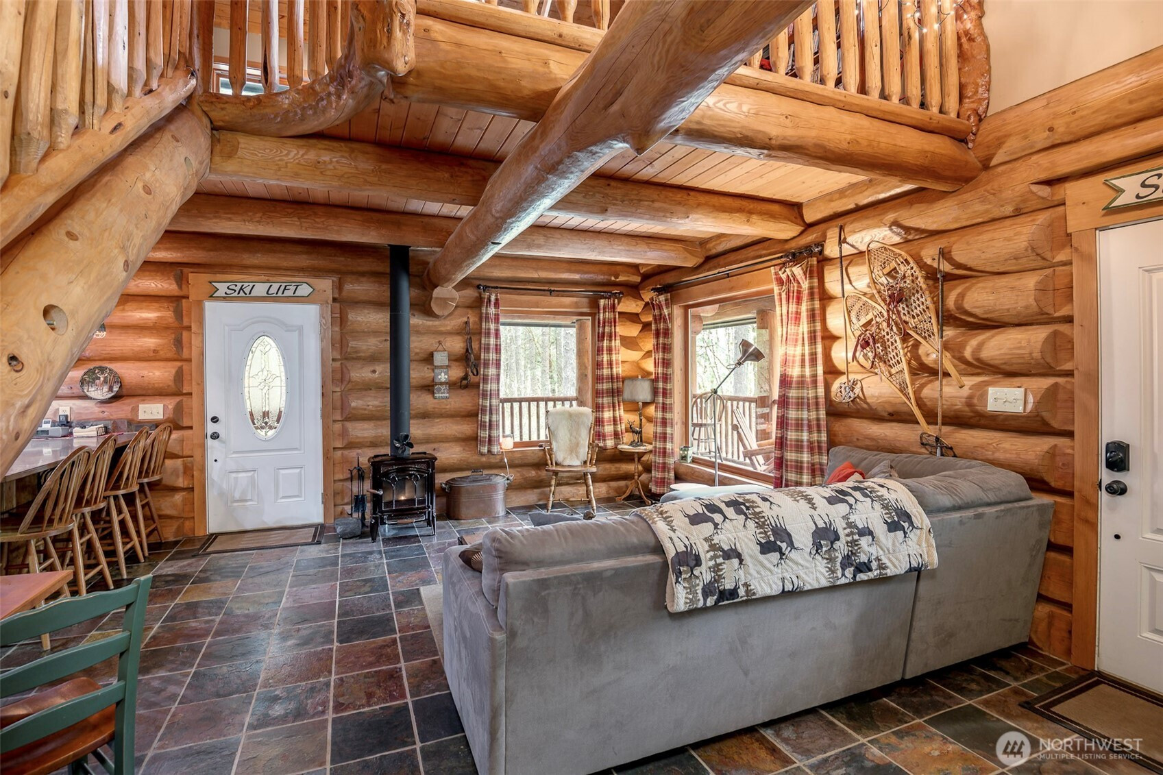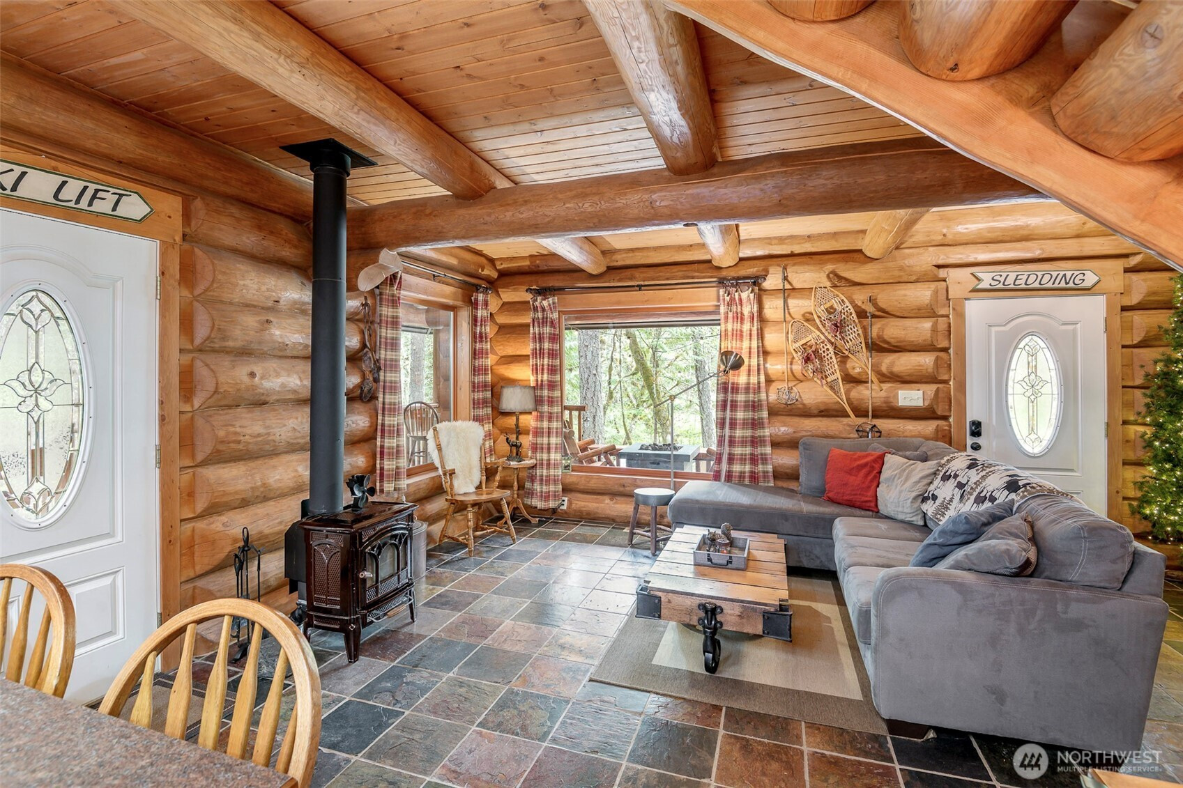 First time on the market! This stunning custom log cabin offers the perfect blend of exceptional craftsmanship, comfort, and serene creekside living. Every log was individually hand-selected, creating a truly one-of-a-kind home rich in warmth, character, and timeless appeal.Inside, you’ll discover beautiful custom features throughout, including a spacious primary suite with a private ensuite bath featuring radiant floor heat for year-round comfort. The home is served by a 3-bedroom septic system and includes a versatile loft with an additional bedroom and open living space—ideal for guests, a home office, or a cozy retreat.Step outside to the expansive wrap-around deck overlooking the peaceful creek, perfect for relaxing or entertaining while enjoying the tranquil sounds of nature. The property also features an RV hookup, is located adjacent to a park, and offers community river access, giving you even more ways to enjoy the outdoors.A rare opportunity to own a thoughtfully crafted log home in an idyllic setting—this is cabin living at its finest.