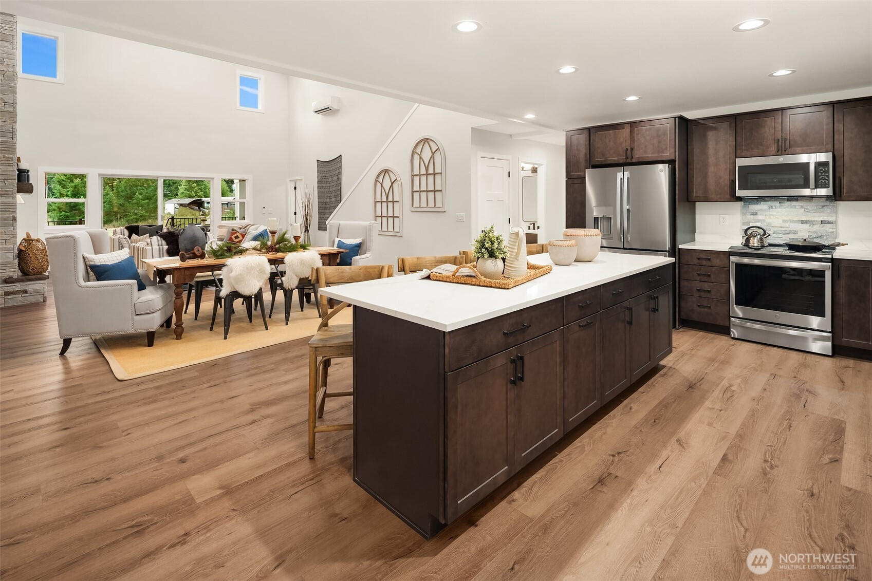 This brand-new home is ideal for your private retreat and for the perfect short-term rental investment. Located in Packwood’s High Valley neighborhood with access to the community pool and golf course, the property features a two-pronged loop driveway providing ample parking for guests and an RV. Inside, you’ll love the open concept kitchen, dining, great room with soaring ceilings and a floor-to-ceiling stacked rock high-efficiency wood burning fireplace. The sleeping options are flexible with two bedroom suites on the main level and a sizeable loft that makes for the perfect bunk/game room. Experience all-day sun with the South-facing outdoor living room on the large, covered deck. You’ll love the low maintenance of this newly built home!