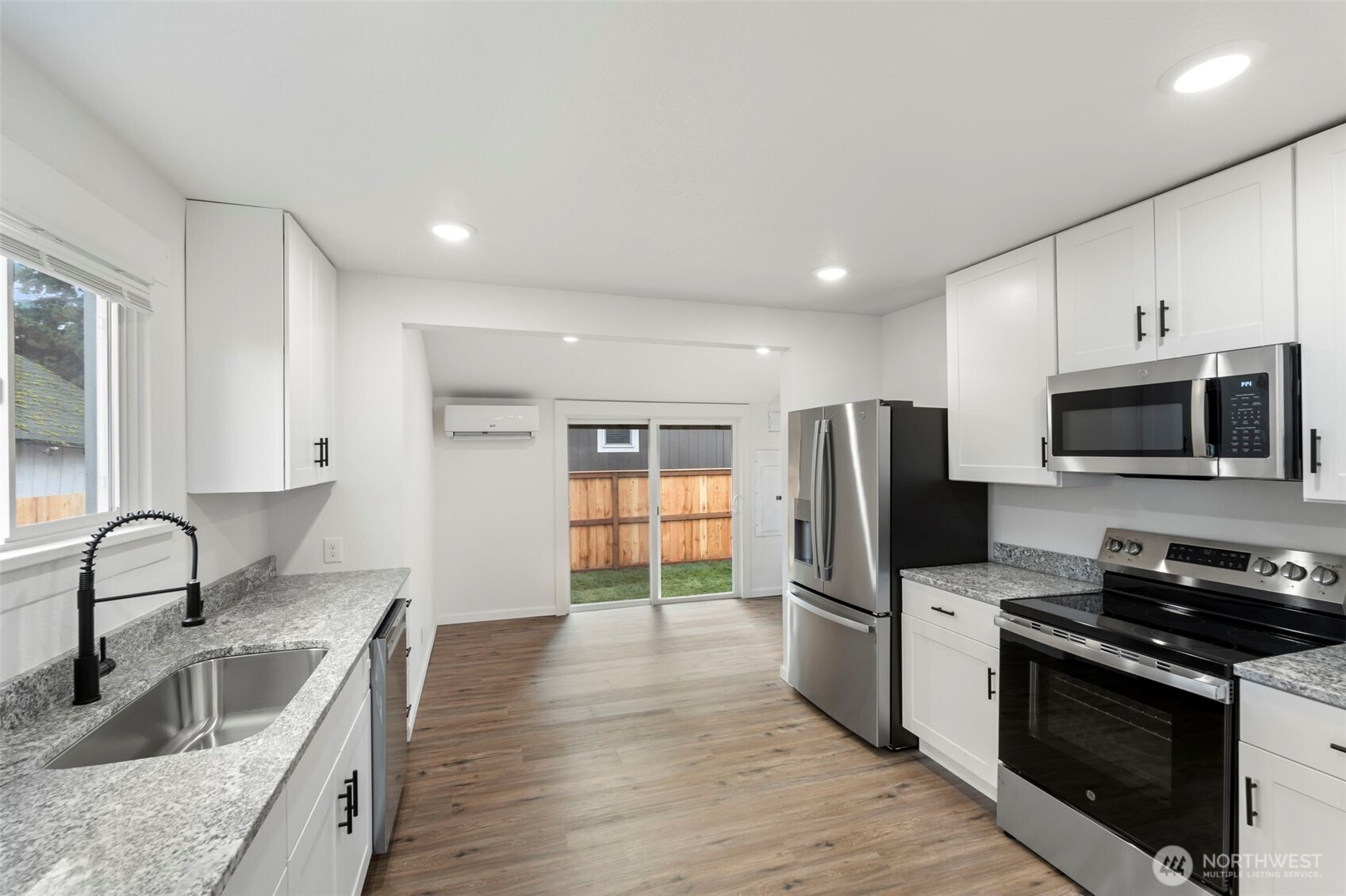 Freshly updated and move-in ready, this charming condo offers the comfort of low-maintenance living in a quaint 3-unit setting! Enjoy your own private yard and fenced backyard, perfect for relaxing, gardening, or pets. Inside, the beautifully updated kitchen features granite countertops, all-new stainless steel appliances, and stylish finishes throughout. Vinyl plank flooring flows through the main living areas, with cozy carpet in the bedrooms. The brand-new main bath and convenient half bath in the primary suite add modern comfort and appeal. New electrical and plumbing throughout. Attractive landscaping offers great curb appeal with minimal upkeep. Affordable monthly condo dues of just $100 include water and sewer. A fresh, inviting home ready for its new owner!