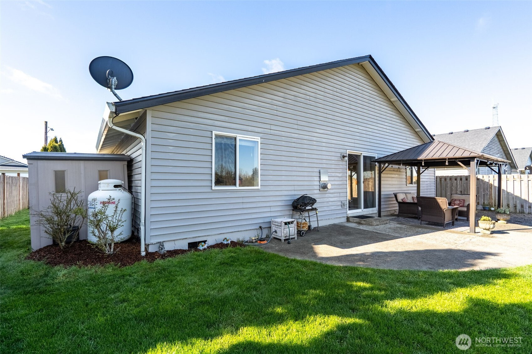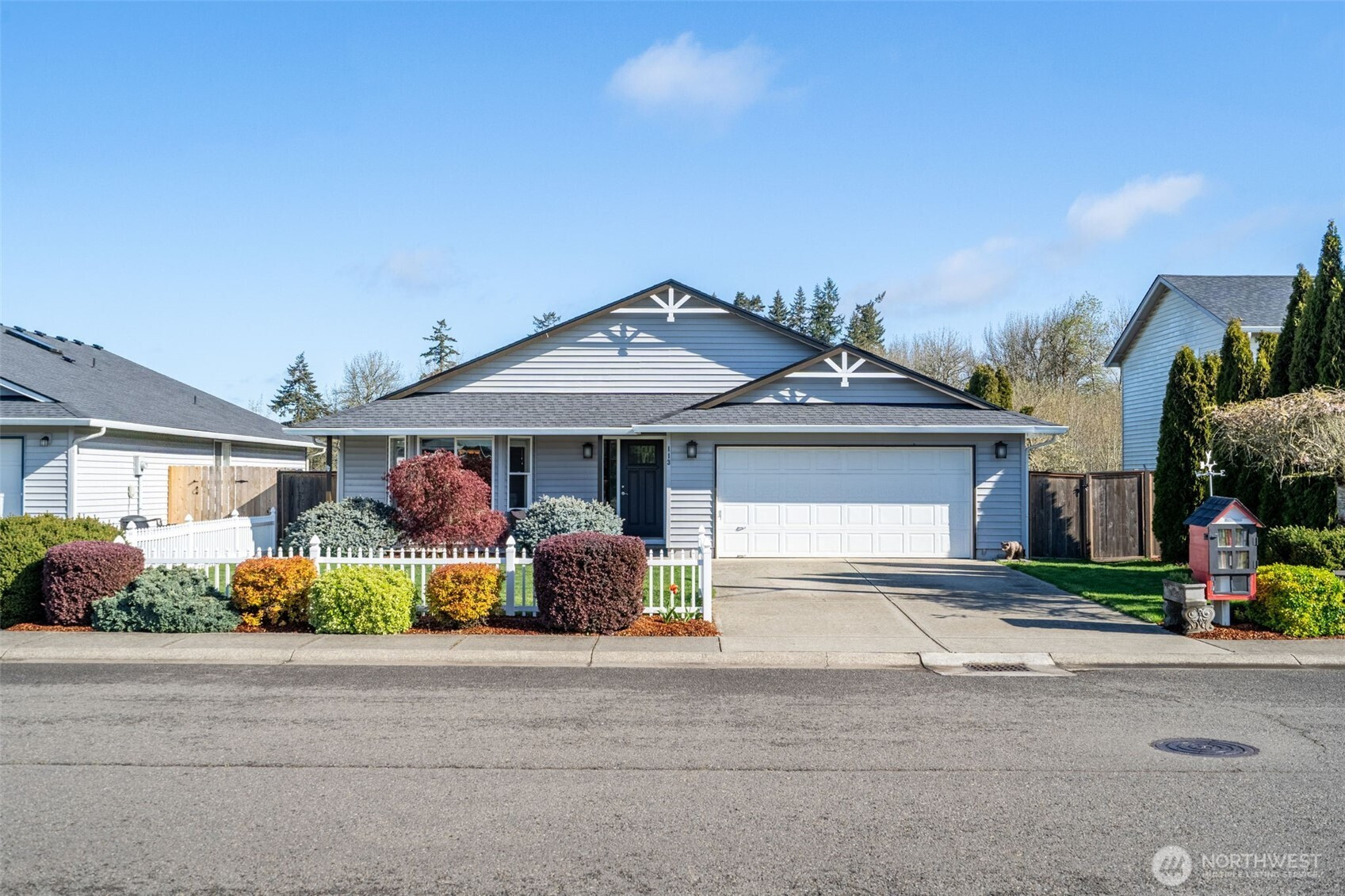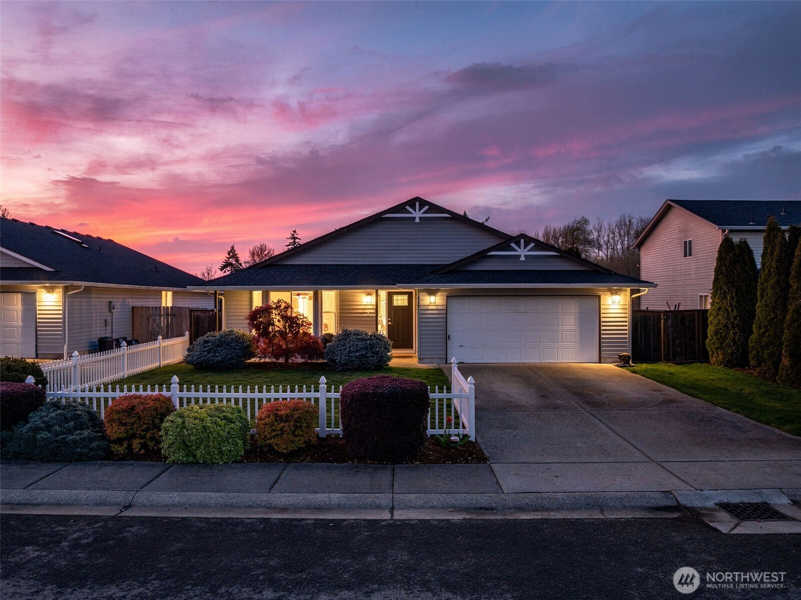 Welcome to this beautifully maintained single-story home, nestled within a quiet residential community. This three-bed two- bath home was thoughtfully designed & is move-in ready. You will notice the pride of ownership reflected in this home inside & out, with mature landscaping & inviting curb appeal. This home has an open layout accentuated by vaulted ceilings that create a sense of spaciousness throughout the main living areas. Natural light pours in through skylights filling the home with warmth. The living & family room with propane fireplace serves as gathering spaces. A ceiling fan provides year-round comfort, while the seamless flow into the dining & kitchen areas makes everyday living & hosting both easy & enjoyable. The combination of ceramic tile, laminate hardwood, & plush carpet throughout the home provides both durability & comfort. The kitchen is designed with both function & style, offering ample cabinetry & workspace. Adjacent to the kitchen, the dining area provides a comfortable setting for meals. The primary suite is a true retreat, complete with its own private bathroom that creates a relaxing environment. While sizeable bedrooms provide efficient space for living and interests. One of the home’s most captivating features is the backyard and its panoramic views from the concrete patio and gazebo. Perfectly located between Seattle and Portland, with nearby shopping, services and commuter friendly access. Don't miss out, schedule a showing today!