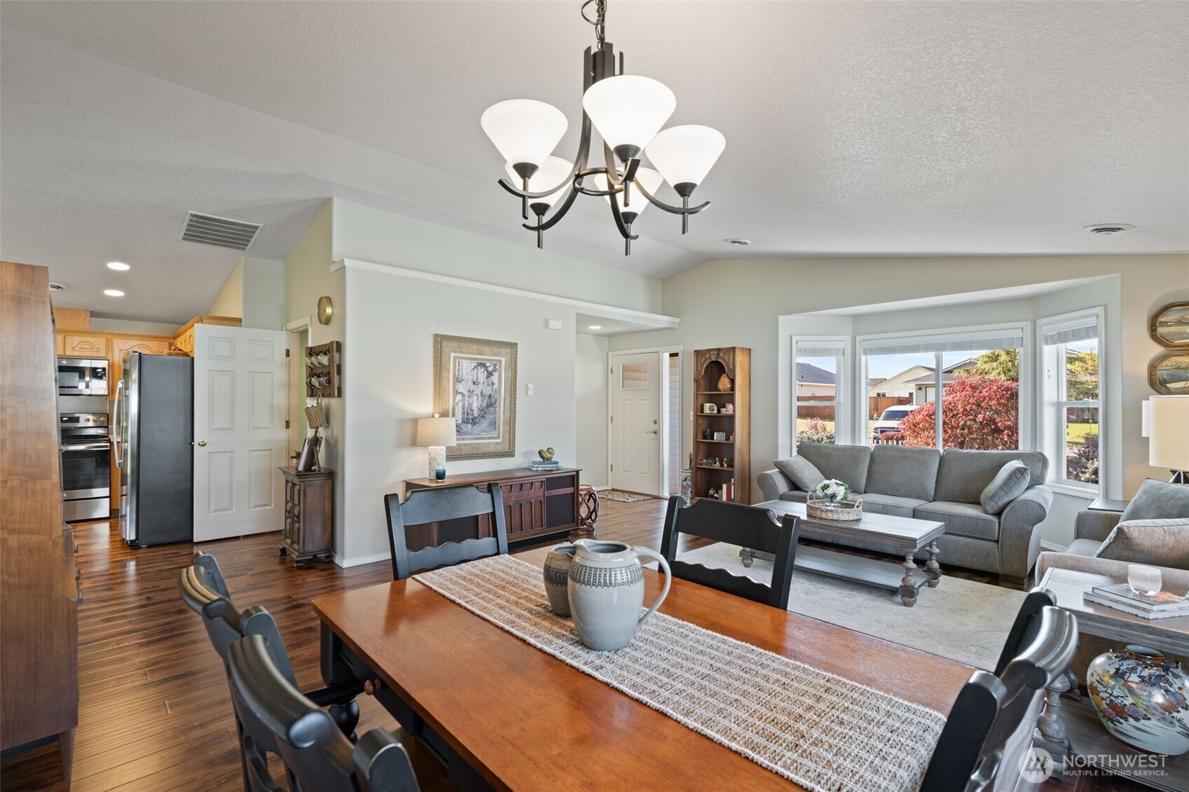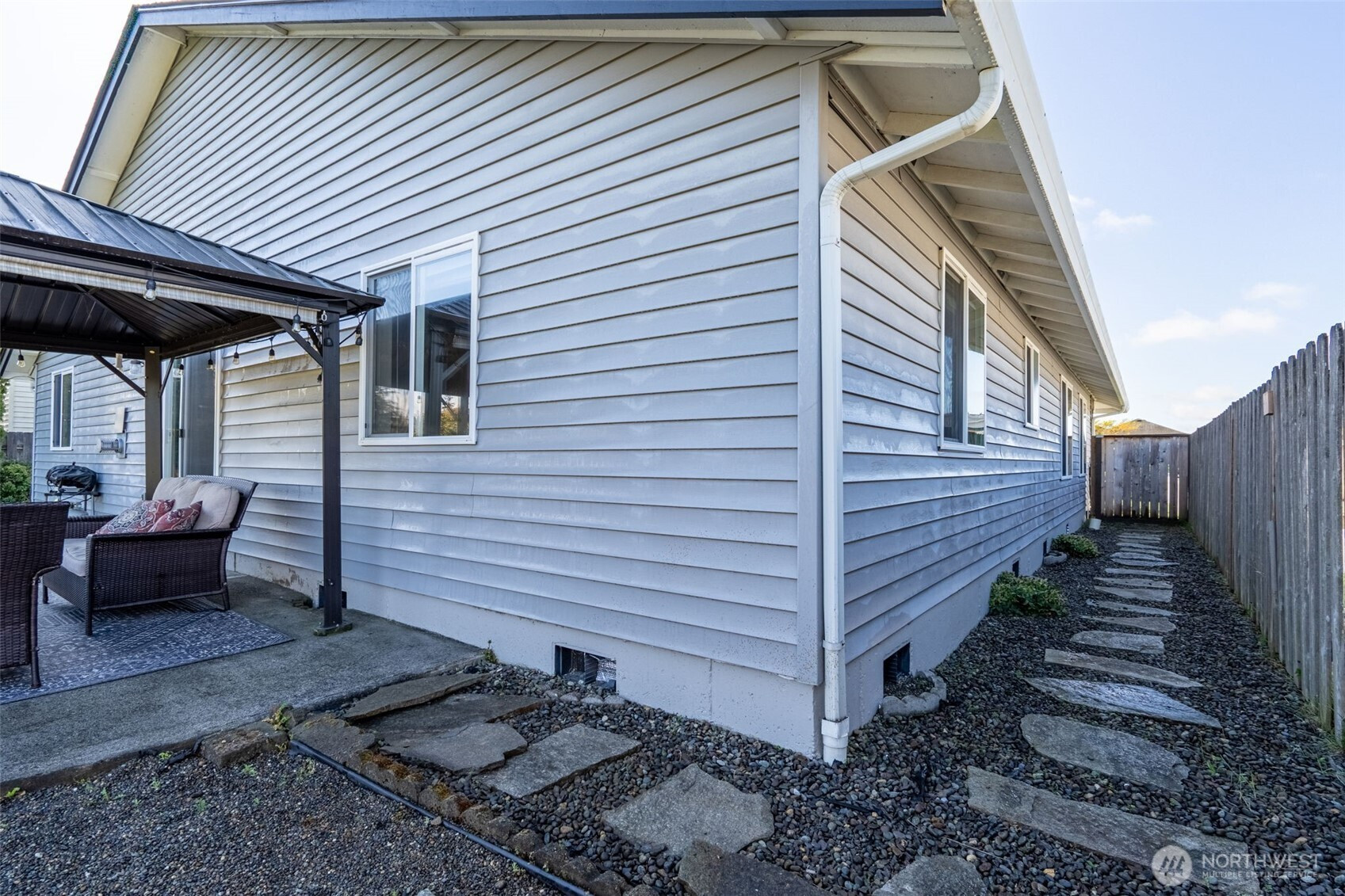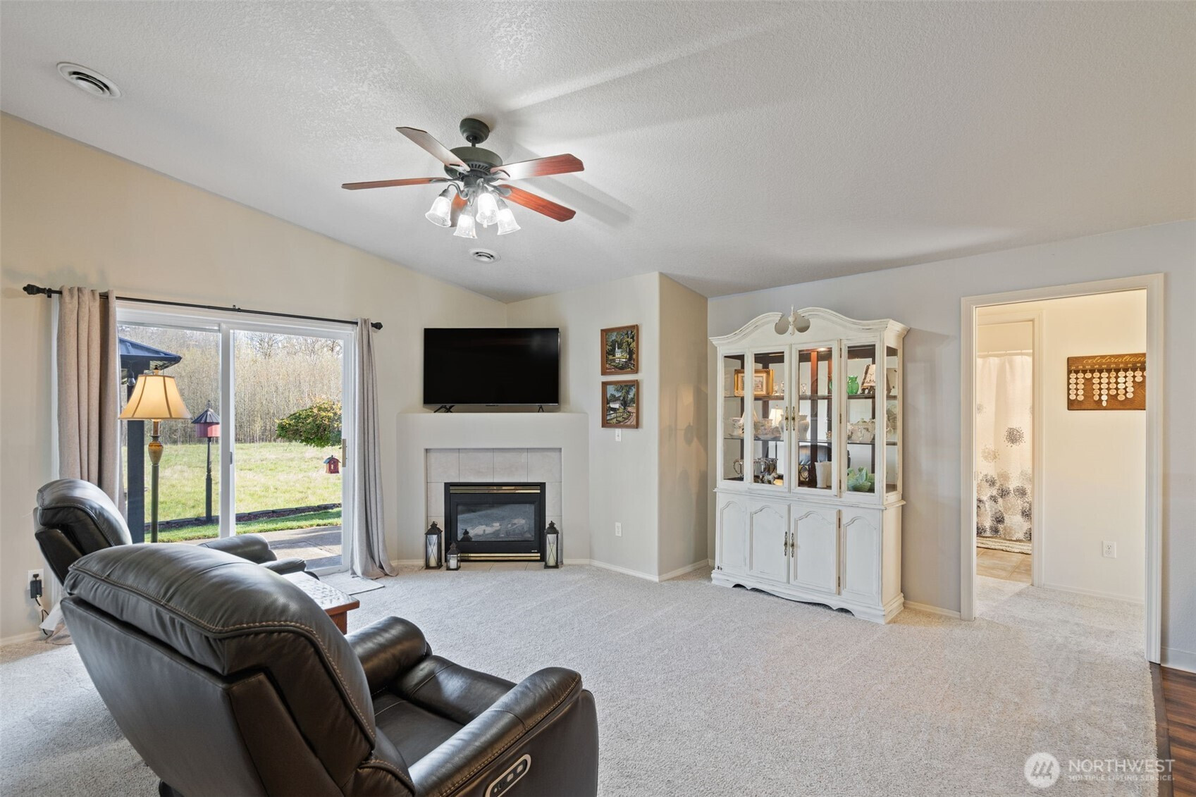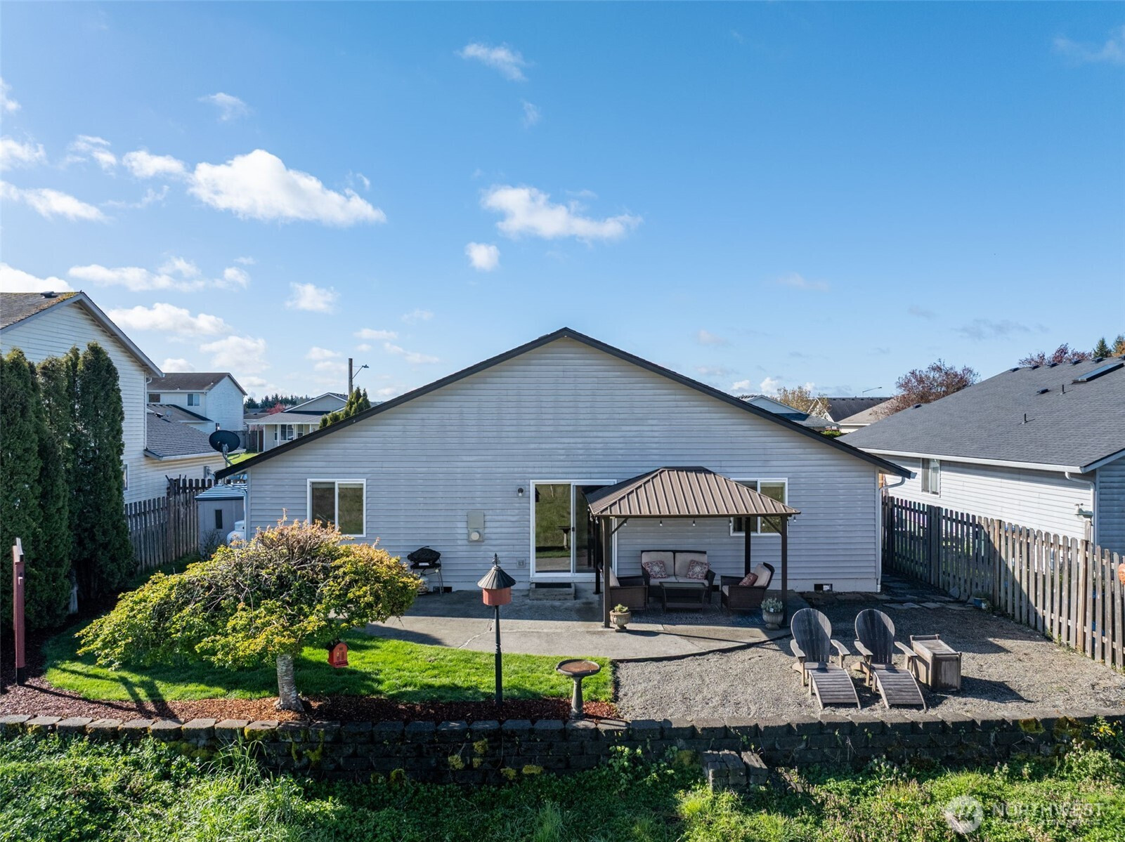 Welcome to this beautifully maintained single-story home, nestled within a quiet residential community. This three-bed two- bath home was thoughtfully designed & is move-in ready. You will notice the pride of ownership reflected in this home inside & out, with mature landscaping & inviting curb appeal. This home has an open layout accentuated by vaulted ceilings that create a sense of spaciousness throughout the main living areas. Natural light pours in through skylights filling the home with warmth. The living & family room with propane fireplace serves as gathering spaces. A ceiling fan provides year-round comfort, while the seamless flow into the dining & kitchen areas makes everyday living & hosting both easy & enjoyable. The combination of ceramic tile, laminate hardwood, & plush carpet throughout the home provides both durability & comfort. The kitchen is designed with both function & style, offering ample cabinetry & workspace. Adjacent to the kitchen, the dining area provides a comfortable setting for meals. The primary suite is a true retreat, complete with its own private bathroom that creates a relaxing environment. While sizeable bedrooms provide efficient space for living and interests. One of the home’s most captivating features is the backyard and its panoramic views from the concrete patio and gazebo. Perfectly located between Seattle and Portland, with nearby shopping, services and commuter friendly access. Don't miss out, schedule a showing today!